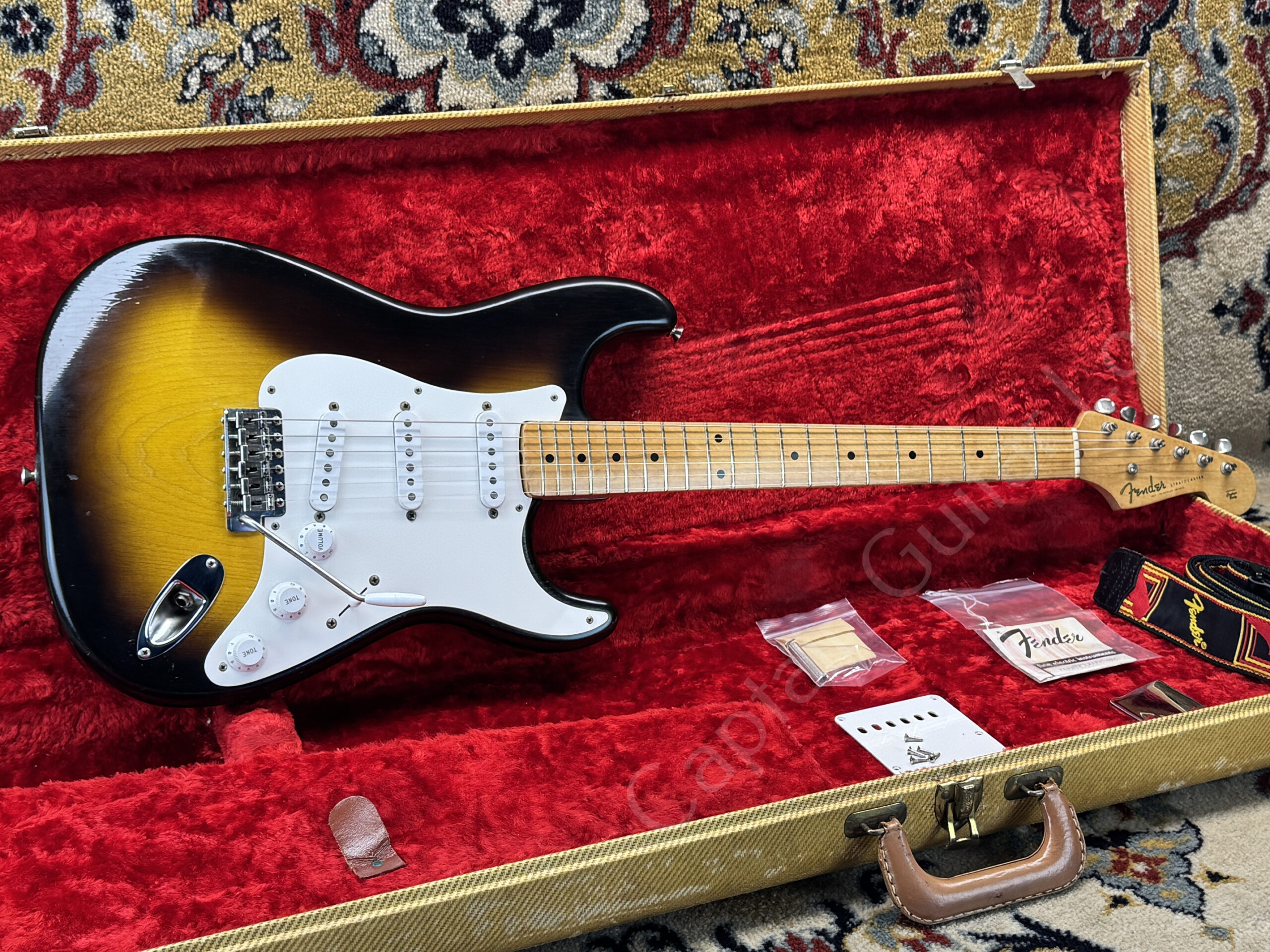 Exceptionally well preserved 1956 Fender Stratocaster, bought in 2013 from Fretted Americana (USA). The description from that time is enclosed.