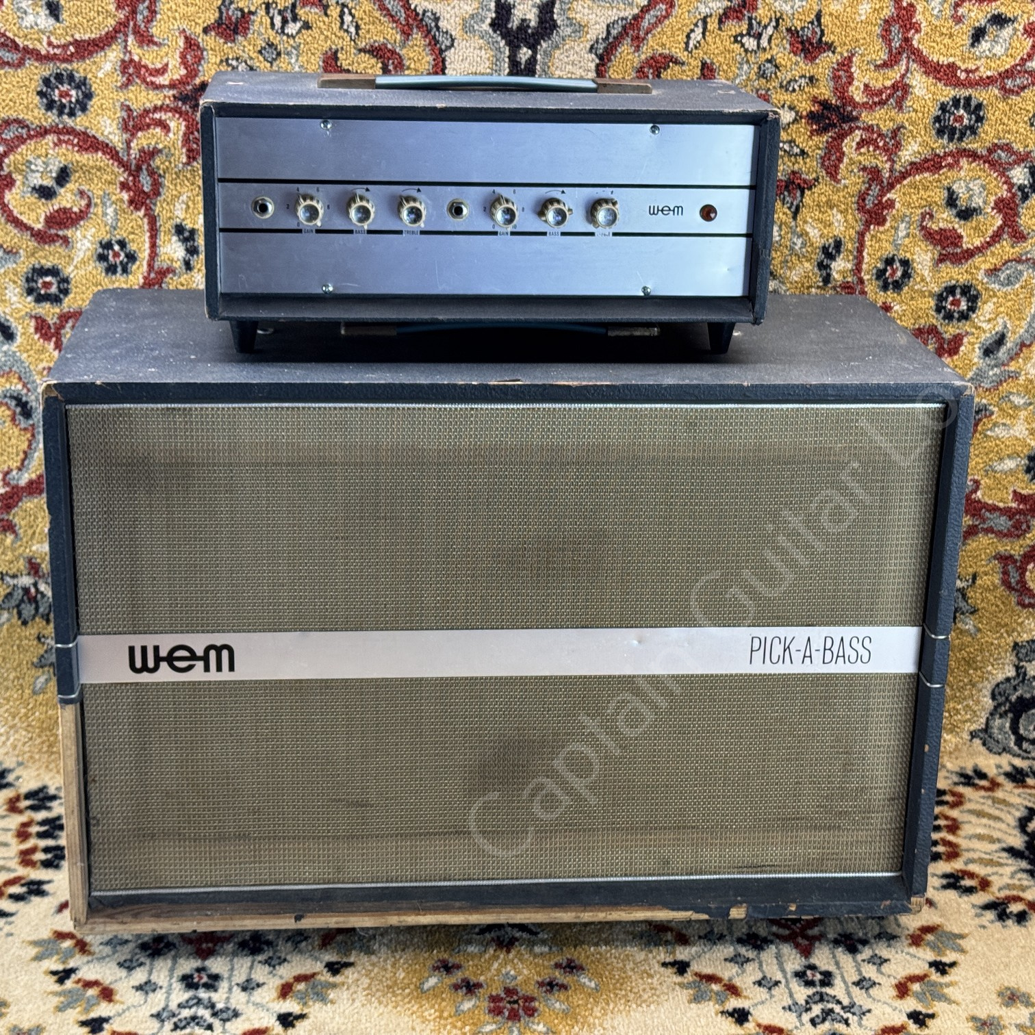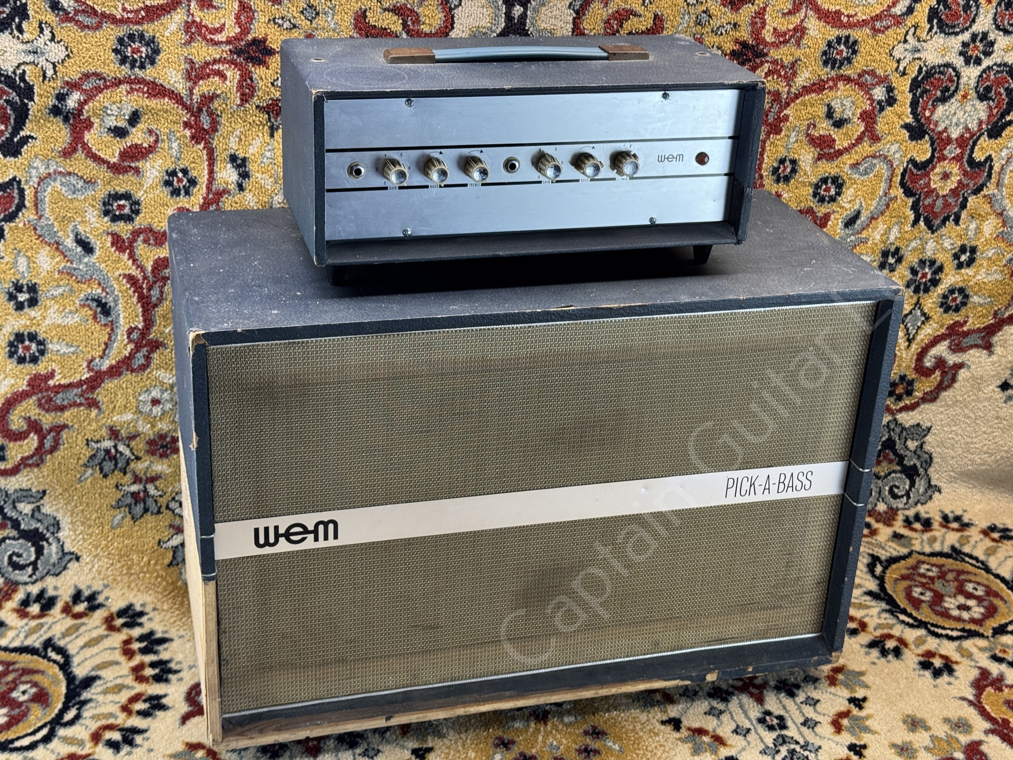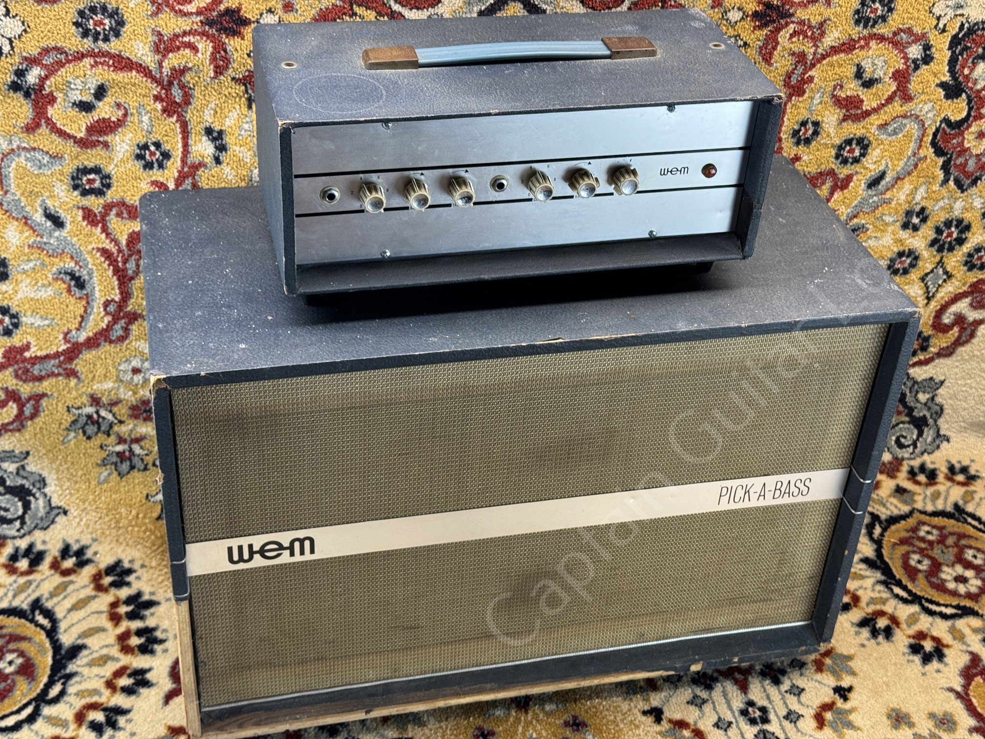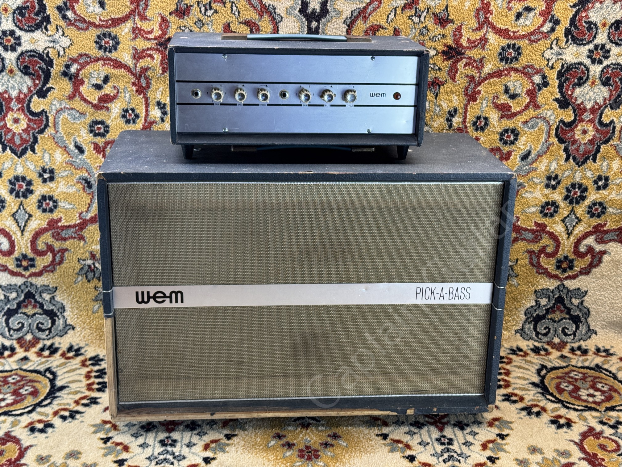 A rare find from the early 60s: the WEM Pick A Bass Halfstack, consisting of the compact 15-watt top and the matching 1x12" speaker with original Fane speaker.
