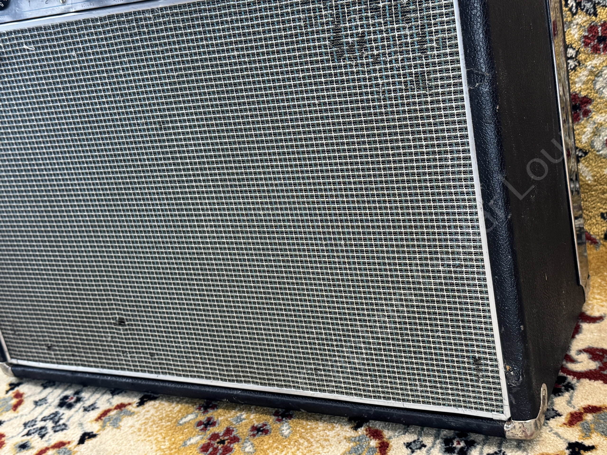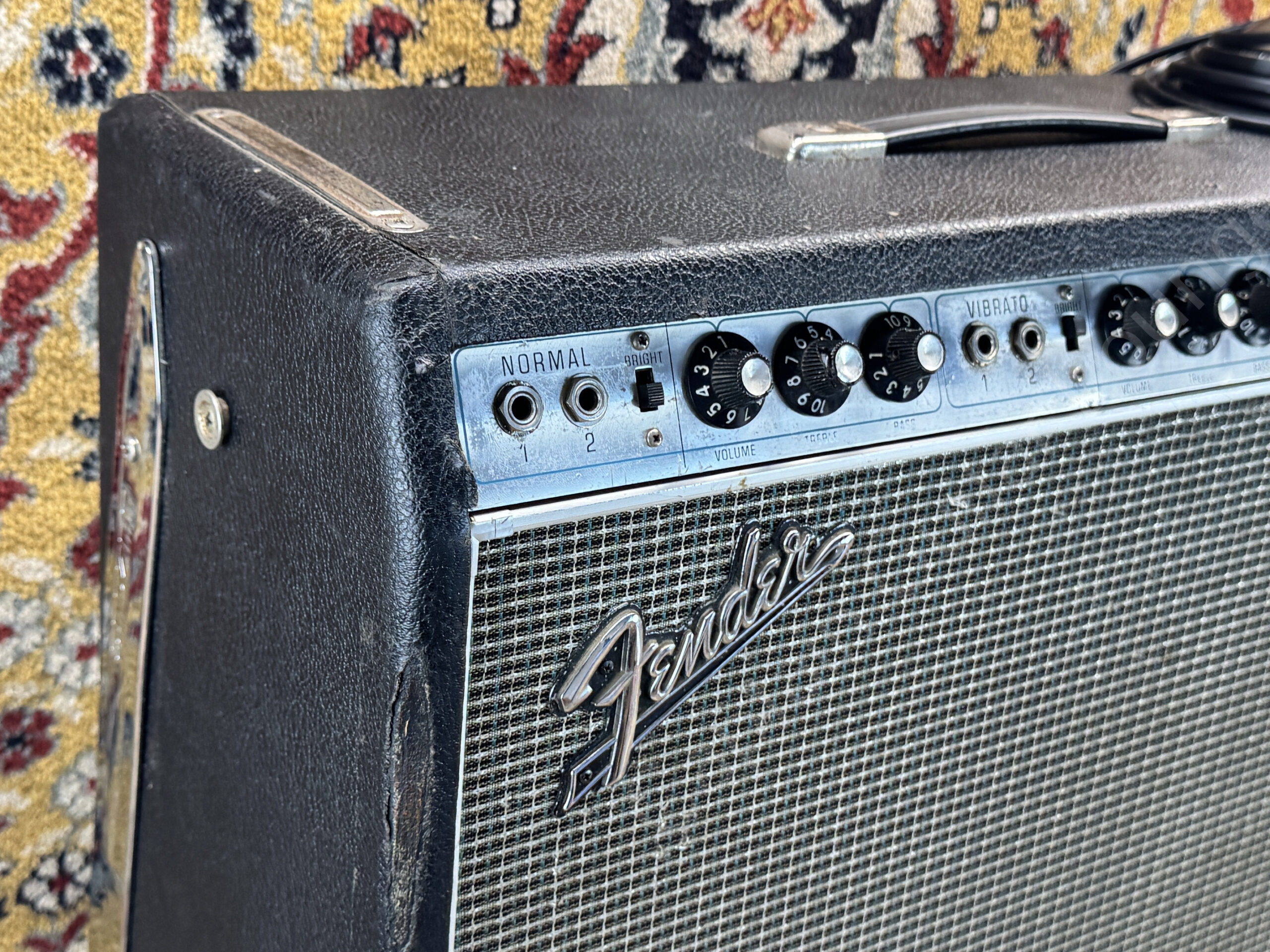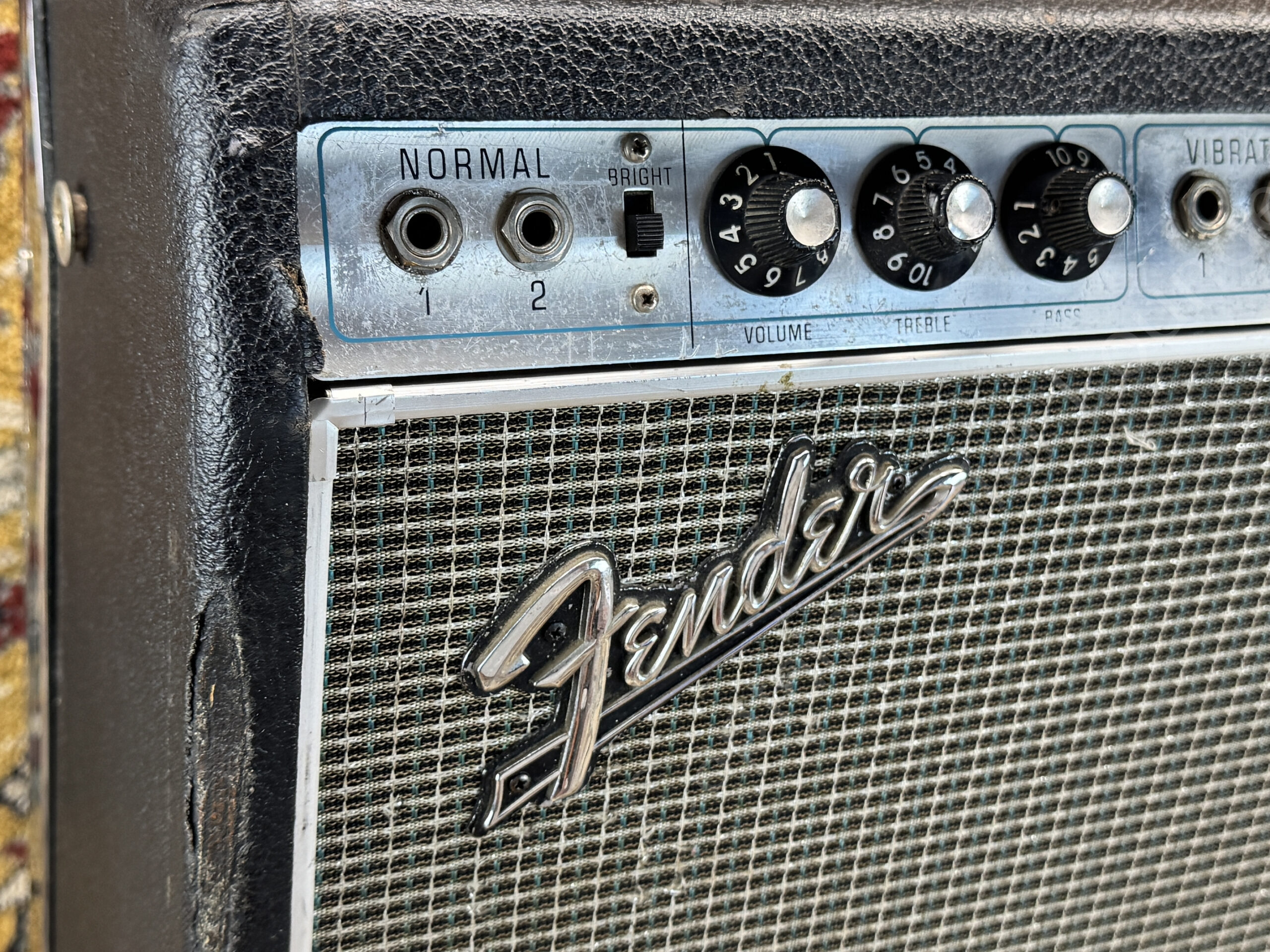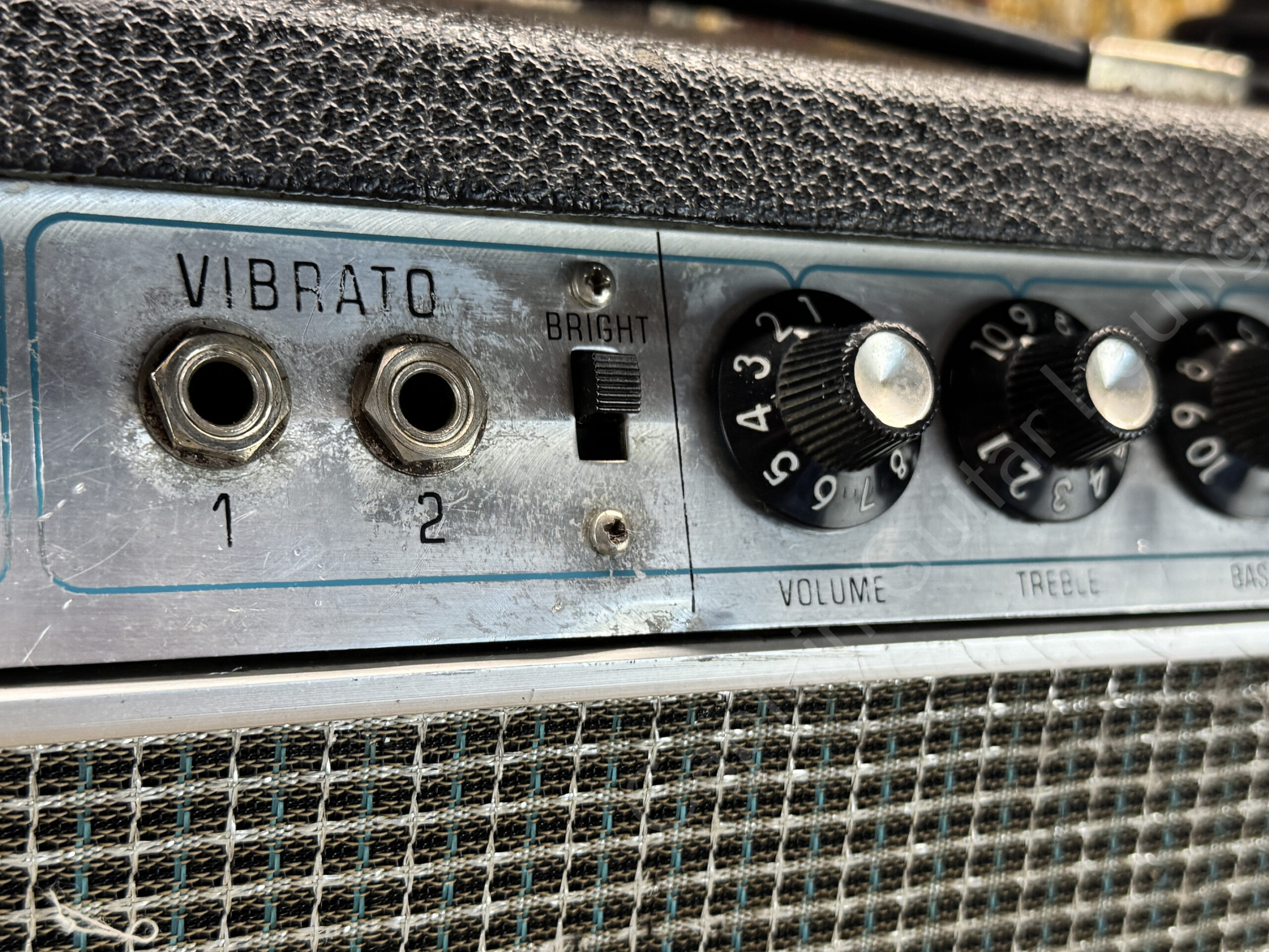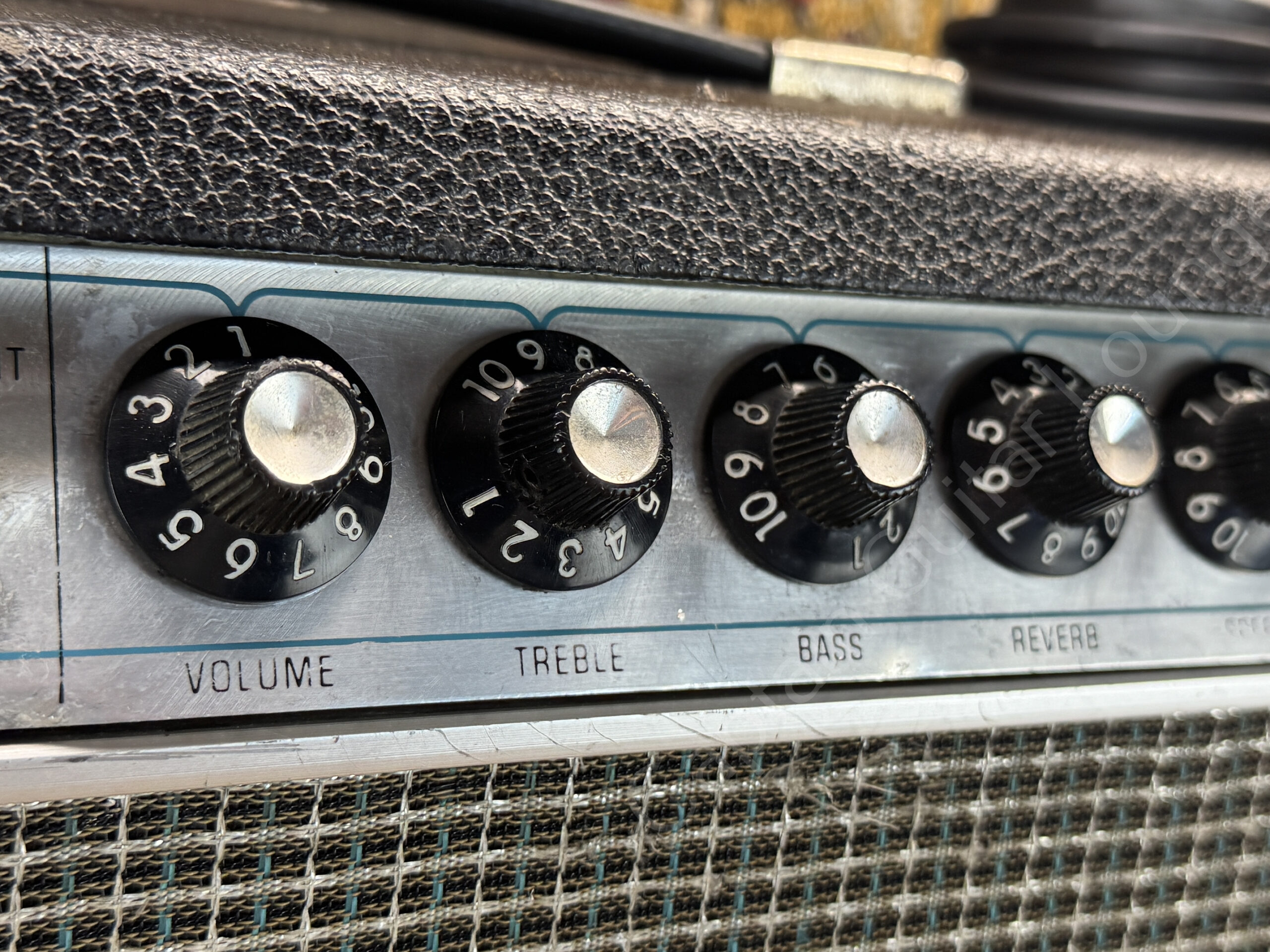 A silverface combo from the first series (1967-1969) with the filigree drip edge design, but technically still a hand-wired blackface amp with the AA165 circuit.