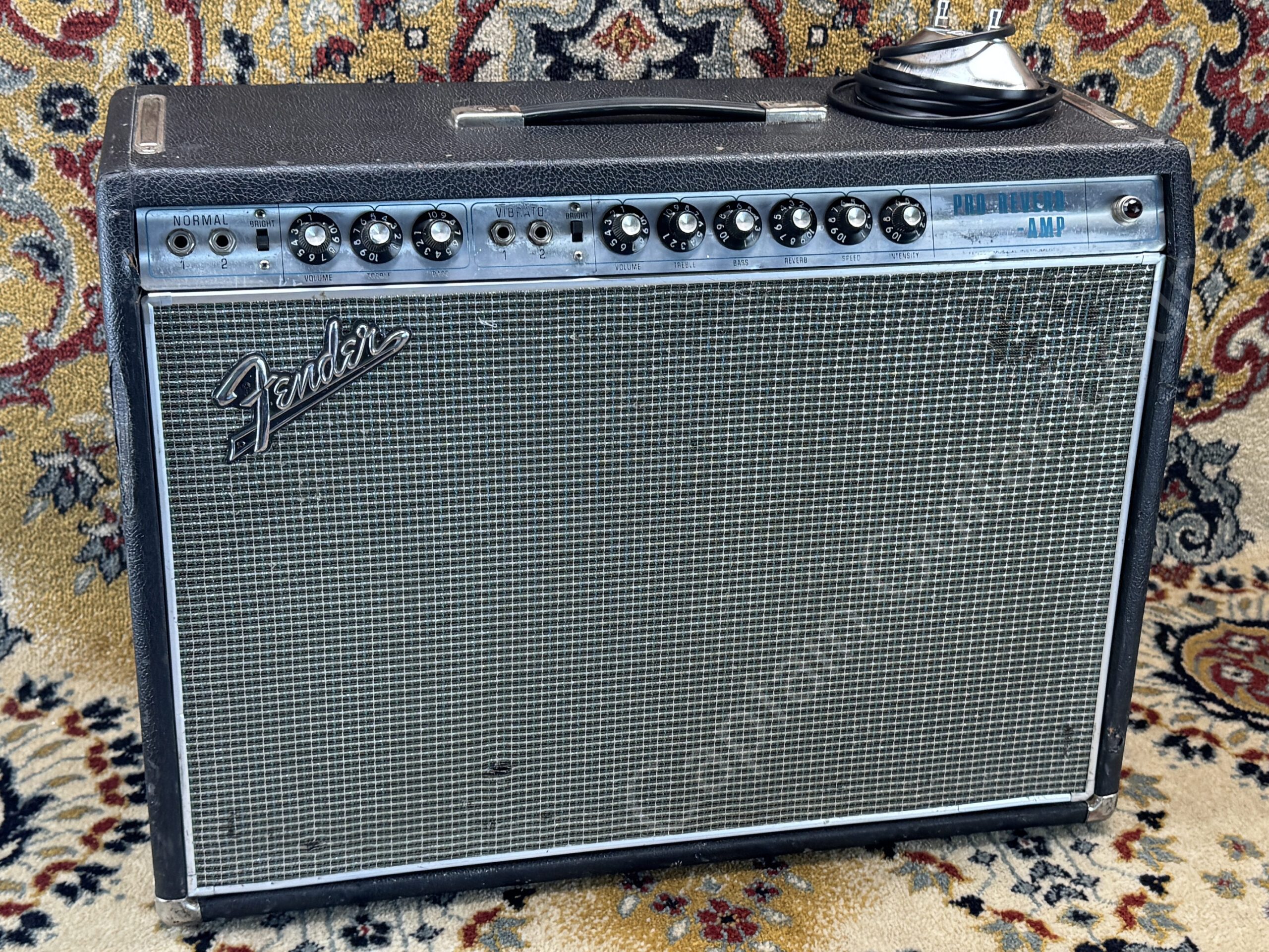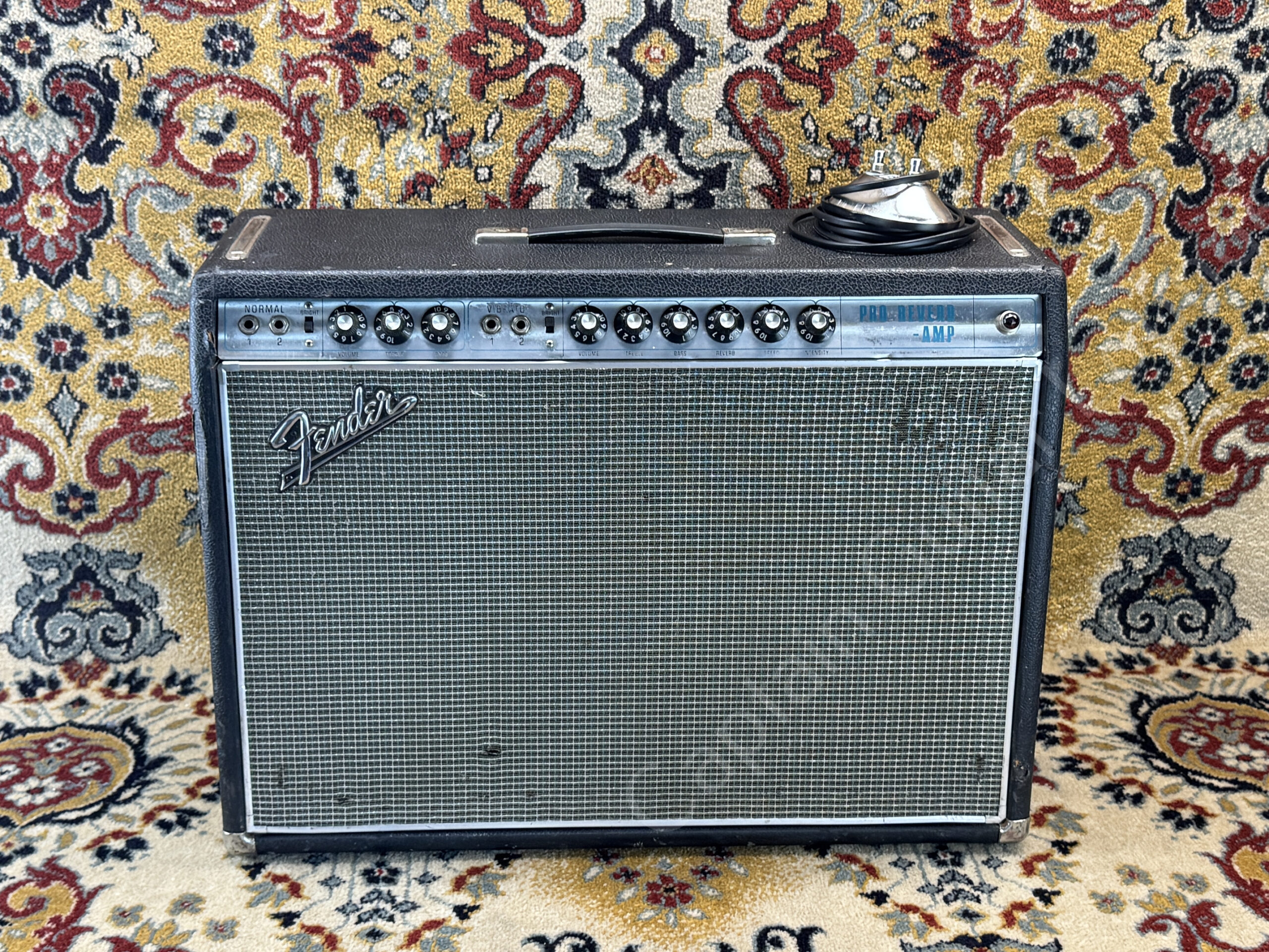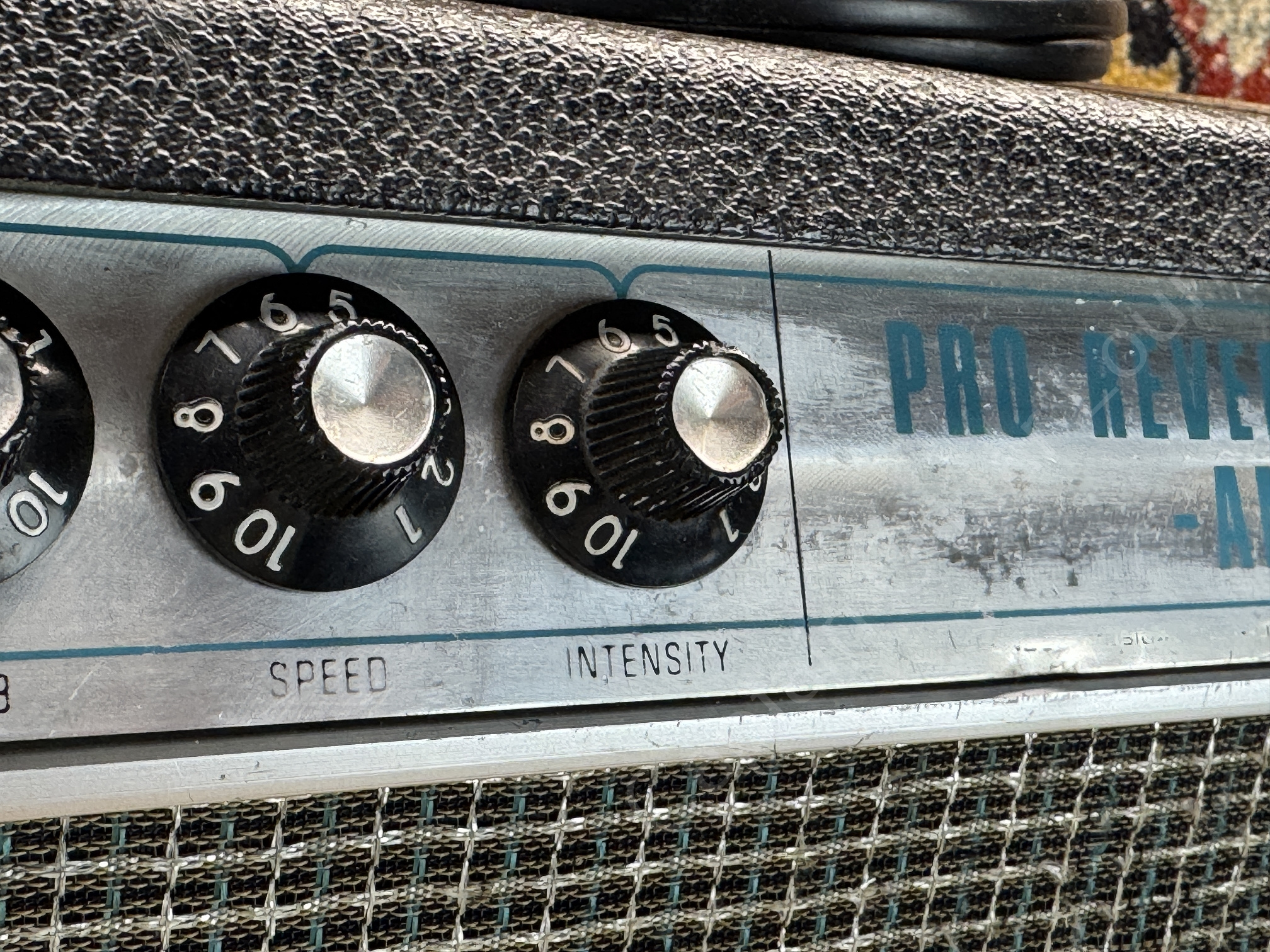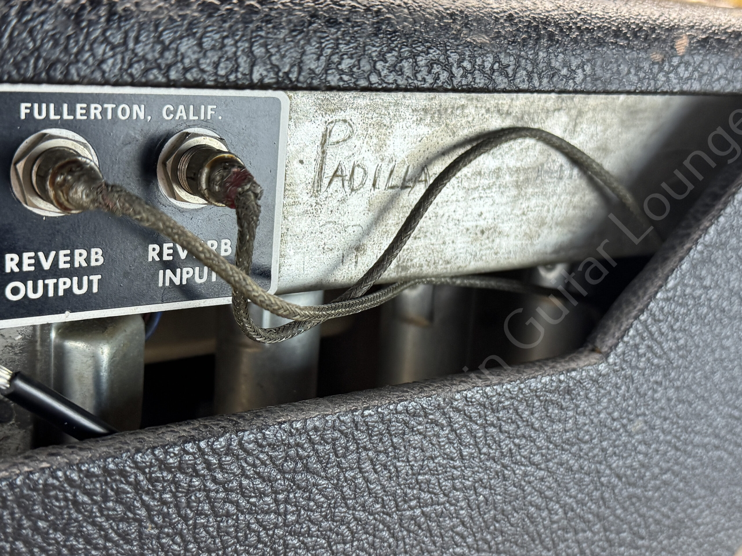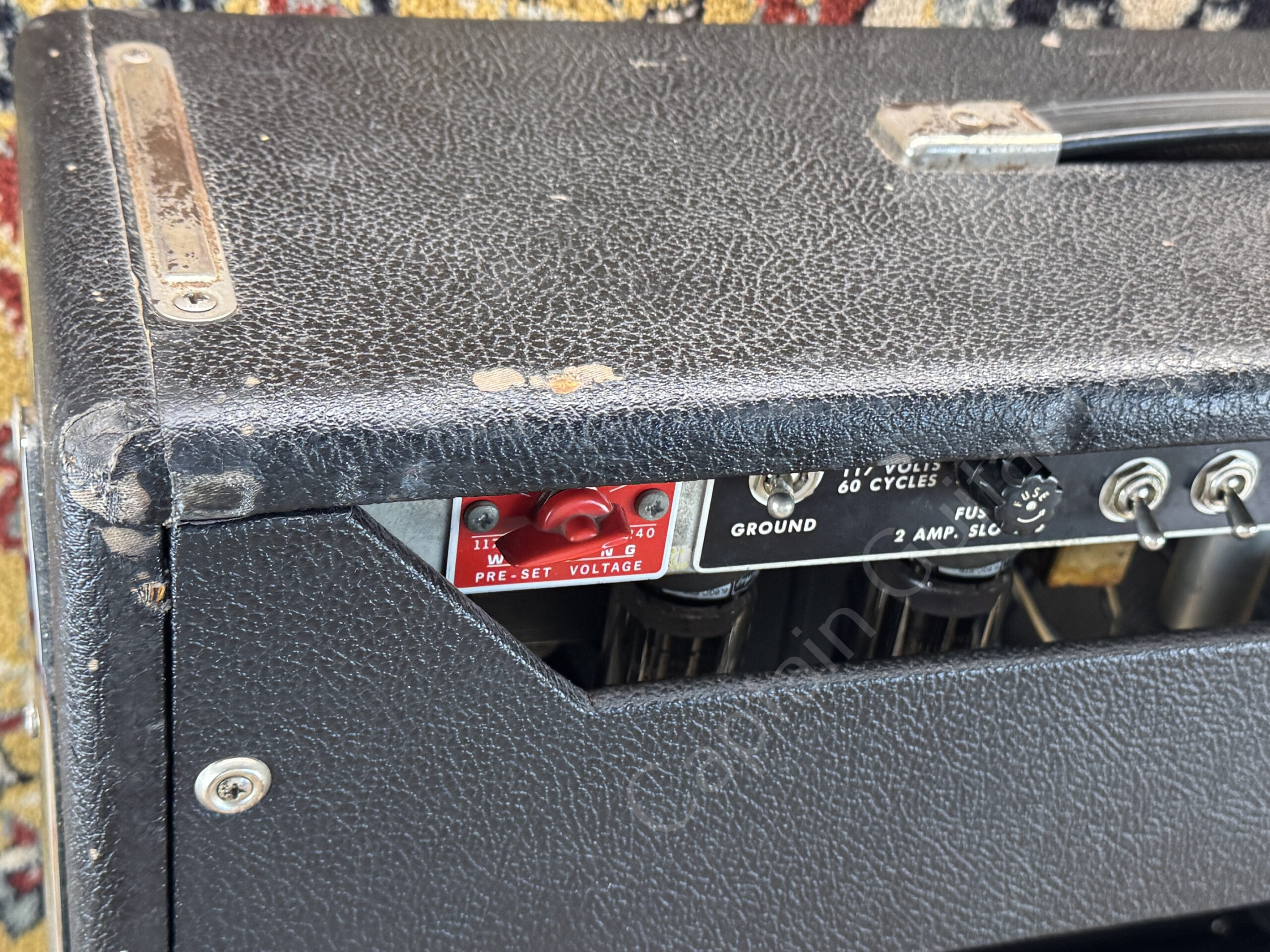 A silverface combo from the first series (1967-1969) with the filigree drip edge design, but technically still a hand-wired blackface amp with the AA165 circuit.