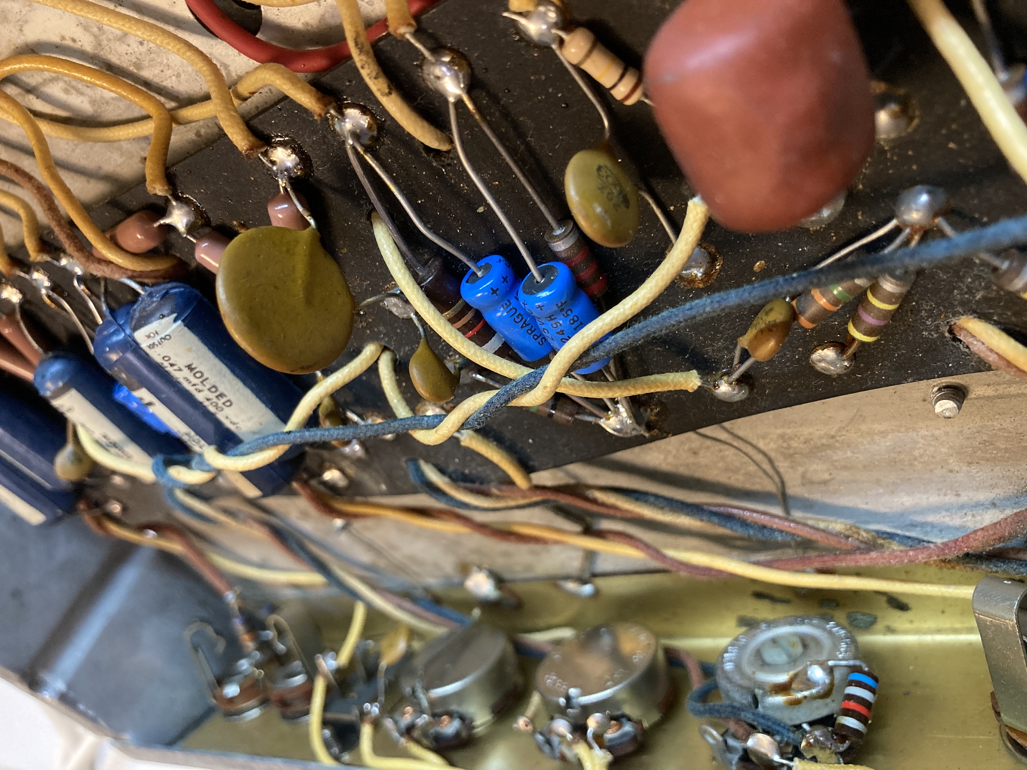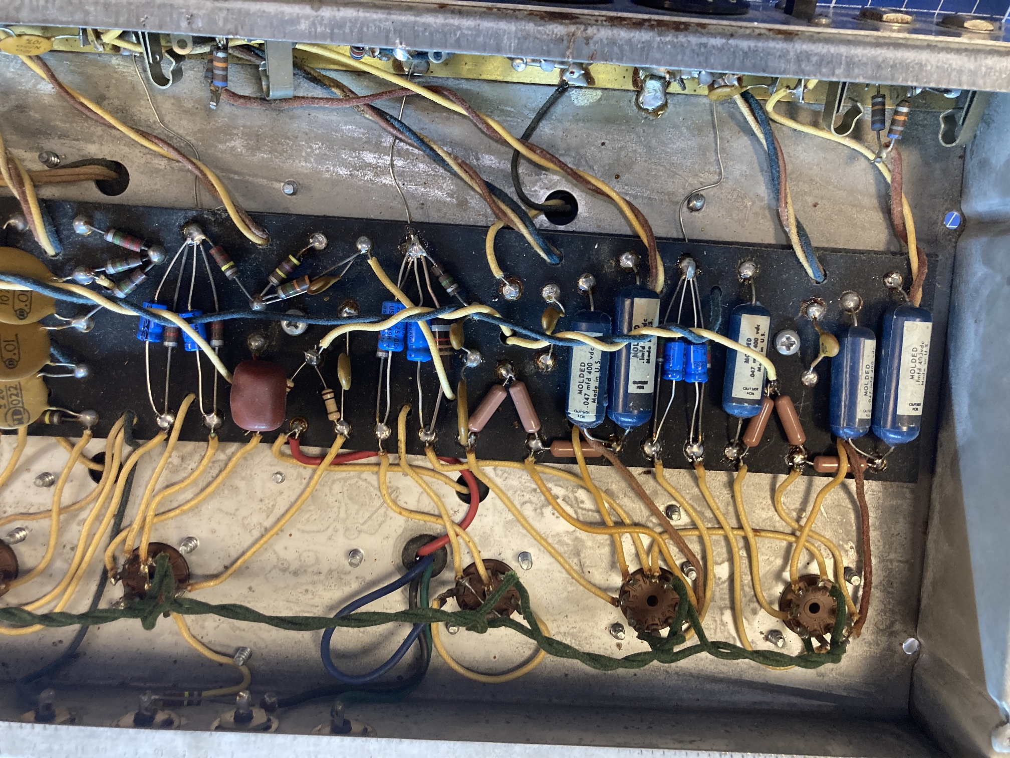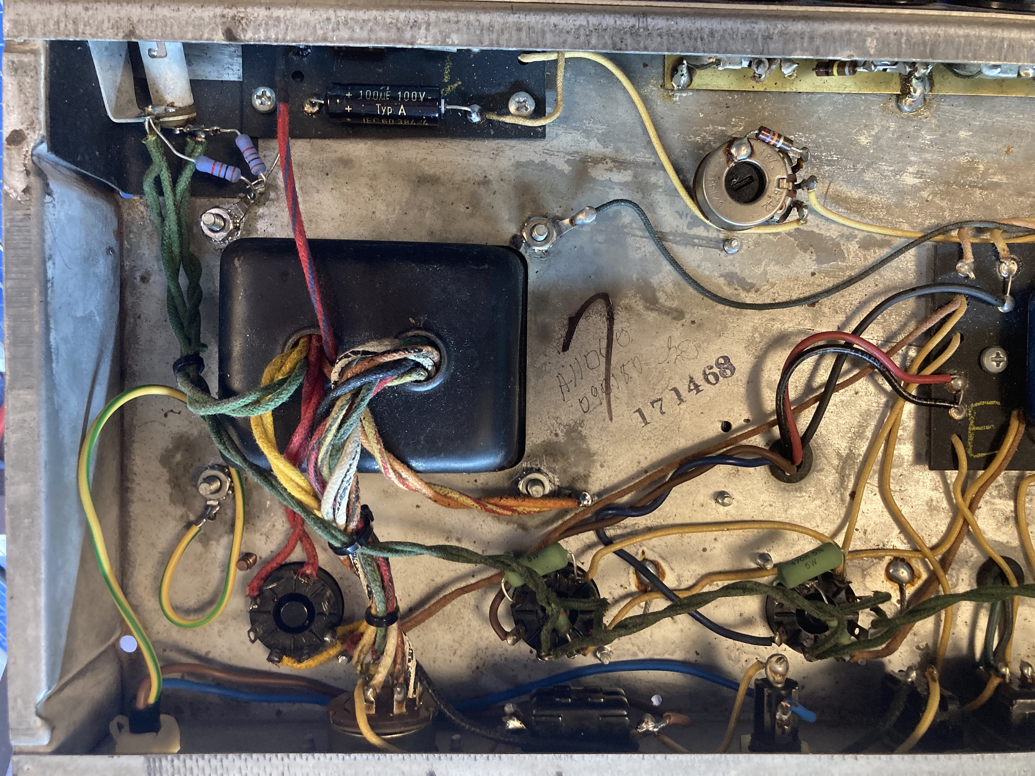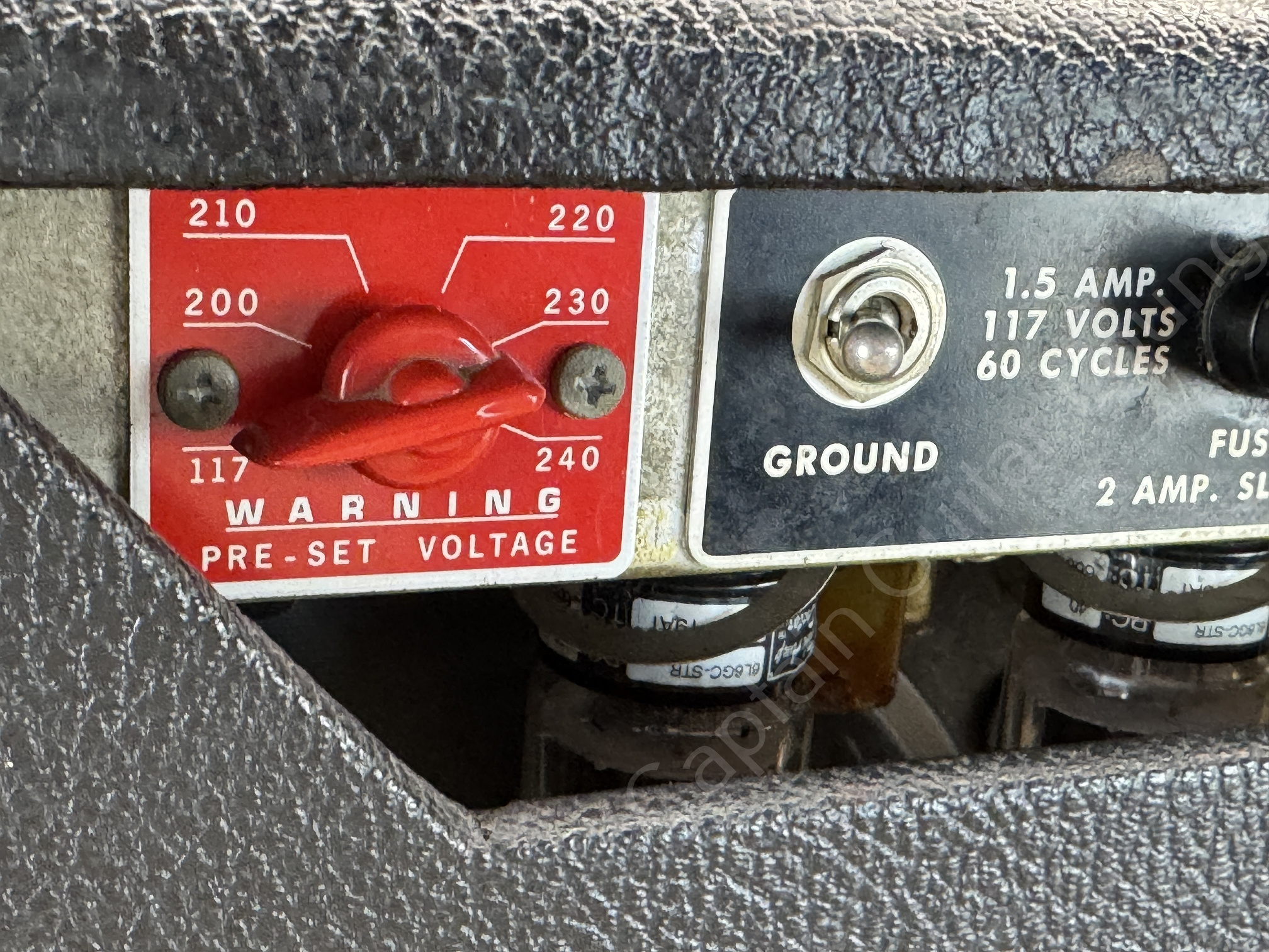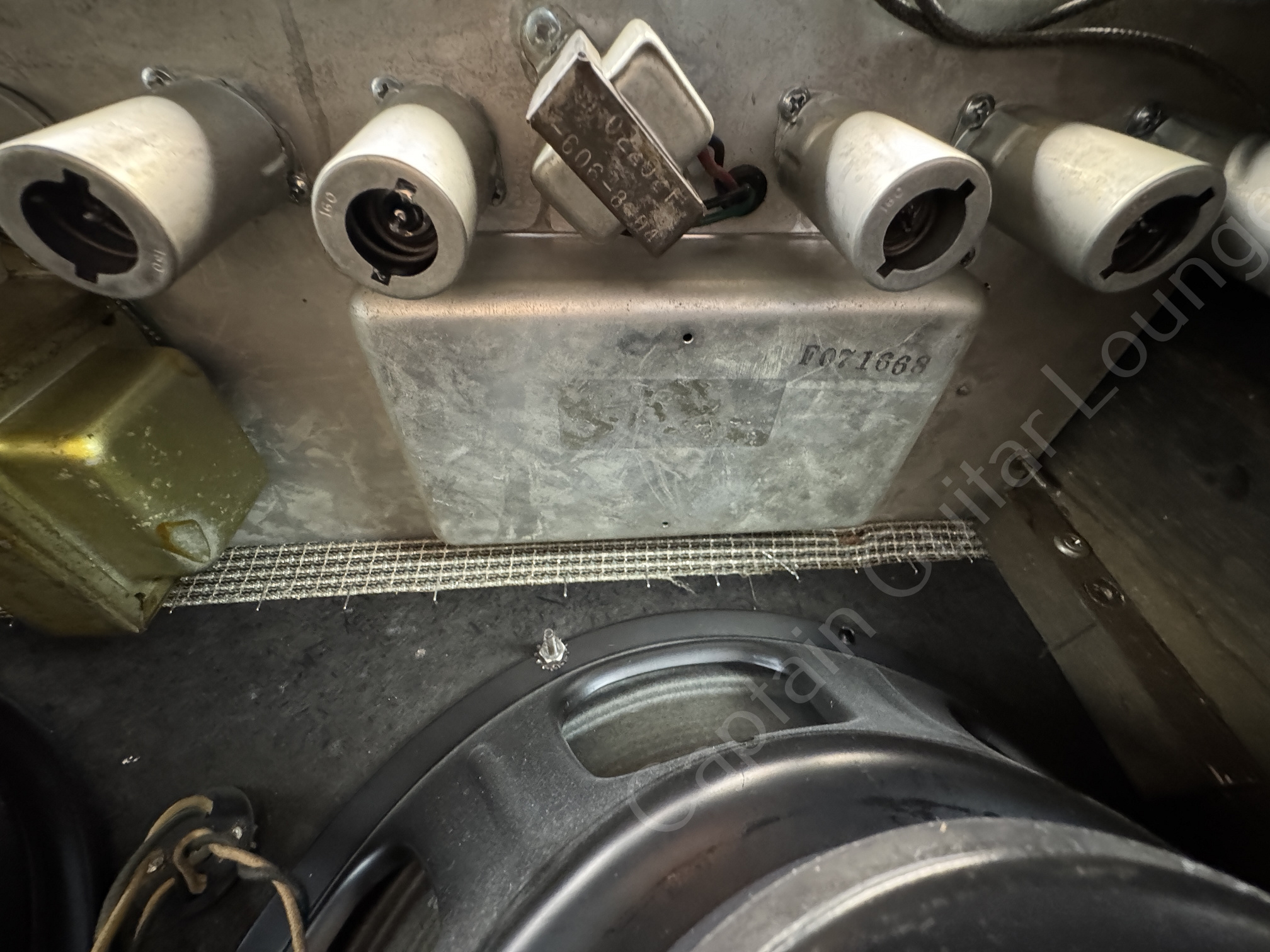 A silverface combo from the first series (1967-1969) with the filigree drip edge design, but technically still a hand-wired blackface amp with the AA165 circuit.