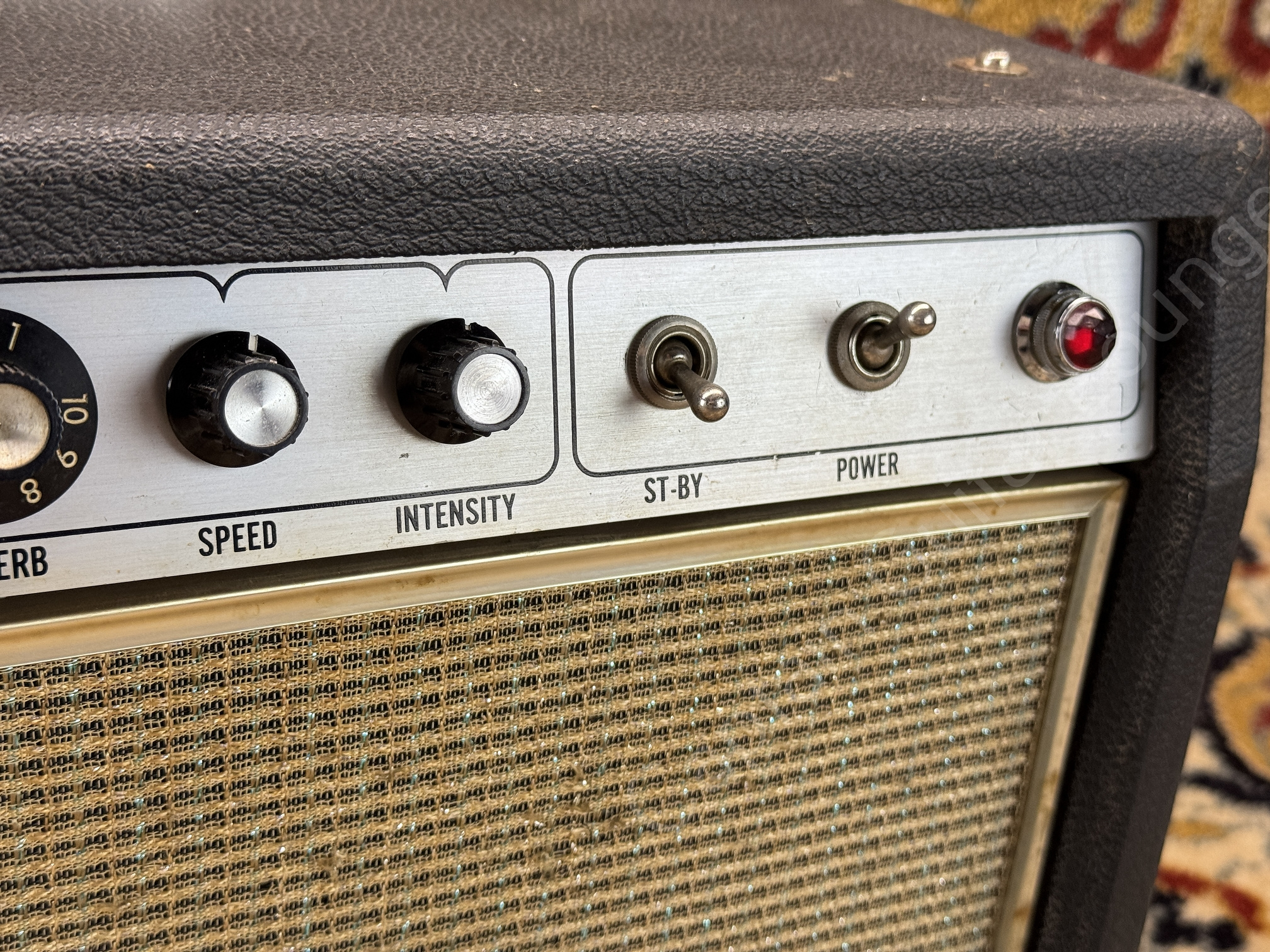 The typical drip-edge look (aluminum frame) and the combination of reverb and tremolo make it a real vintage treasure.