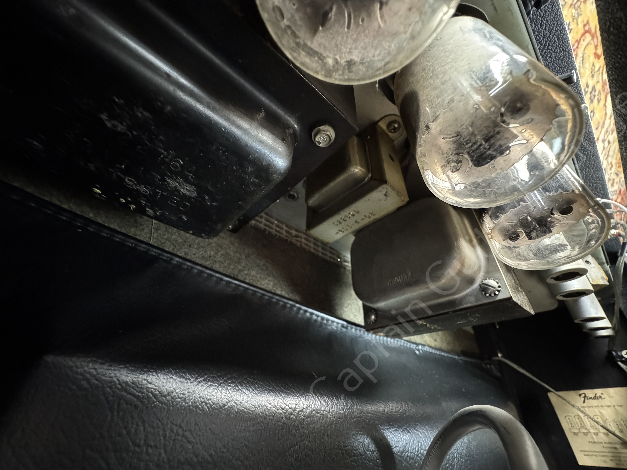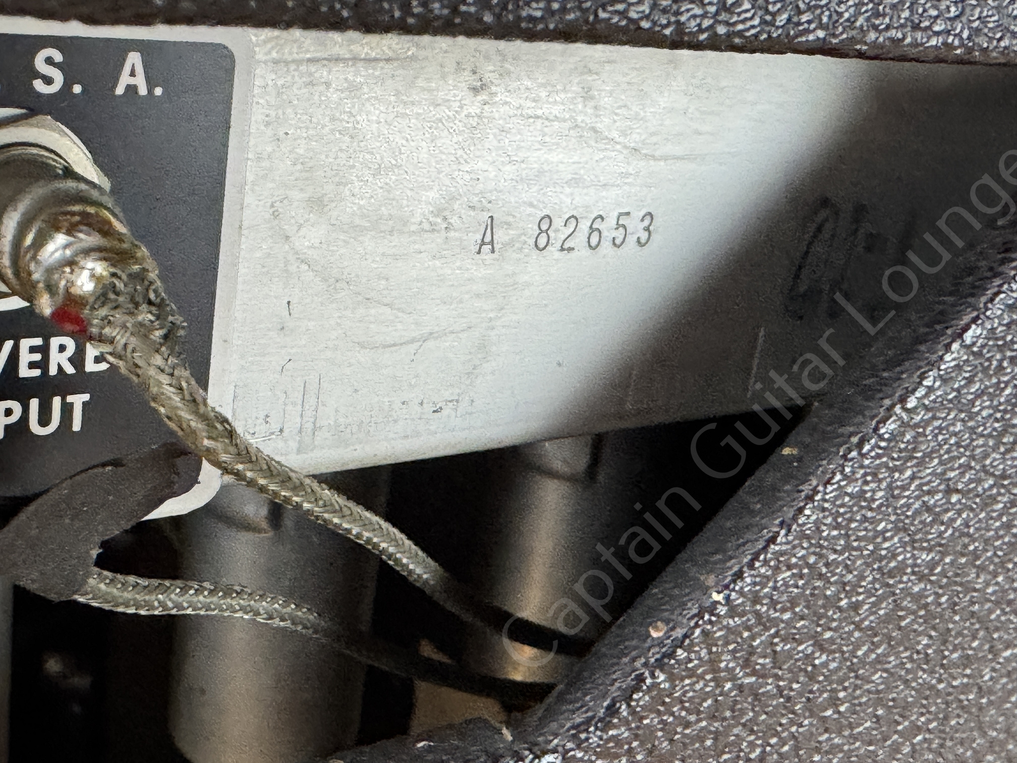 Visually very clean: Tolex, front panel and lettering are in excellent condition, except for a few small holes in the top of the Tolex. The footswitch is new.