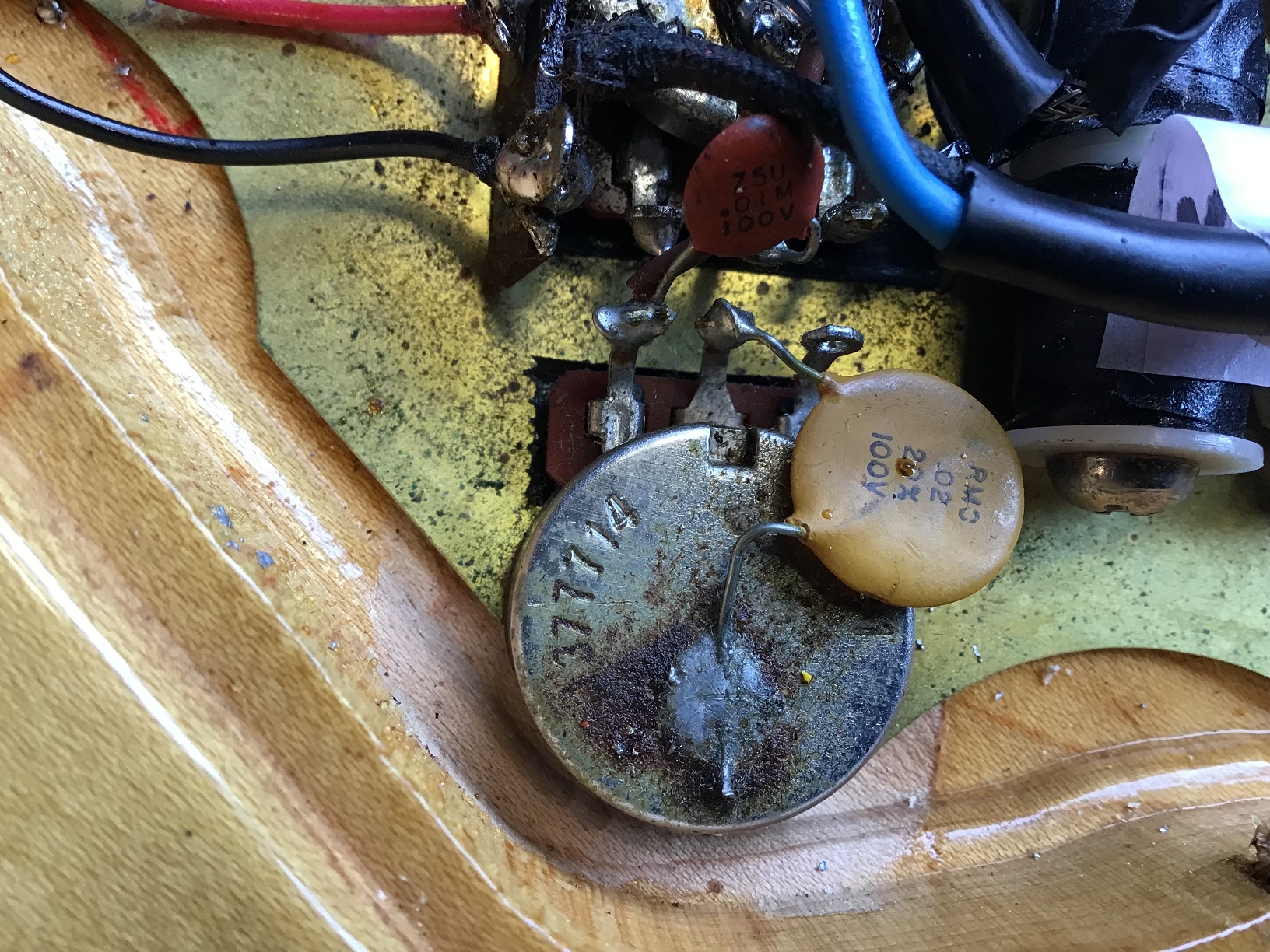 ✅ Switches: 6-way rotary control (1: both PUs in series, 2: neck, 3: both parallel, 4: both parallel out of phase, 5: bridge, 6: both in series out of phase)