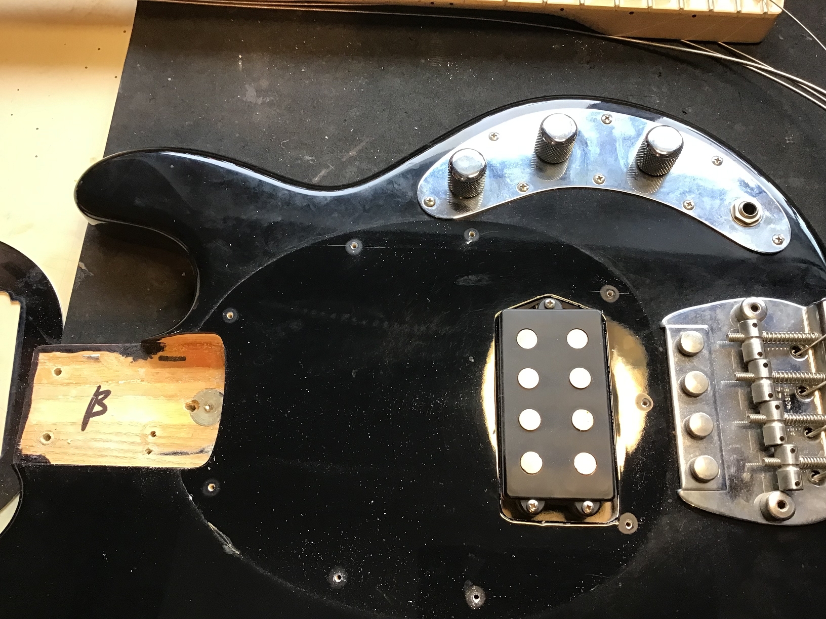This Music Man StingRay from 1979 (according to Potis from 04/79) comes from the coveted pre-earnie-ball era, when the instruments were still being developed under the direction of Leo Fender.