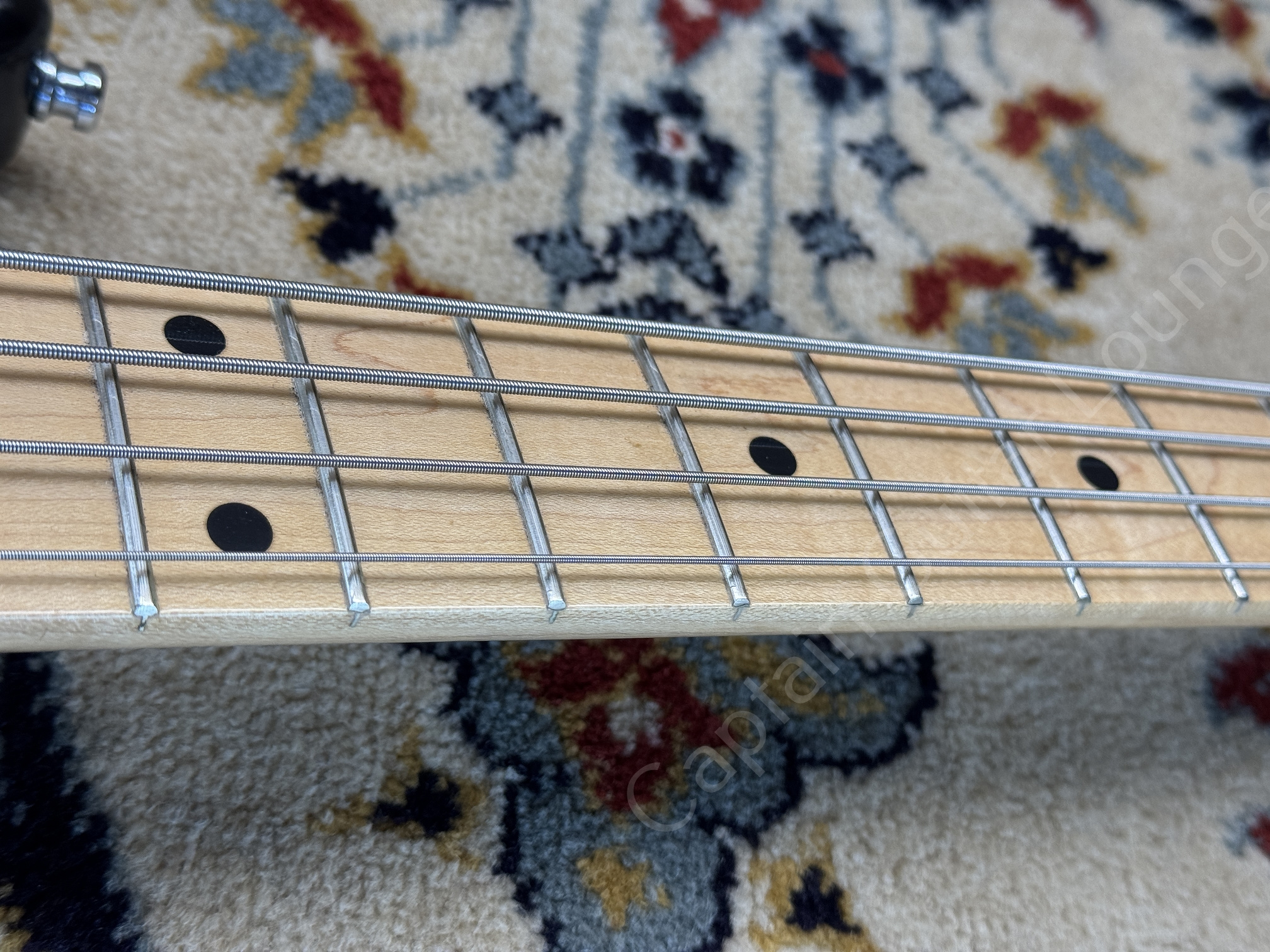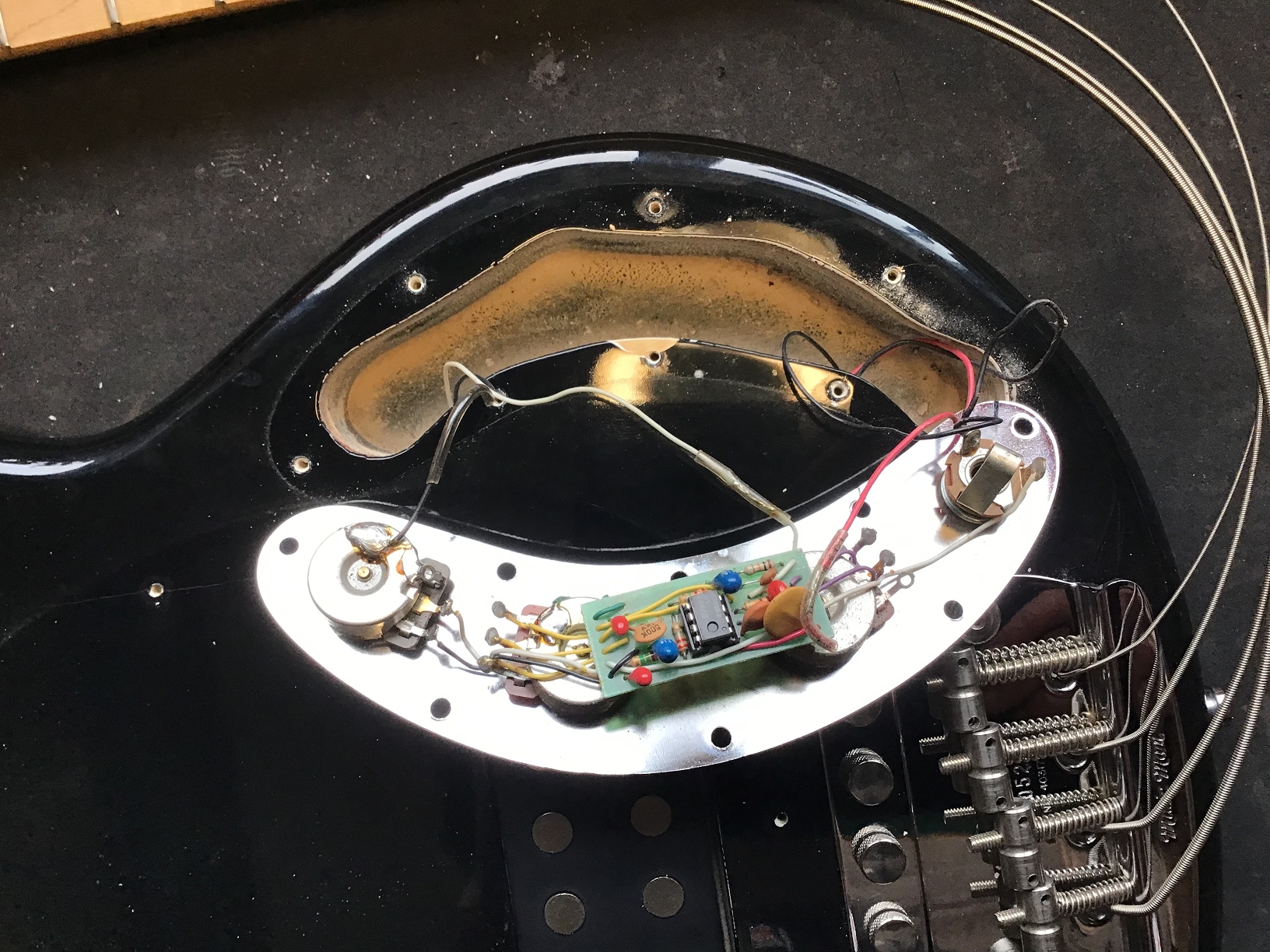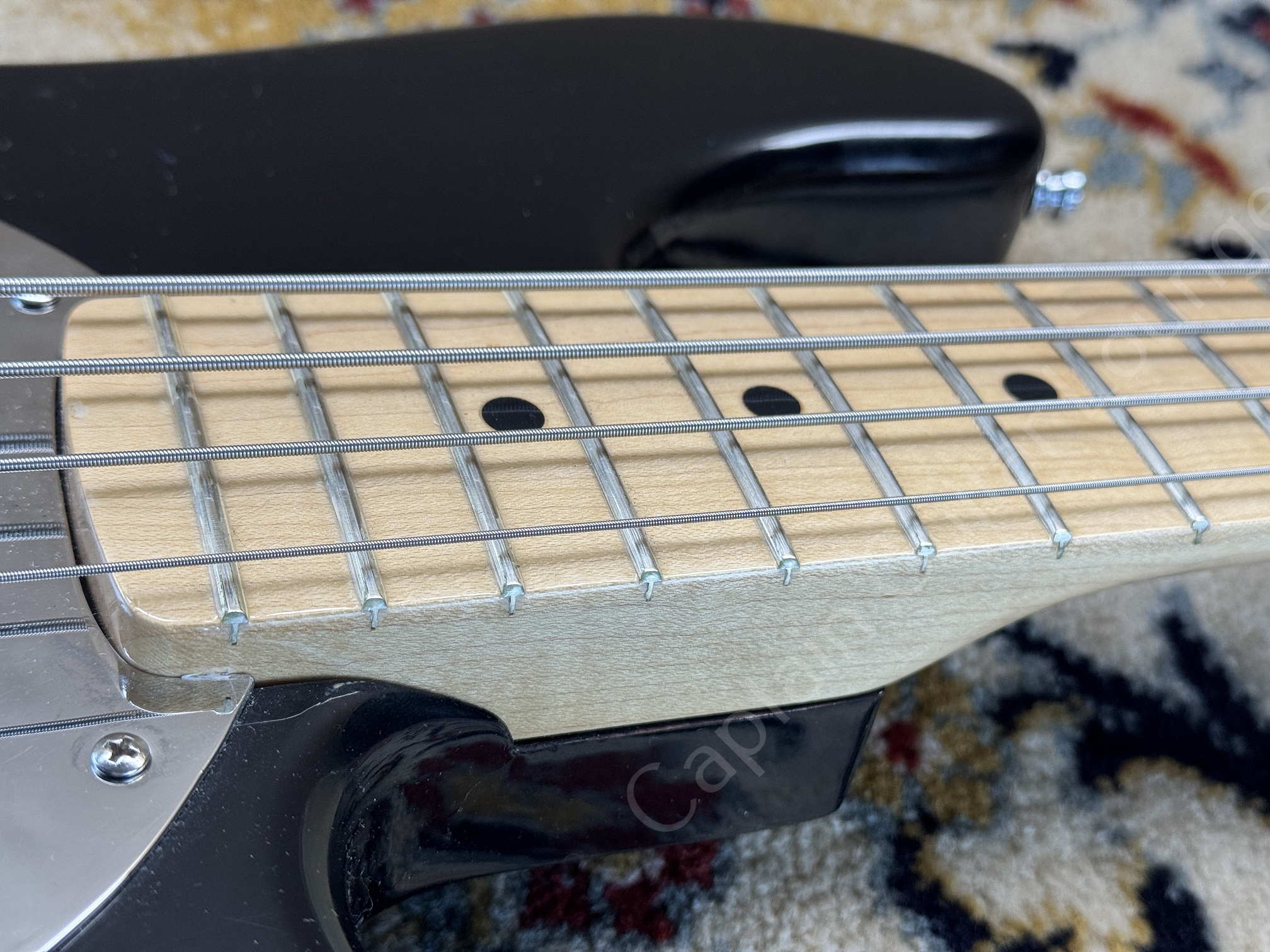 The bass is original except for the pickguard and the nut. The frets and fingerboard look like new, the bass has definitely only been played sporadically.