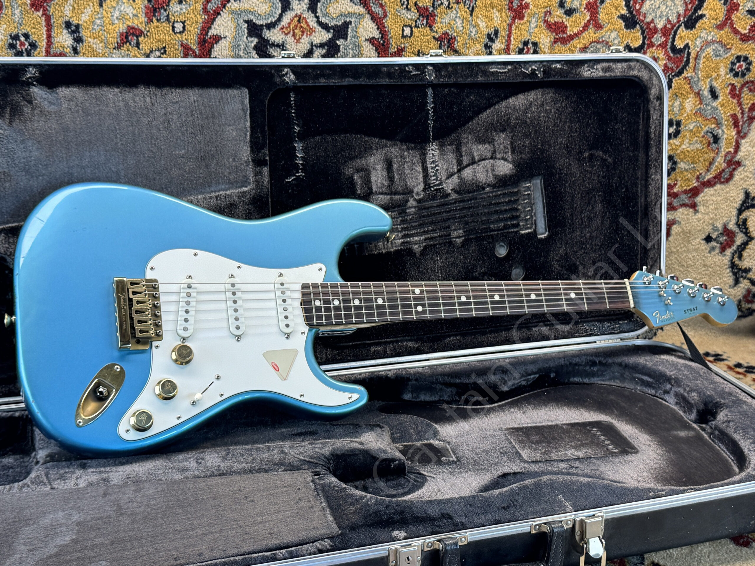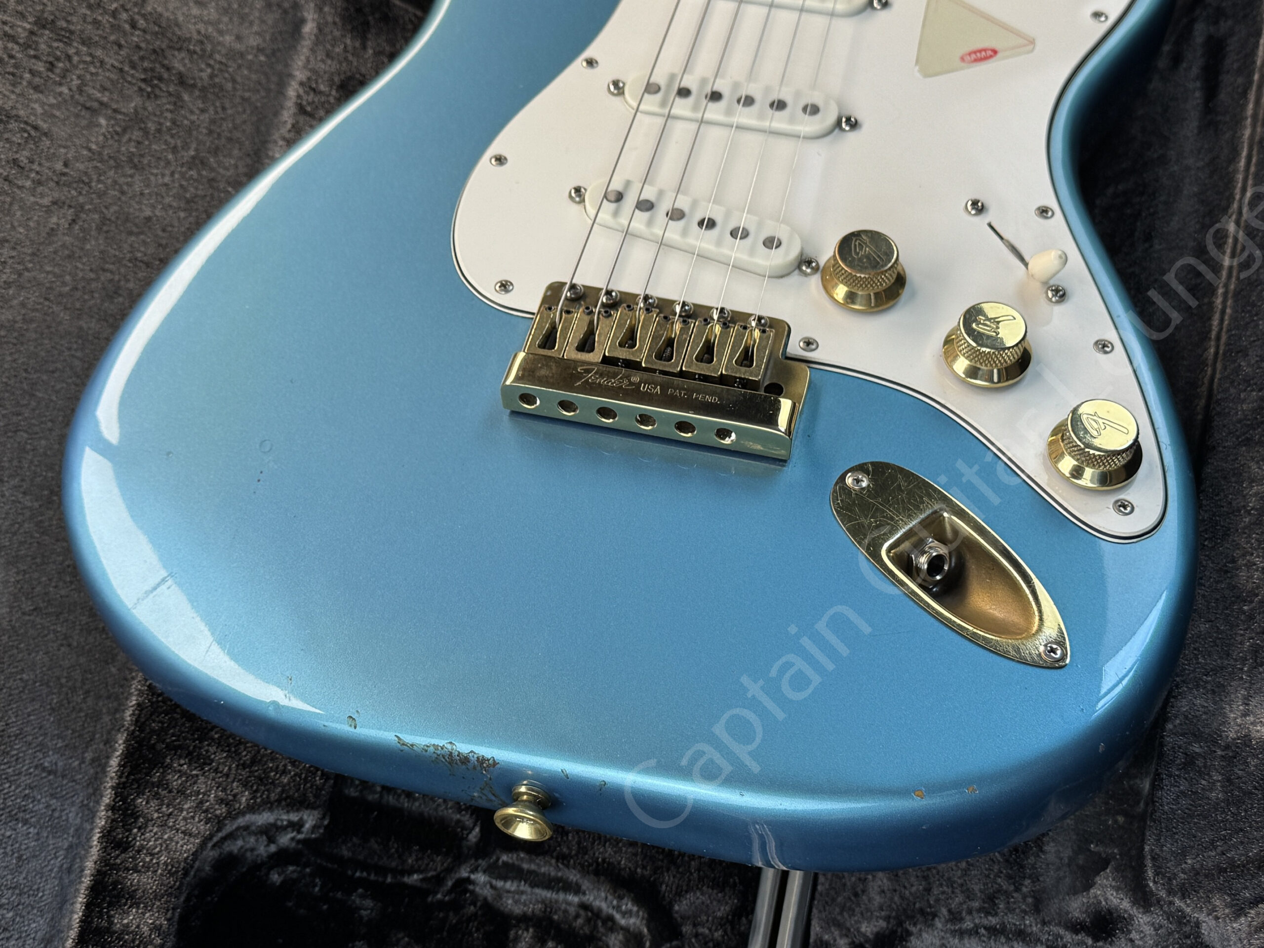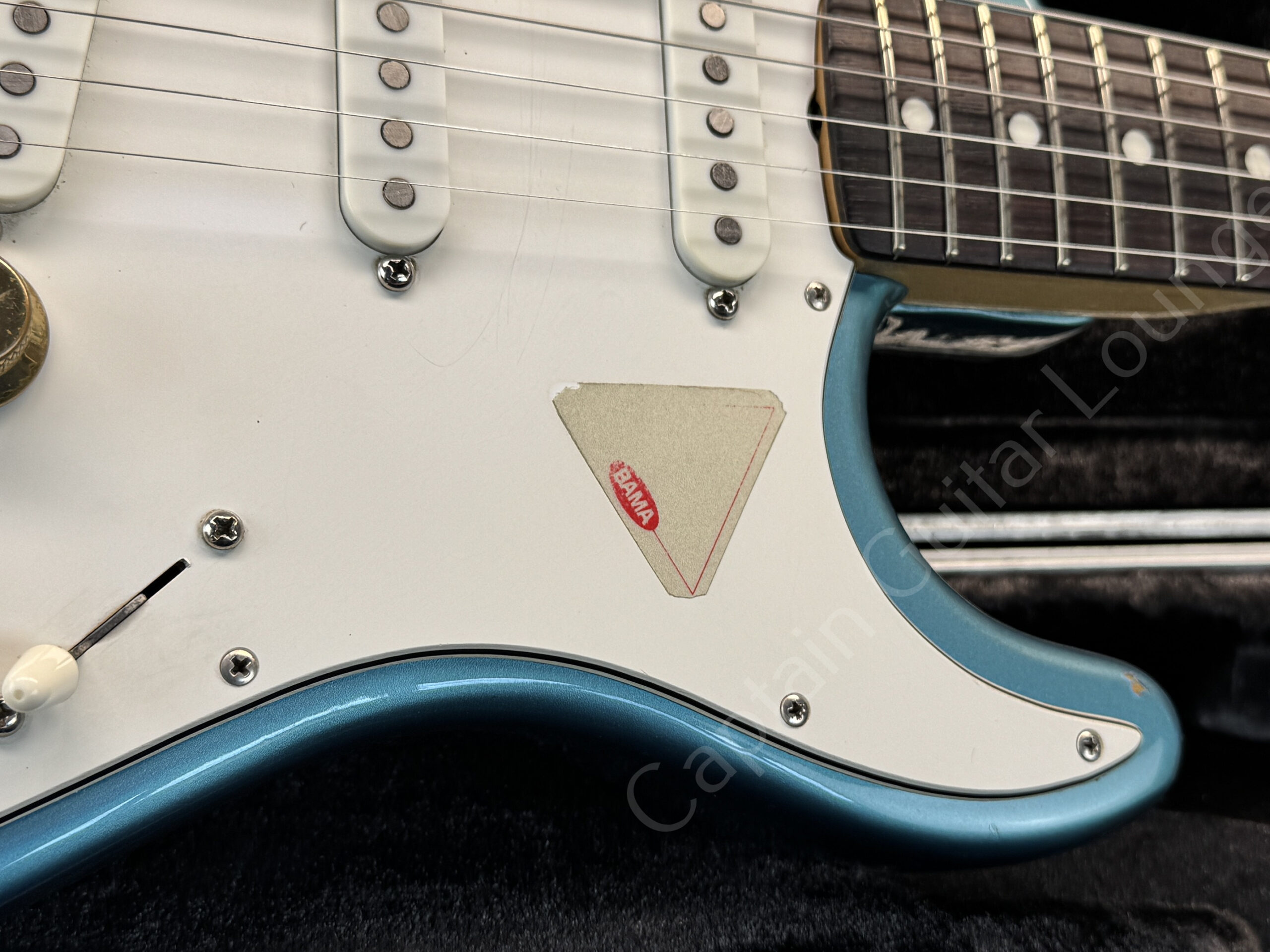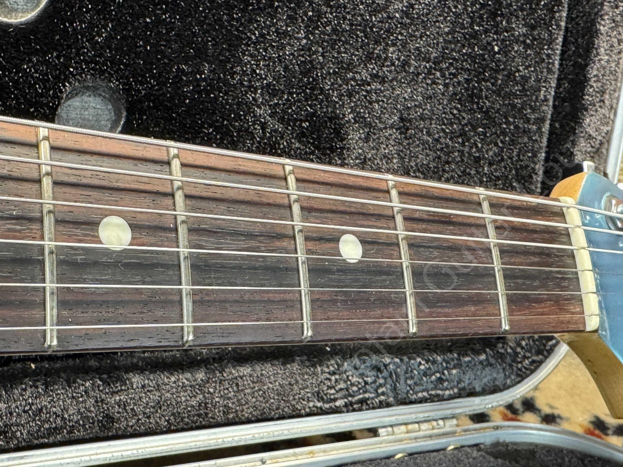 This guitar comes with the original Fender molded case. The tremolo lever is missing, an aluminum shield foil in the compartment has been removed, otherwise it is in good condition.
