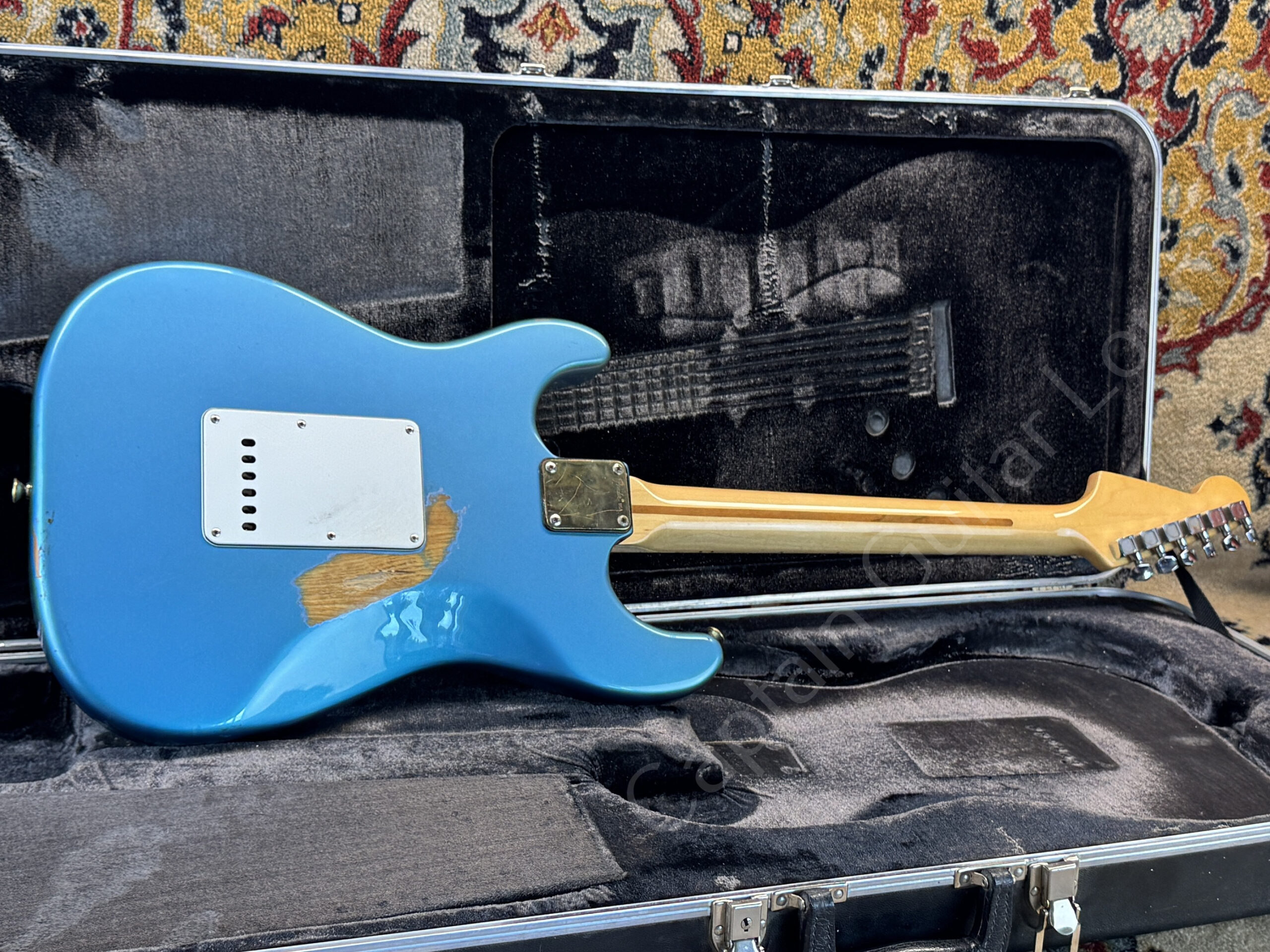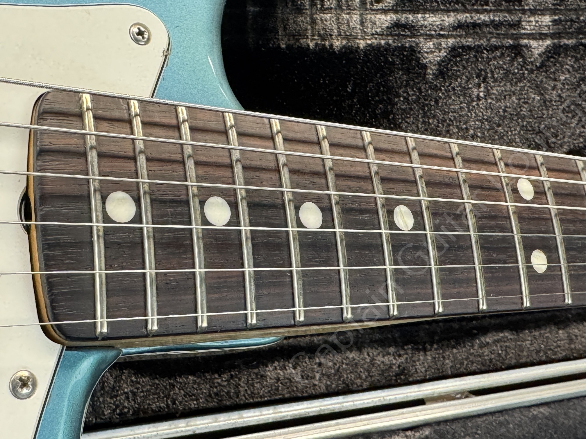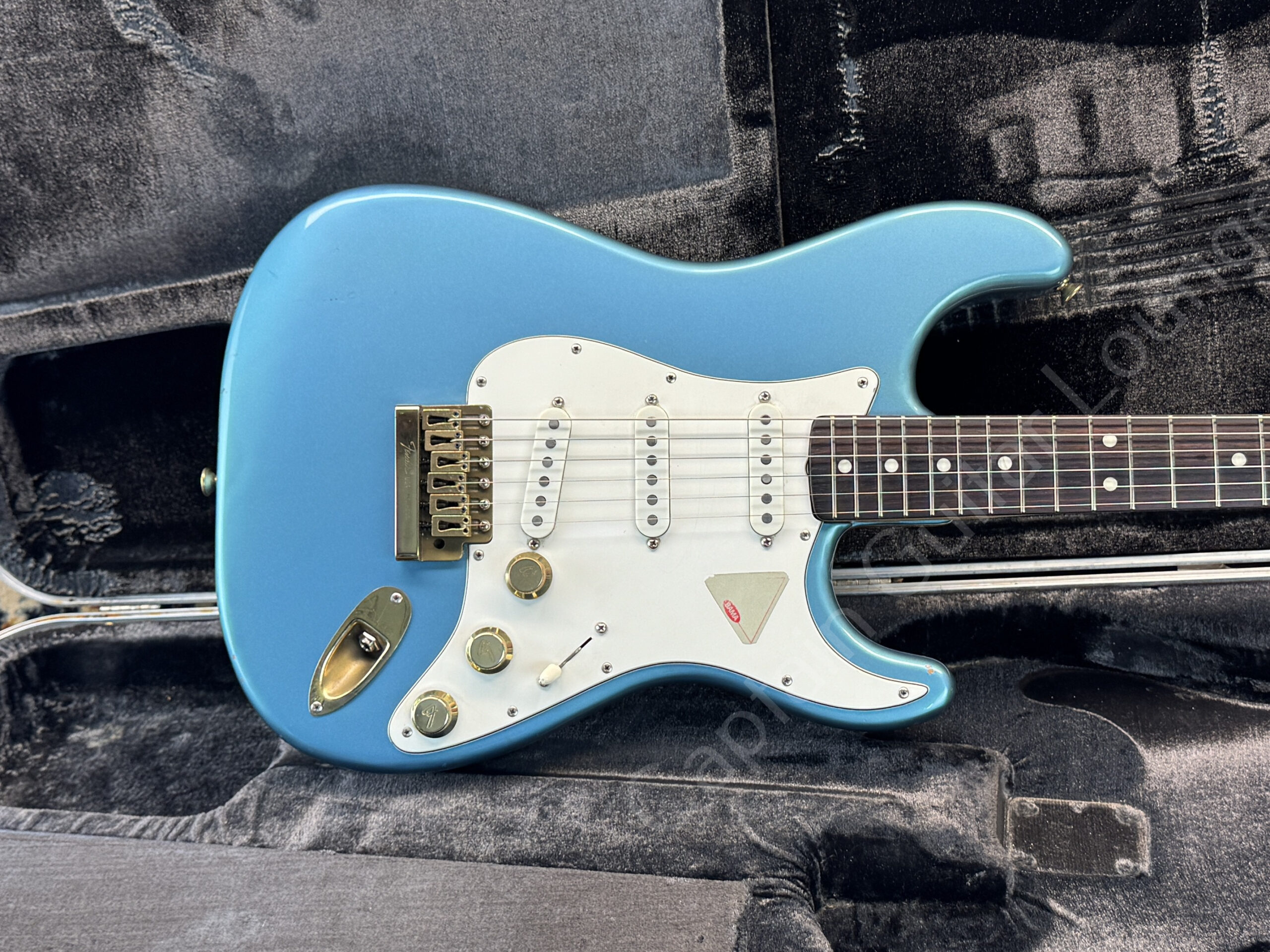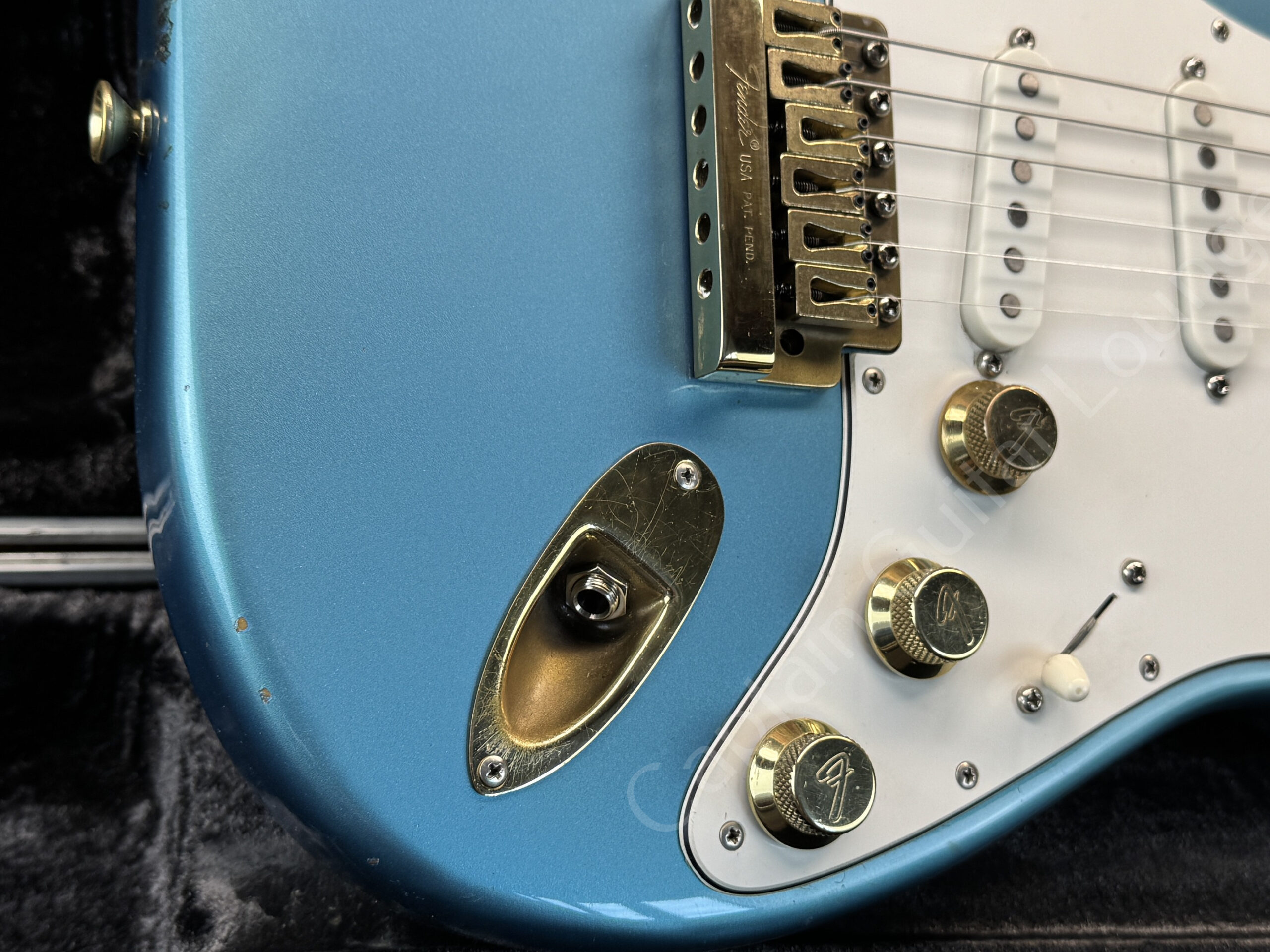 This guitar comes with the original Fender molded case. The tremolo lever is missing, an aluminum shield foil in the compartment has been removed, otherwise it is in good condition.