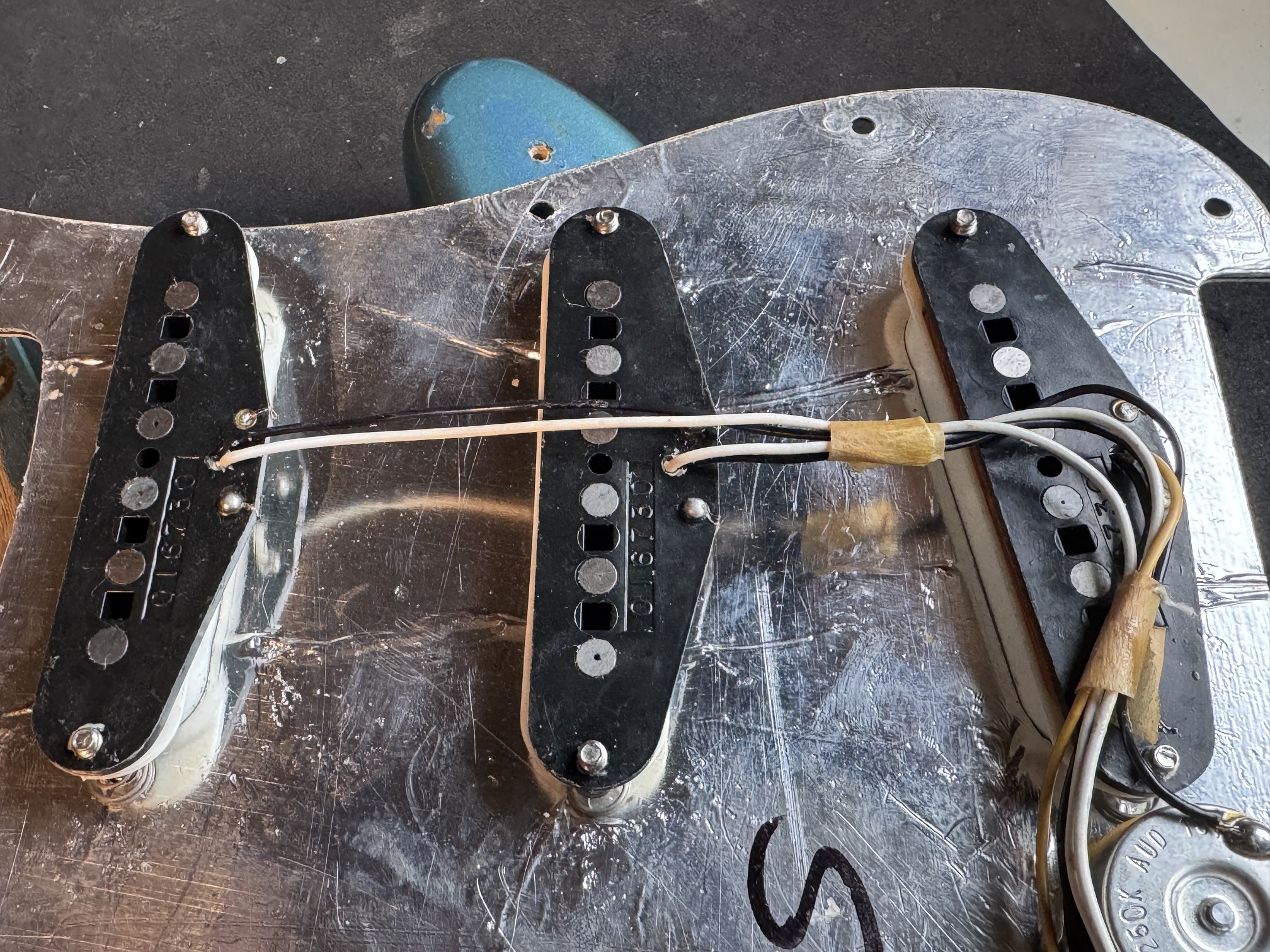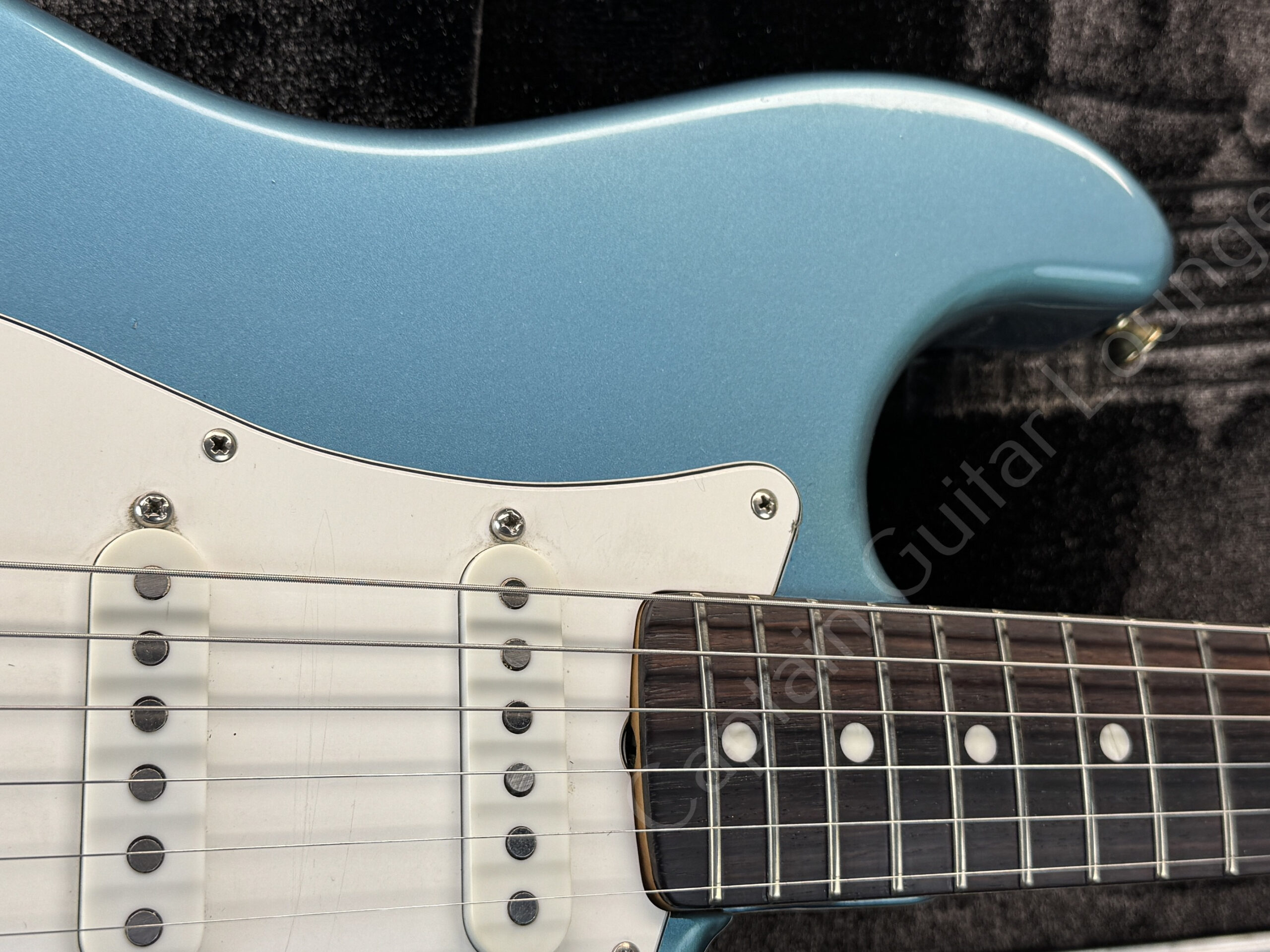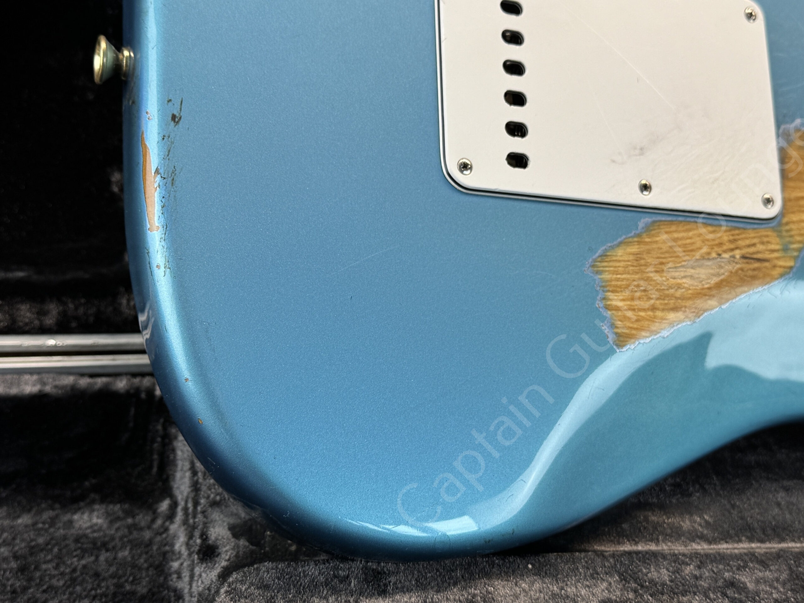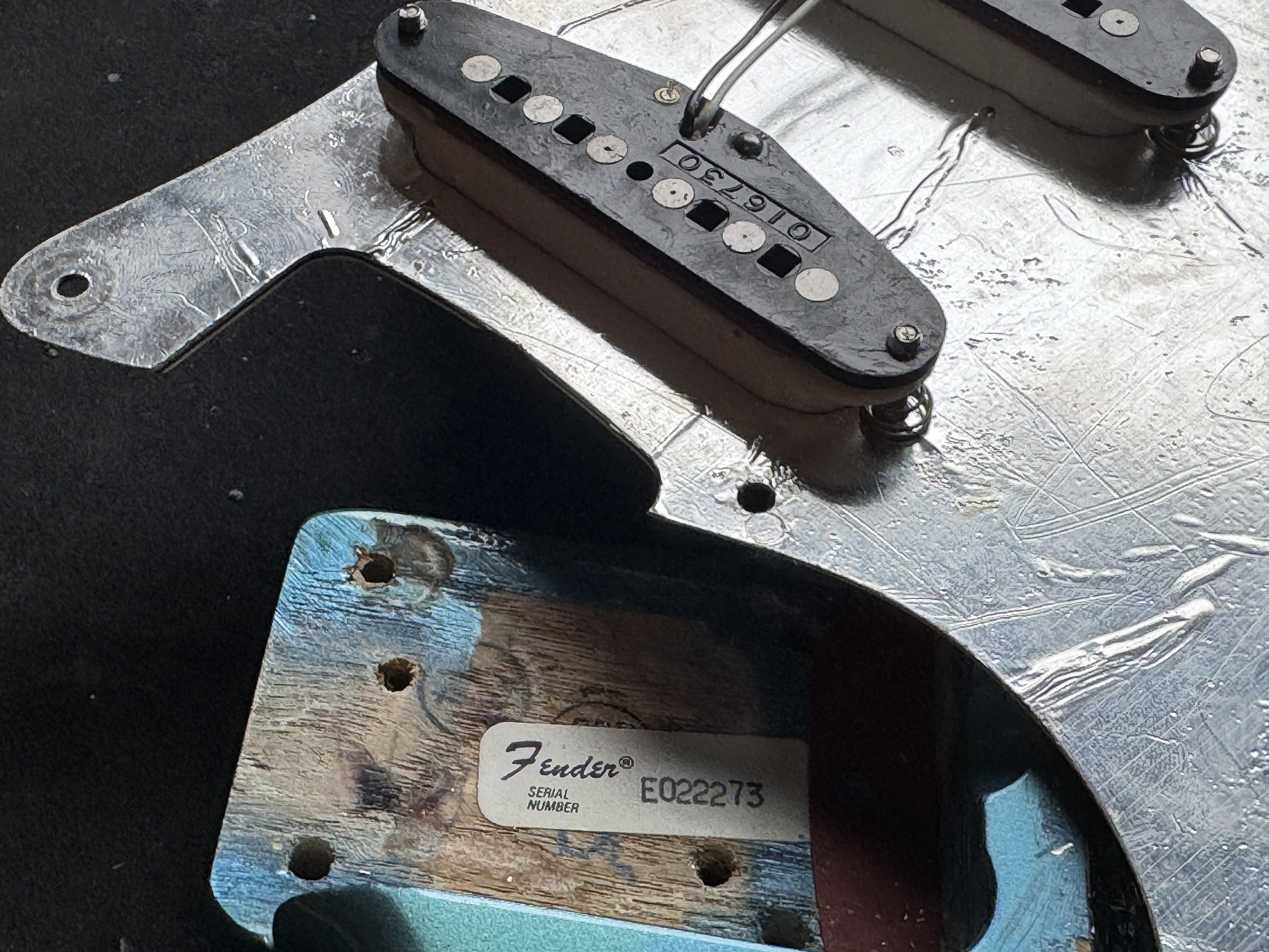 This guitar comes with the original Fender molded case. The tremolo lever is missing, an aluminum shield foil in the compartment has been removed, otherwise it is in good condition.