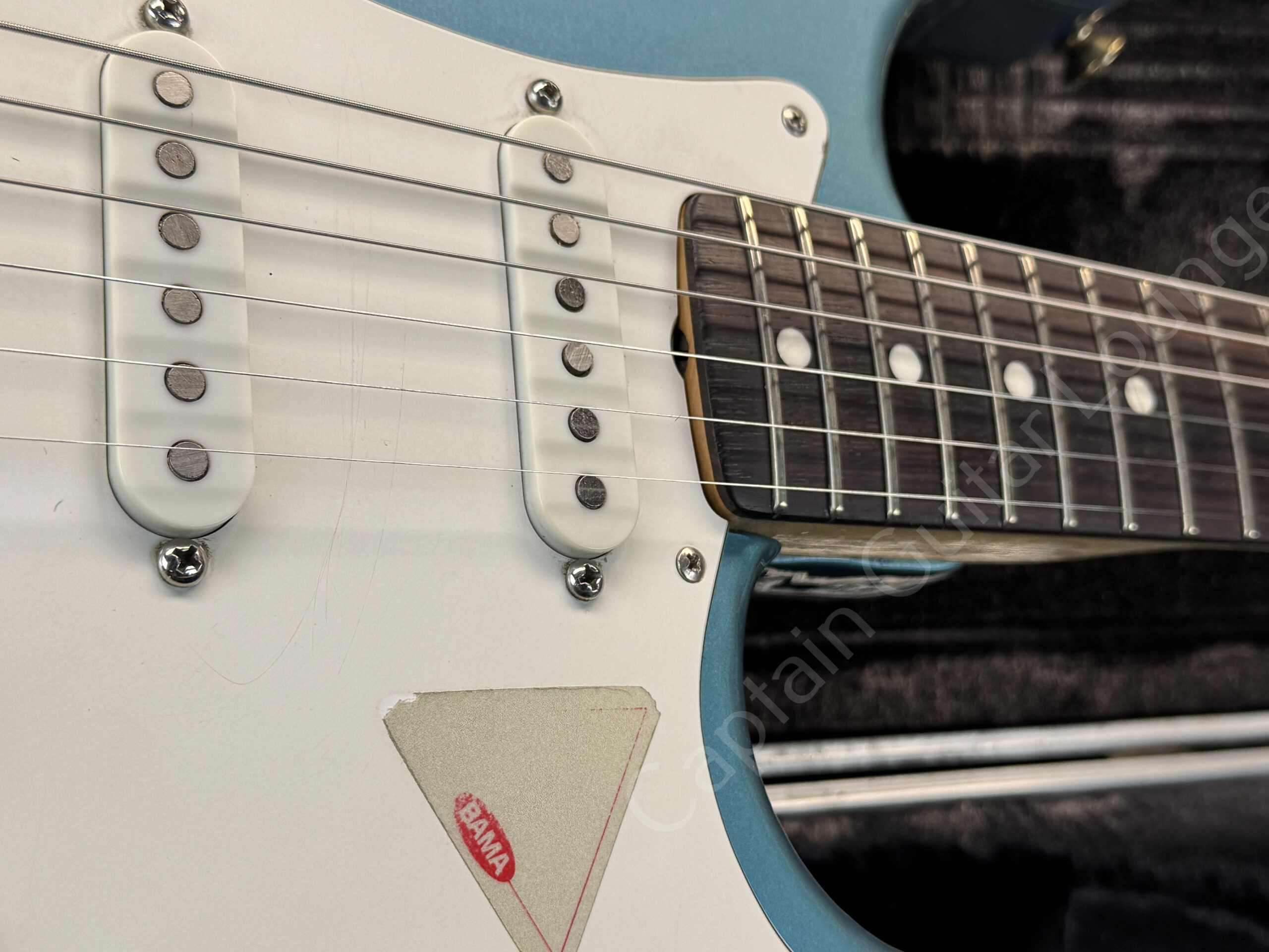 A Fender rarity from the early 80s: This "The Strat" from 1980 comes in a beautiful Pacific Blue finish with matching headstock - a real eye-catcher.