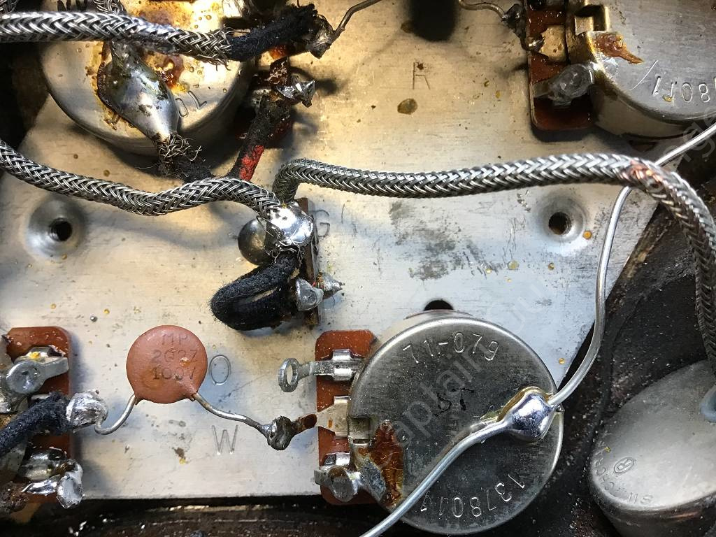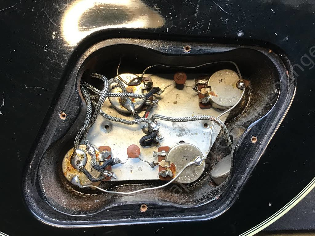 This guitar is in good condition, it has no breaks or damage, only slight signs of use and pressure marks, especially on the back. The gold-plated hardware still looks very good and is hardly worn. The belt pins (security locks) are not original. The pickups and pots incl. Wiring was temporarily replaced by other parts, now the original parts are installed again.