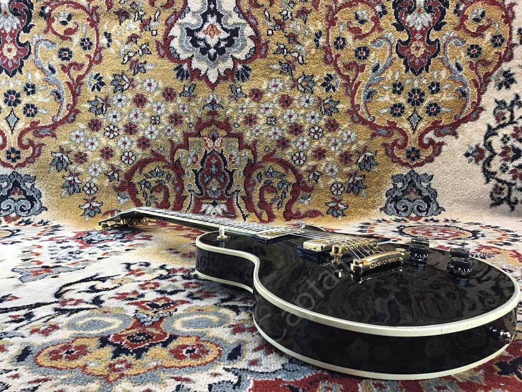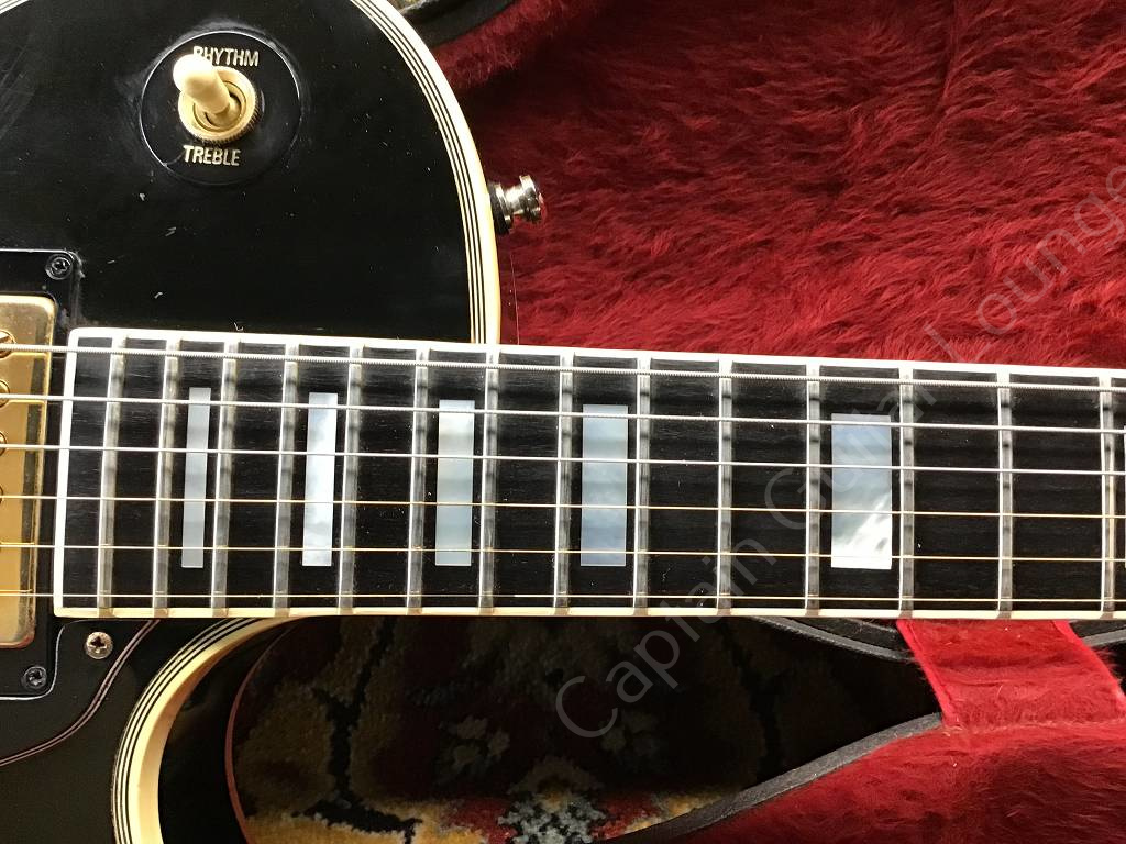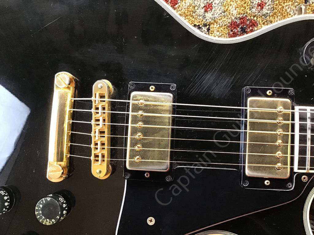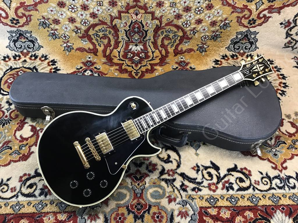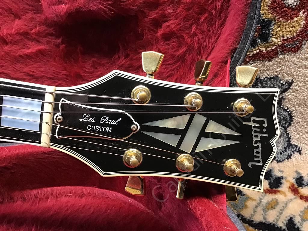 Well preserved Gibson Les Paul Custom Ebony from 1980 with the typical features of the Black Beauty of that year, such as three-piece maple neck with volute, heavy mahogany body, gold-plated hardware, Nashville Tune-o-matic bridge with pins, Tim Shaw humbucker.