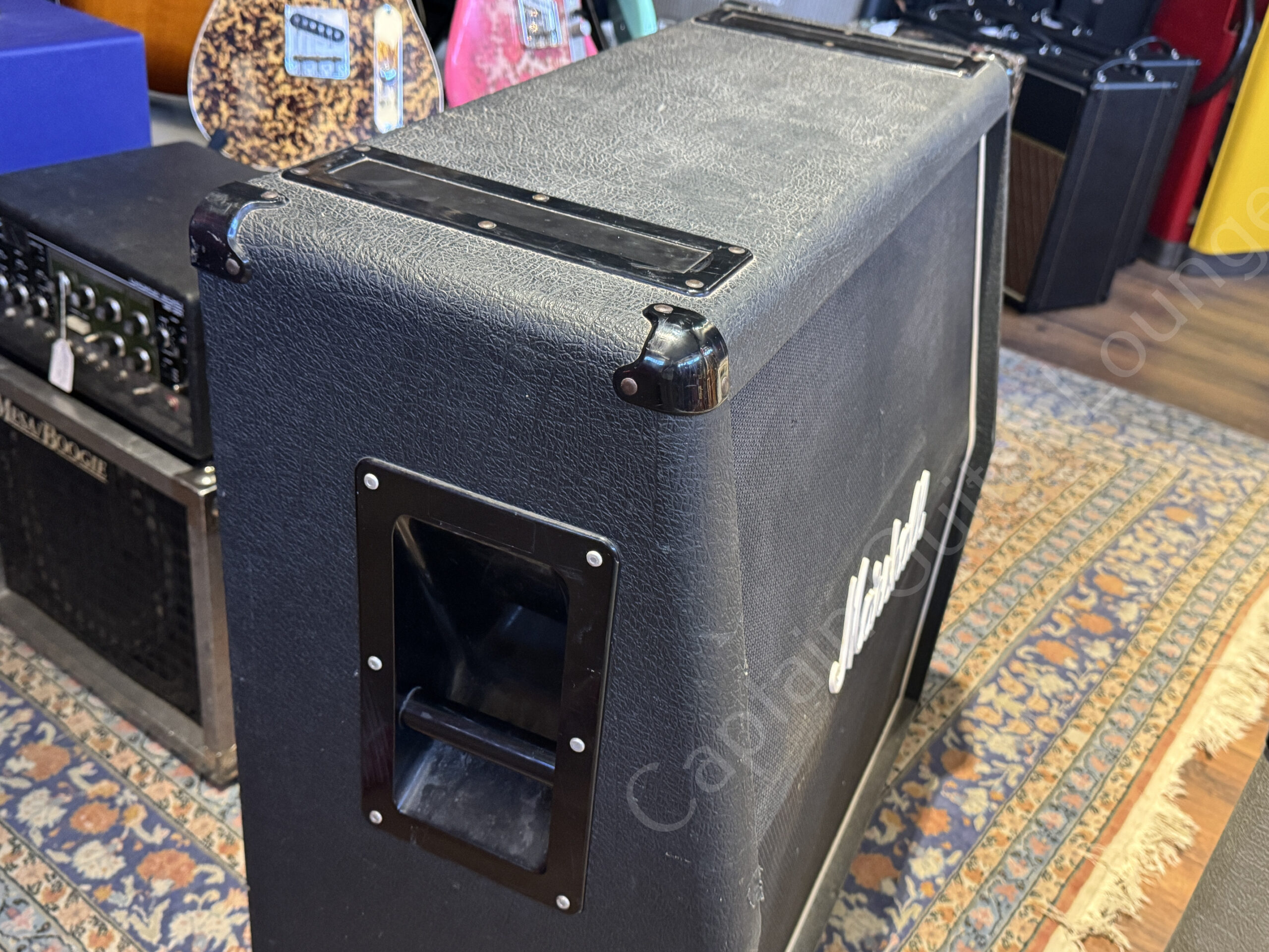 Equipped with four original Celestion G12-65 speakers (date code AQ12 = 1982), this speaker delivers exactly the sound for which the early JCM800 stacks are famous: powerful and dynamic.