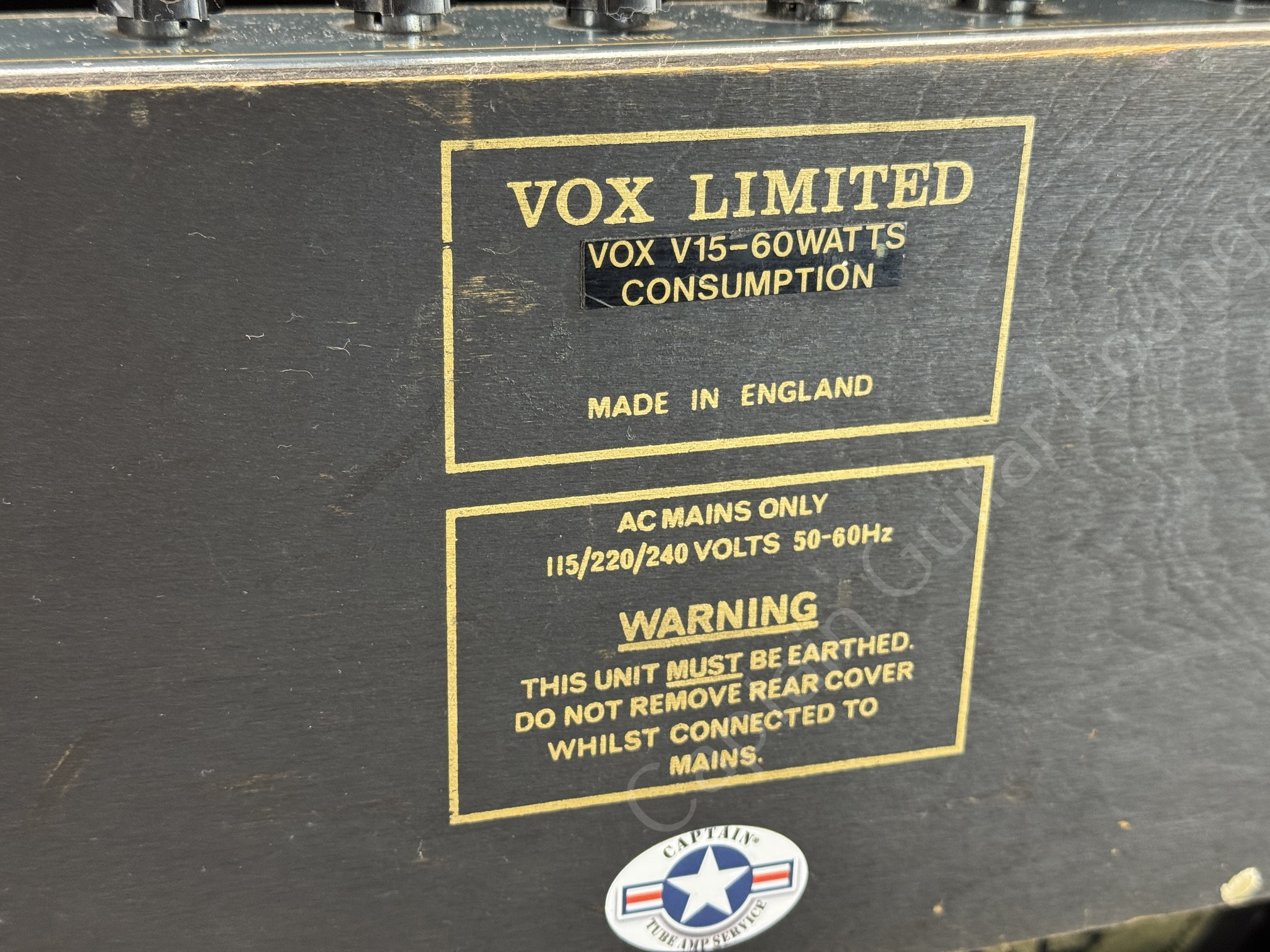 The handy VOX V15 was built in the early 1980s by Dallas Industries in Shoeburyness (Southend-on-Sea, Essex, England) for Rose Morris.