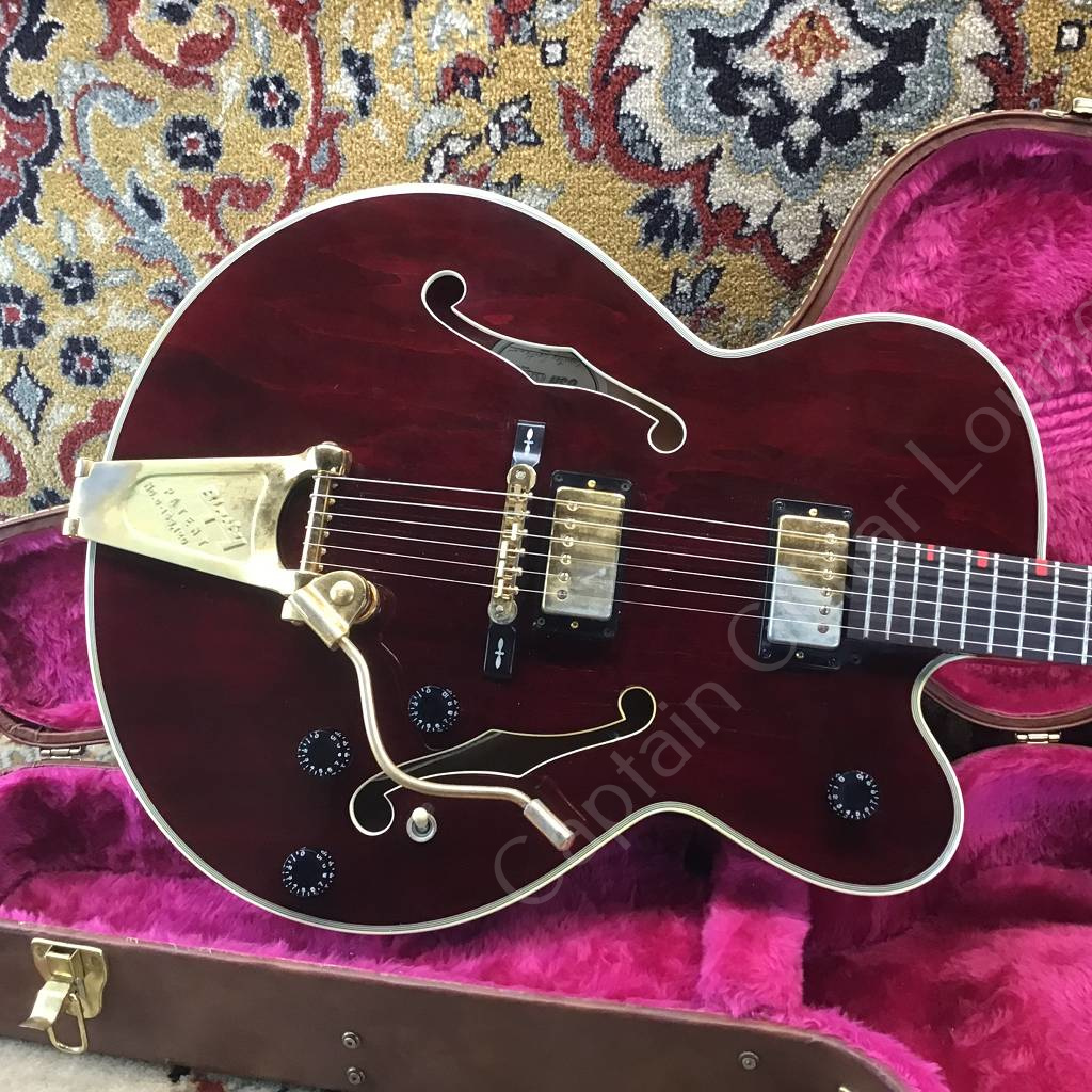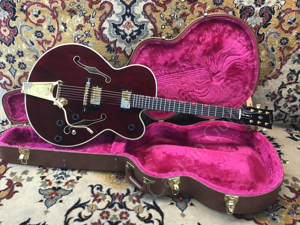 Gibson brought the zw. 1987 and 2000 model Gibson Chet Atkins Country Gentleman with a thinner body (thinline), center block, wider spaced pickups (for fingerstyle playing), long arm Bigsby and conveniently placed master volume control.