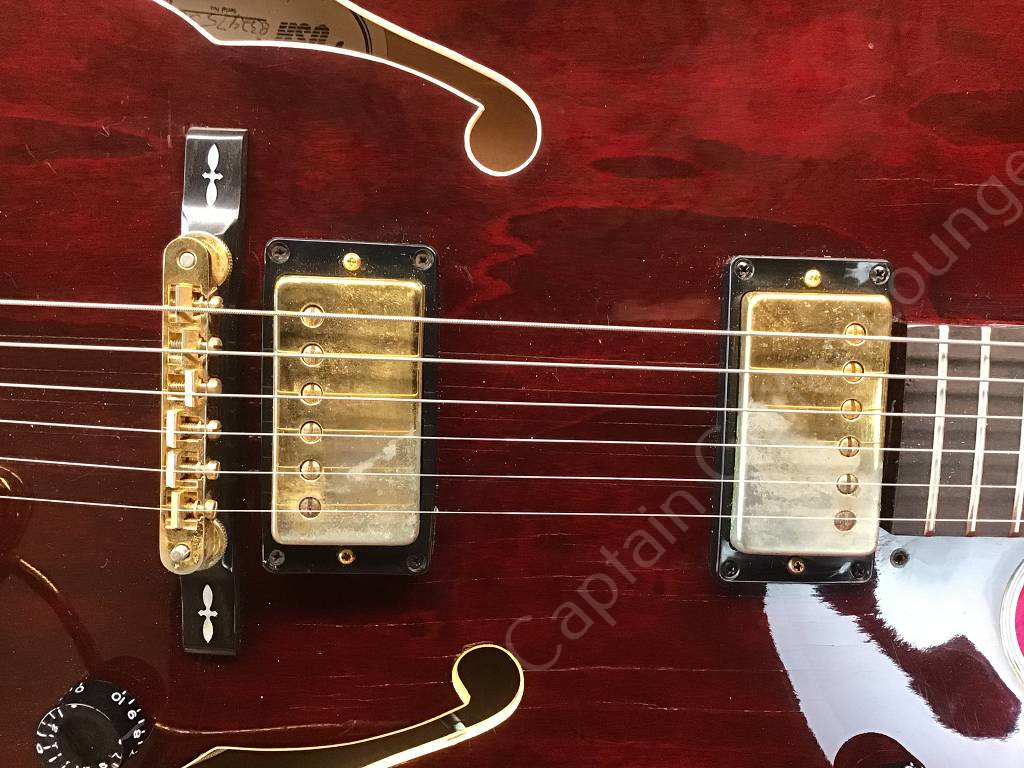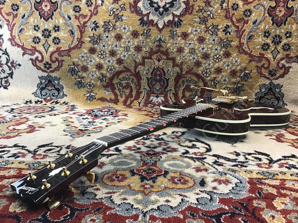 - Body: laminated (partly flamed) maple, semi-hollow with maple center block