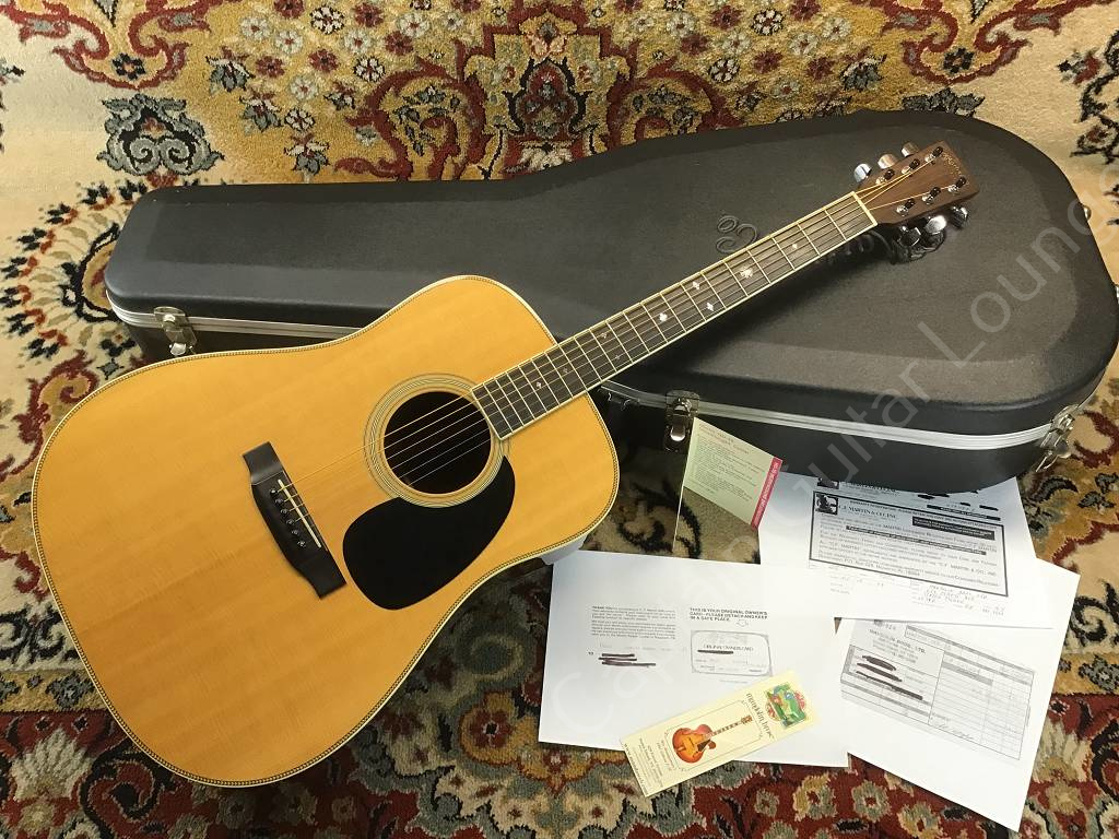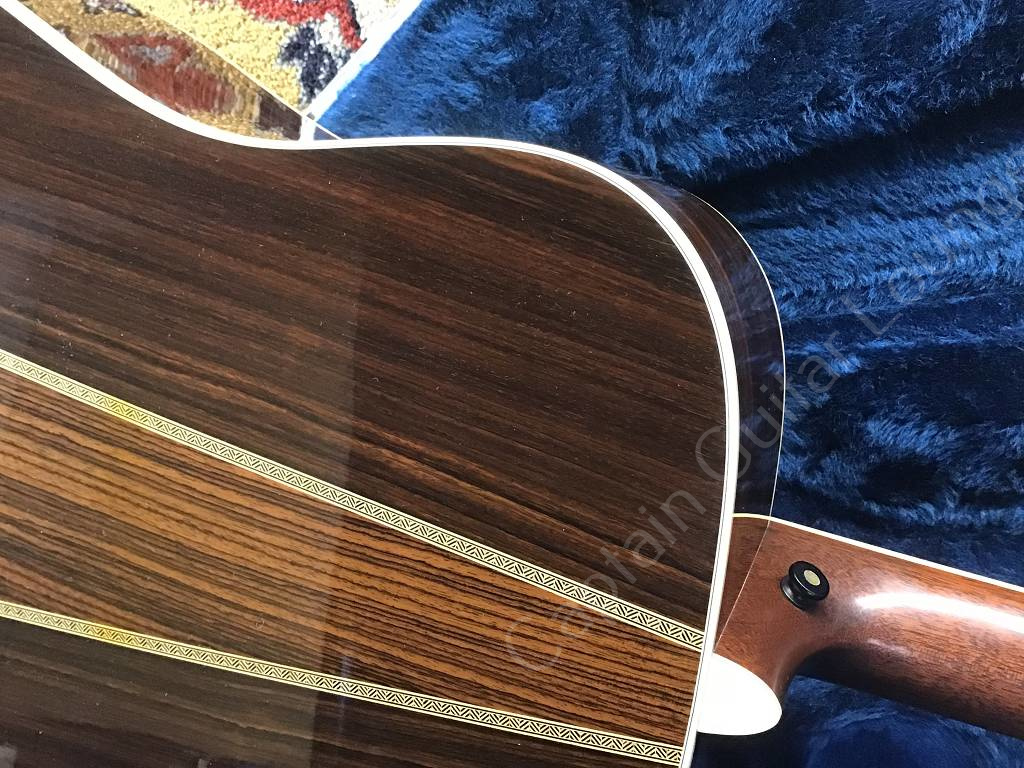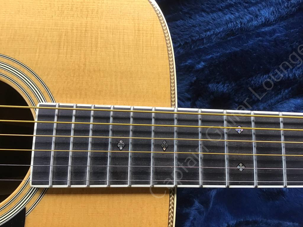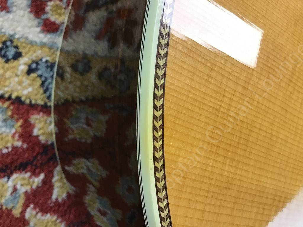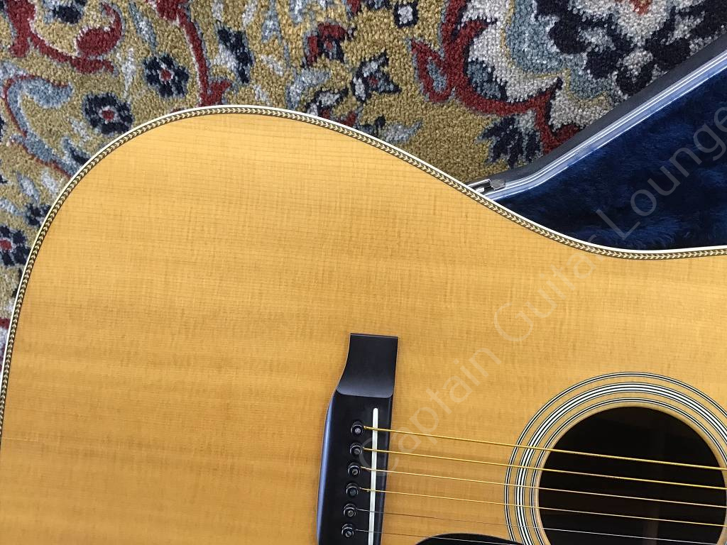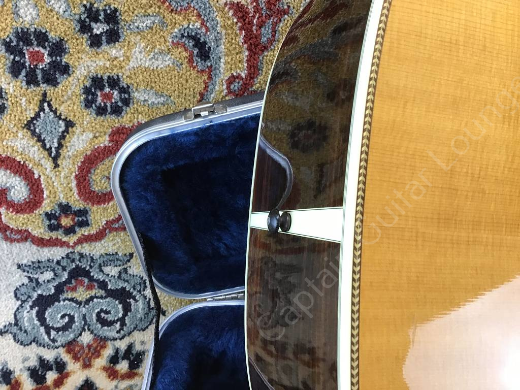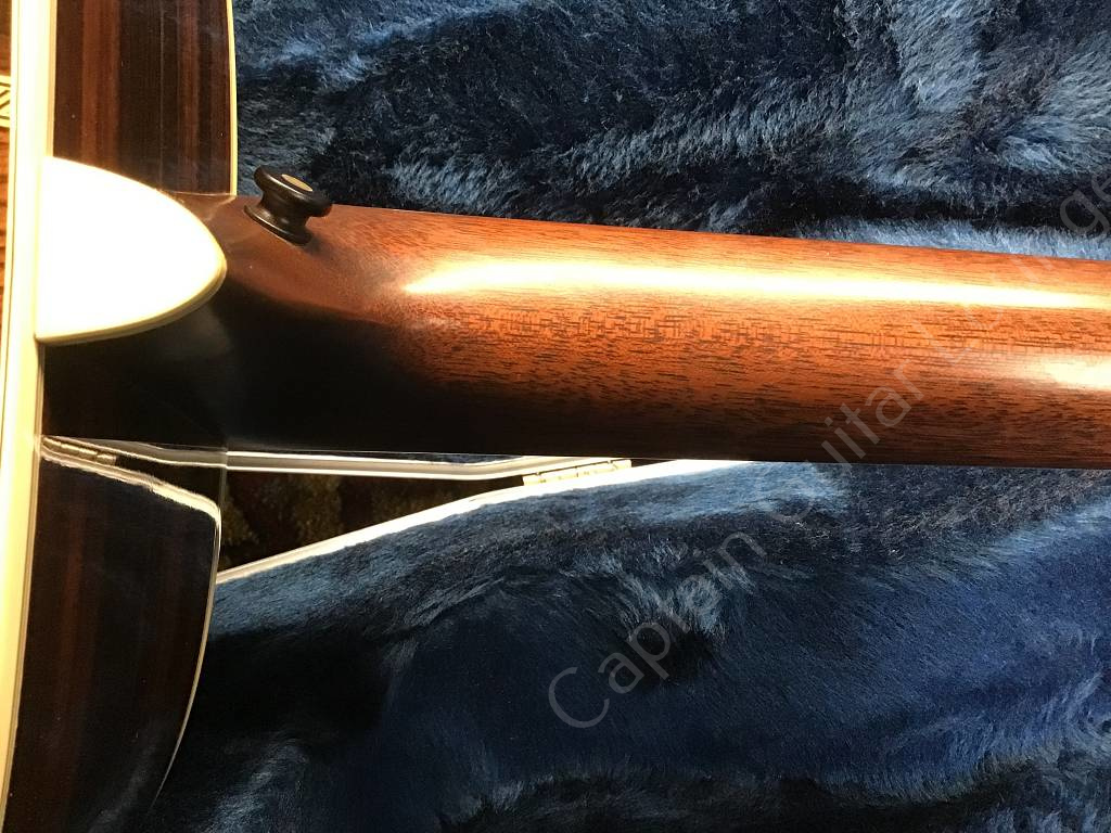 This guitar comes from the first owner, who bought it from Mandolin Bros. Ltd. in the USA. A short time later, he had the then still Munich Repair Shop (now Munich Guitar Company) to convert the dot inlays to snowflake, which enhanced their appearance even more. The clamp tuners are original, the bridge inlay and nut are made of bone, the ebony bridge and strap pins with pearl dot are not original. The guitar has only minor signs of use for its age, the varnish on the back and sides is slightly discolored due to a chemical reaction with a stand.