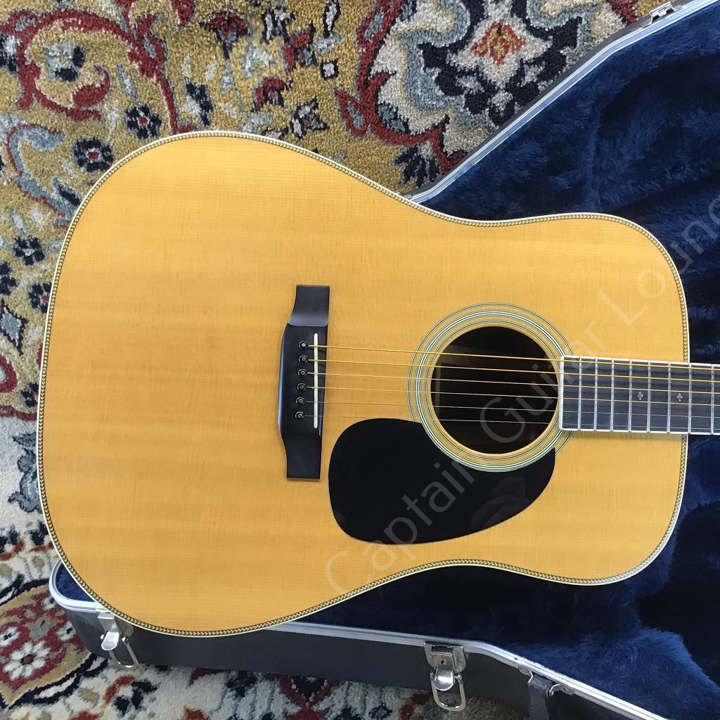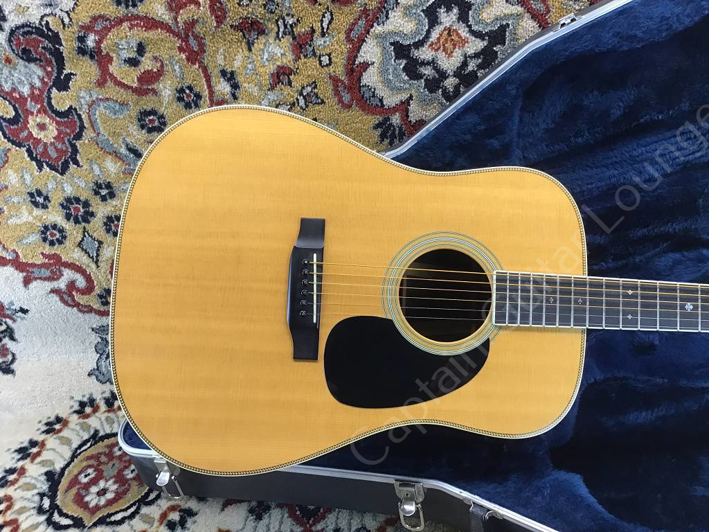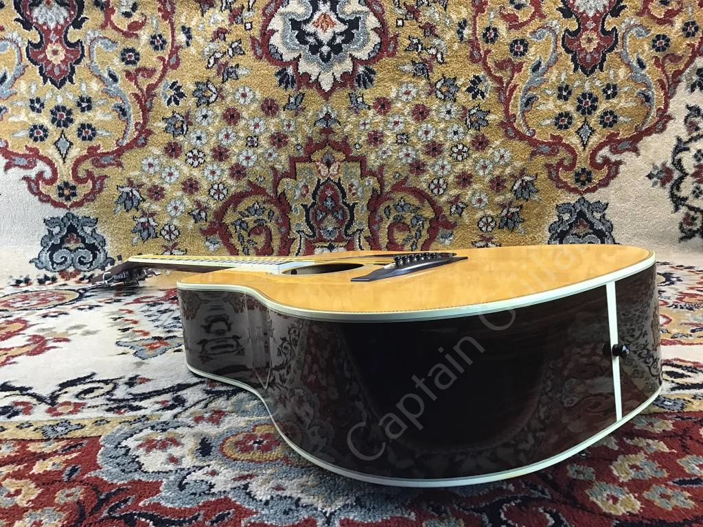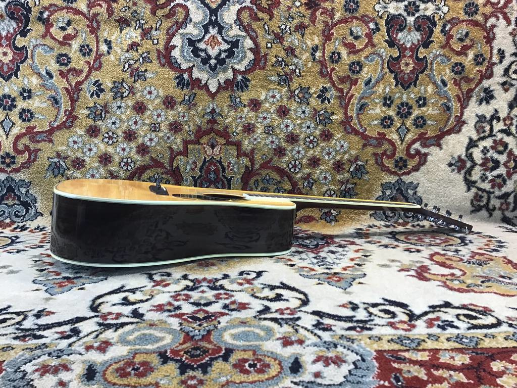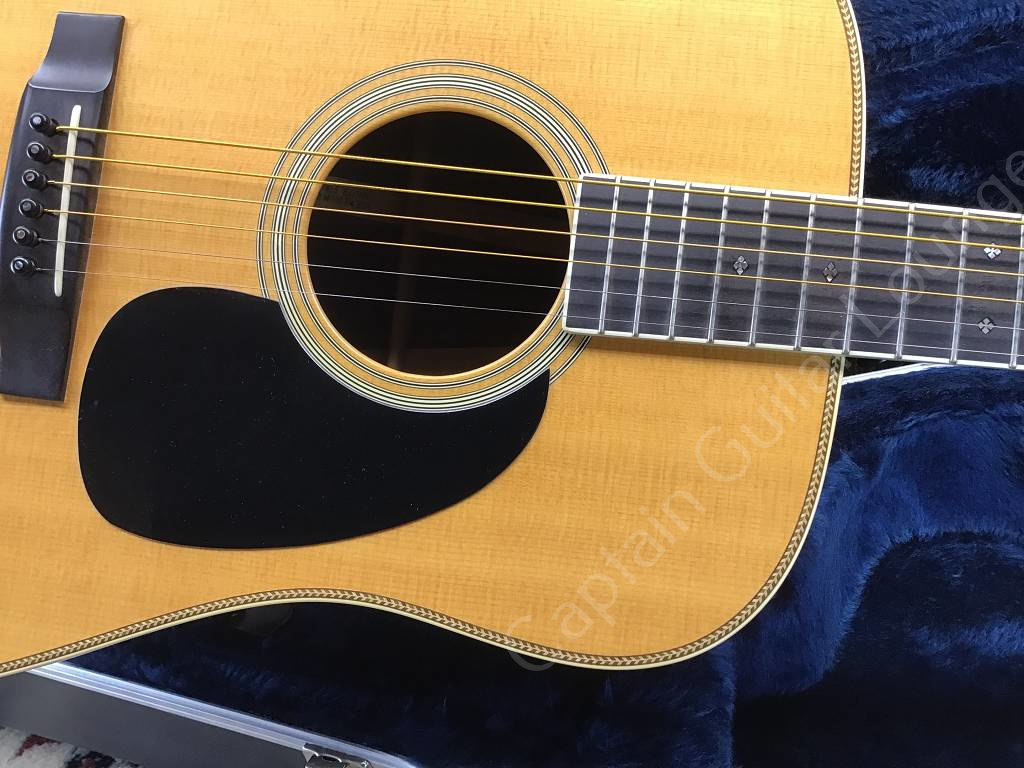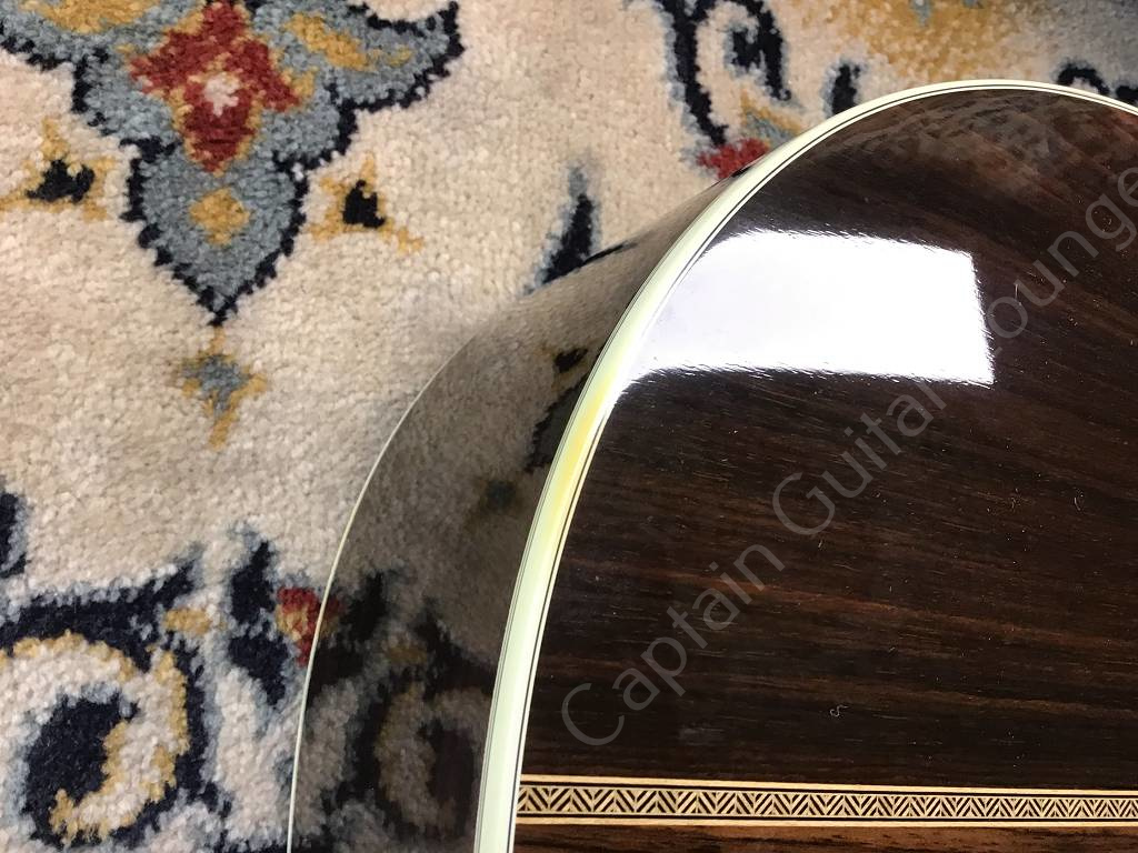 This guitar comes from the first owner, who bought it from Mandolin Bros. Ltd. in the USA. A short time later, he had the then still Munich Repair Shop (now Munich Guitar Company) to convert the dot inlays to snowflake, which enhanced their appearance even more. The clamp tuners are original, the bridge inlay and nut are made of bone, the ebony bridge and strap pins with pearl dot are not original. The guitar has only minor signs of use for its age, the varnish on the back and sides is slightly discolored due to a chemical reaction with a stand.