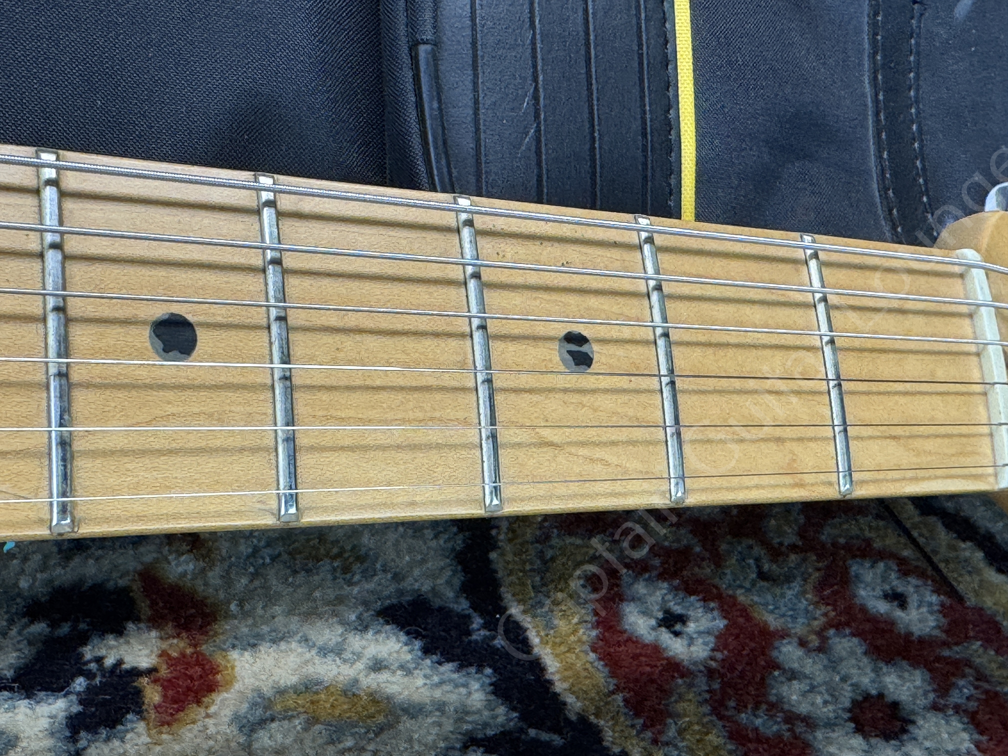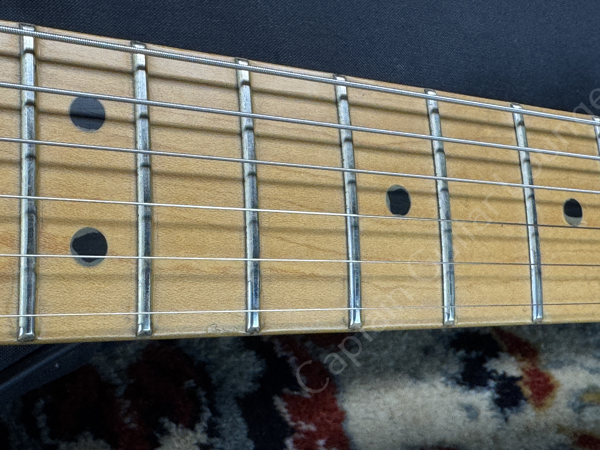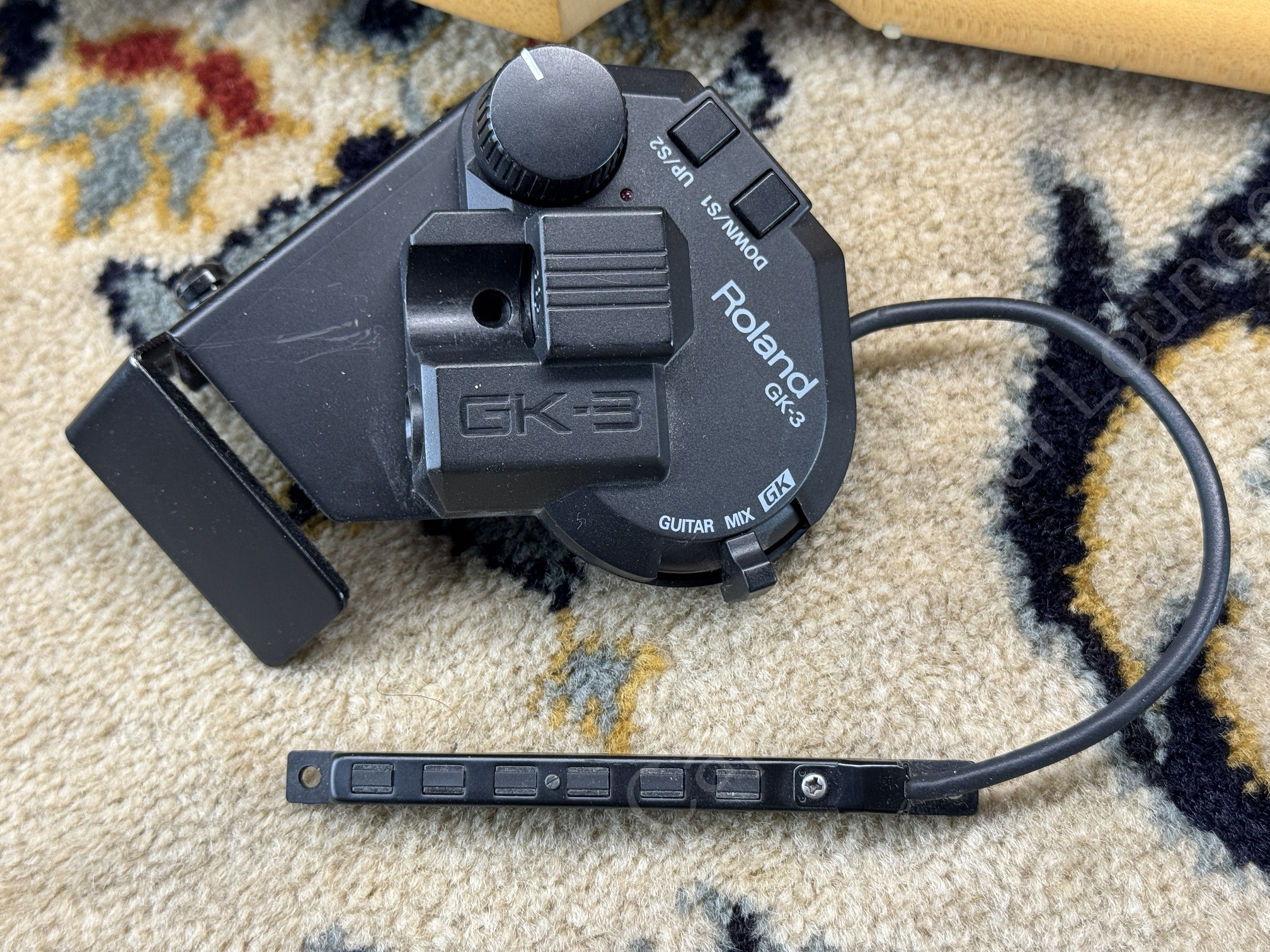There is a routing in the pickguard for a Roland GK-3 MIDI system (included), as well as two small screw holes in the top.