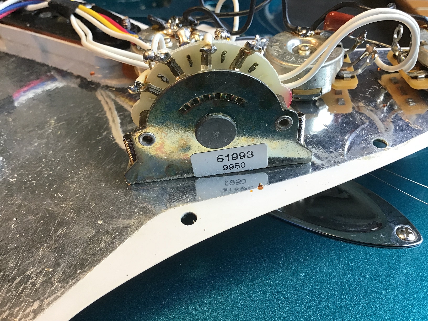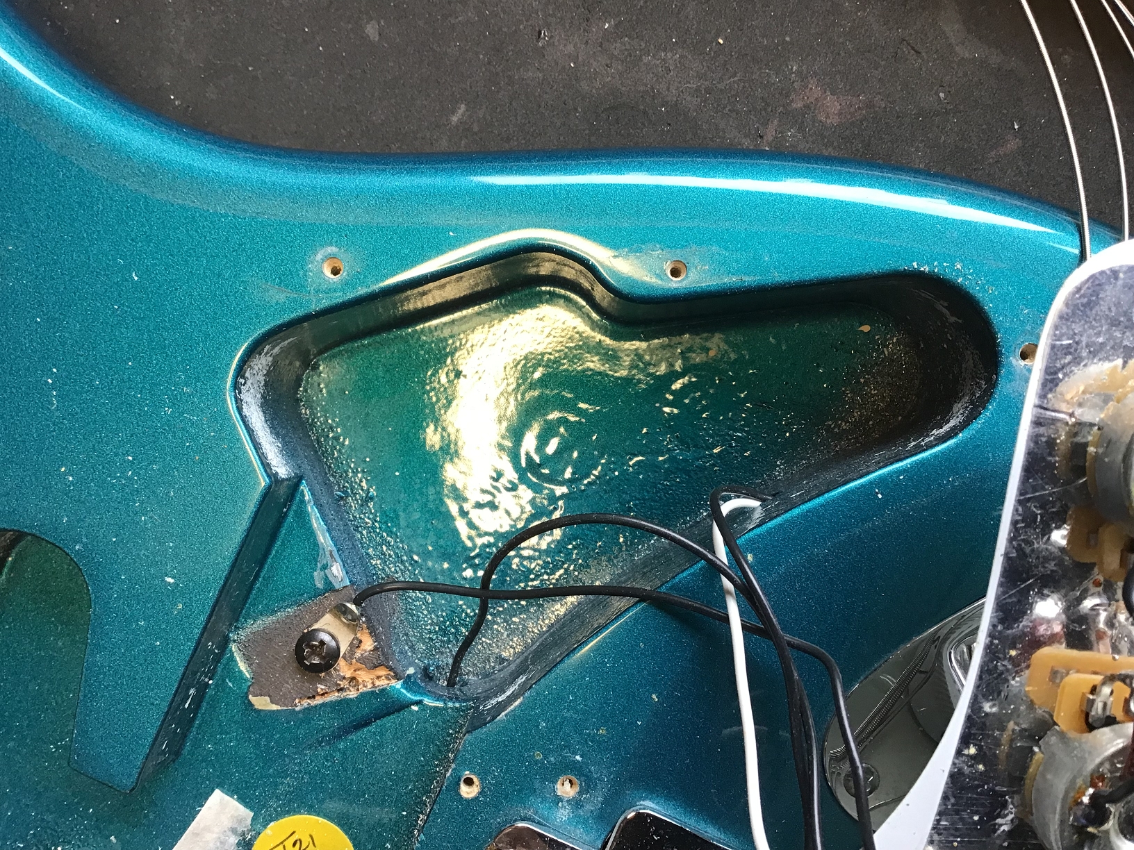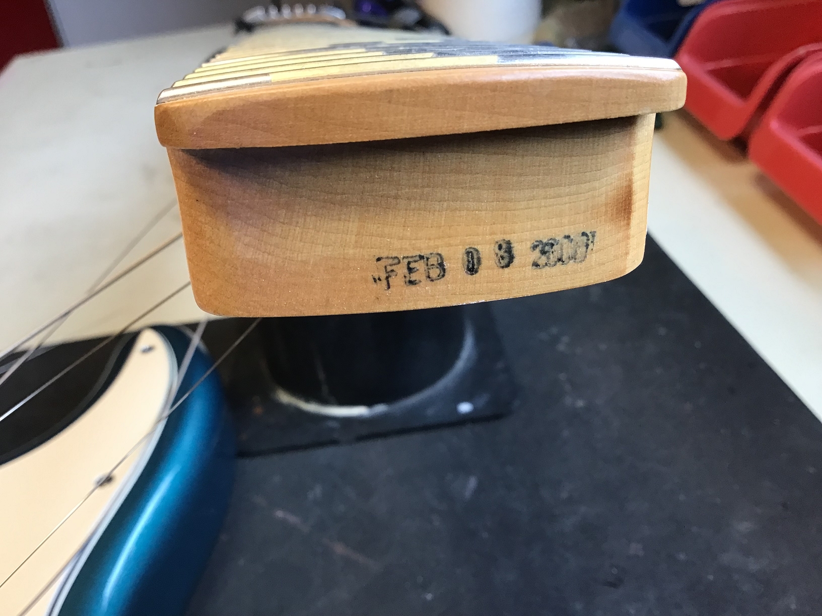 There is a routing in the pickguard for a Roland GK-3 MIDI system (included), as well as two small screw holes in the top.