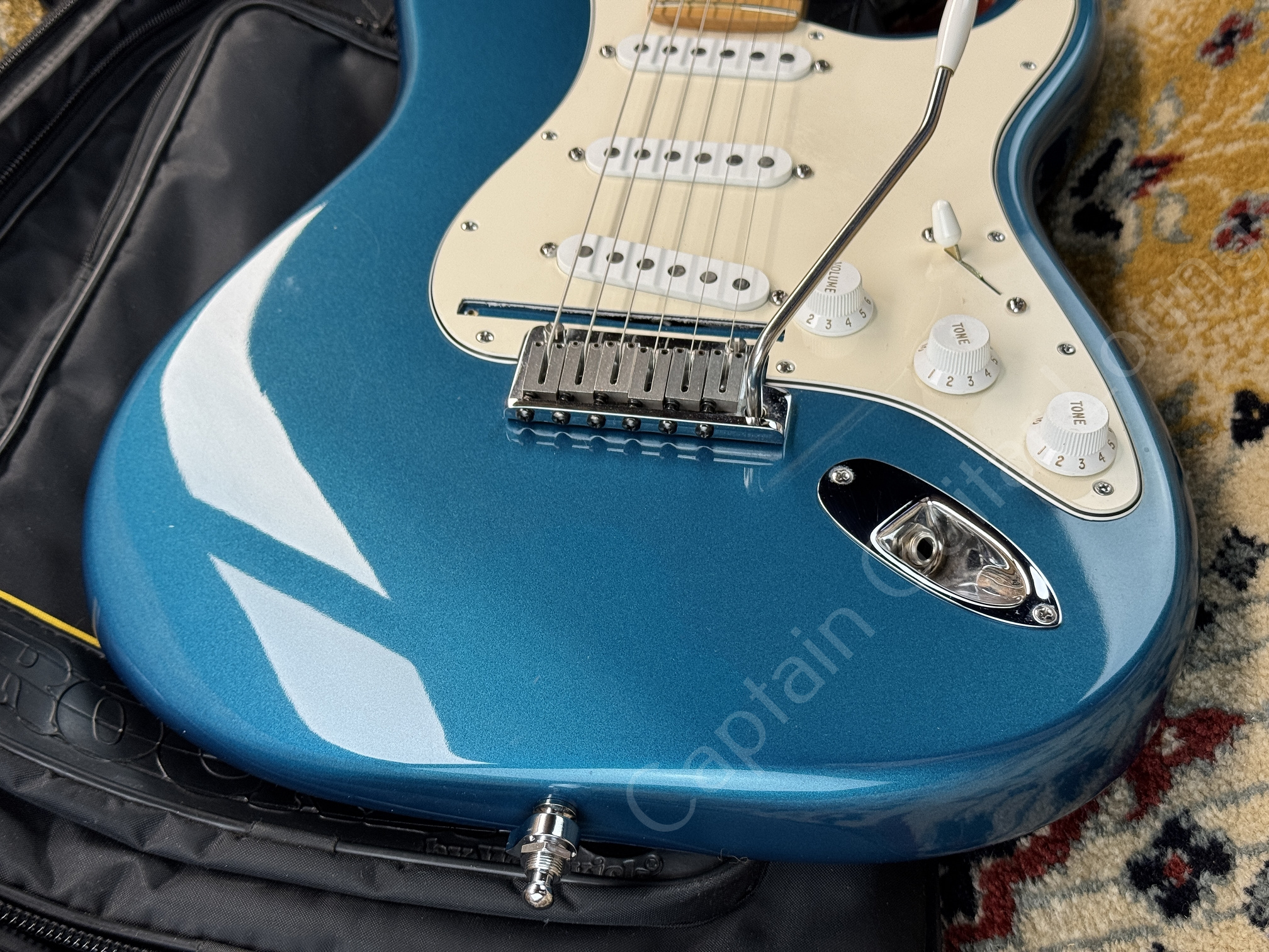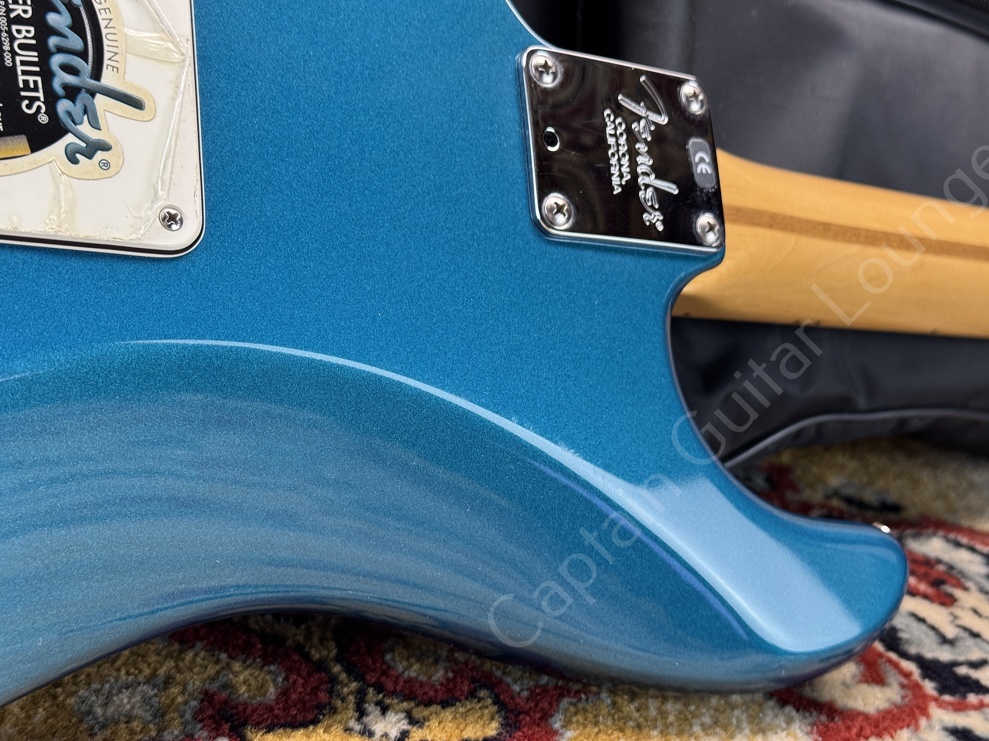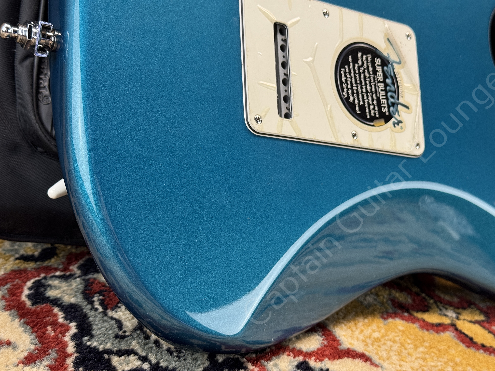 This 2000 American Standard Strat comes in the rarely seen Aqua Marine Metallic - a finish that shimmers between blue and petrol depending on the light.