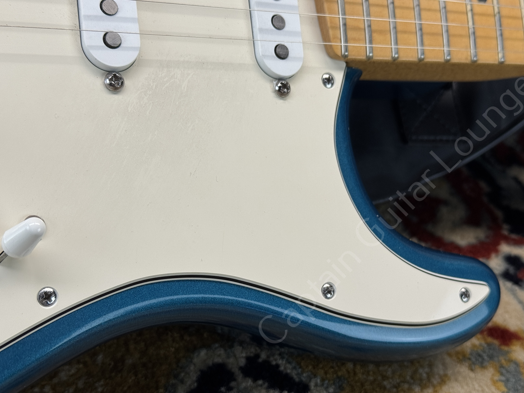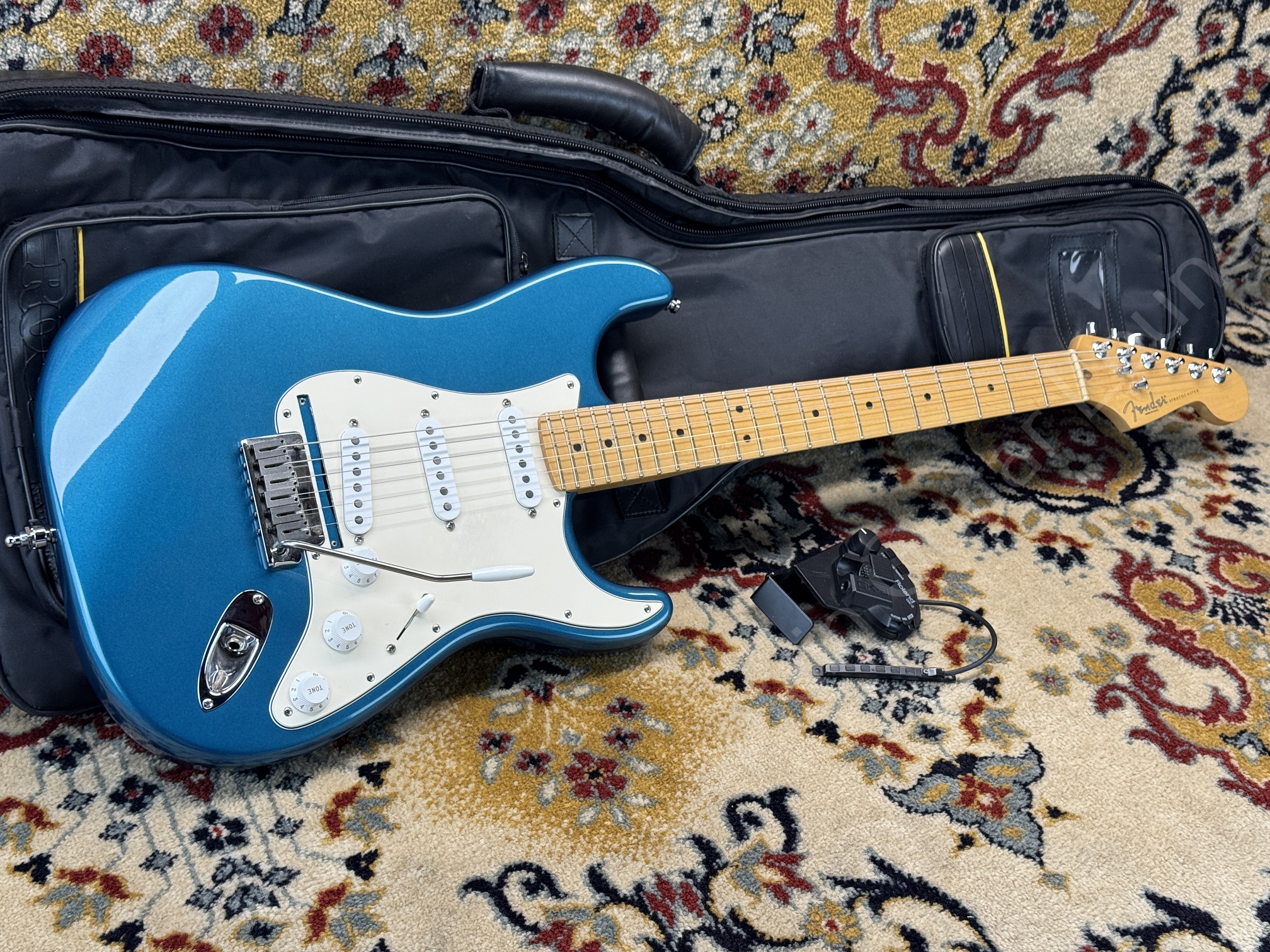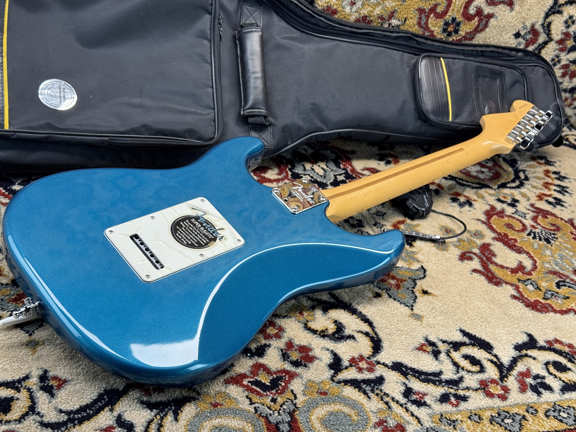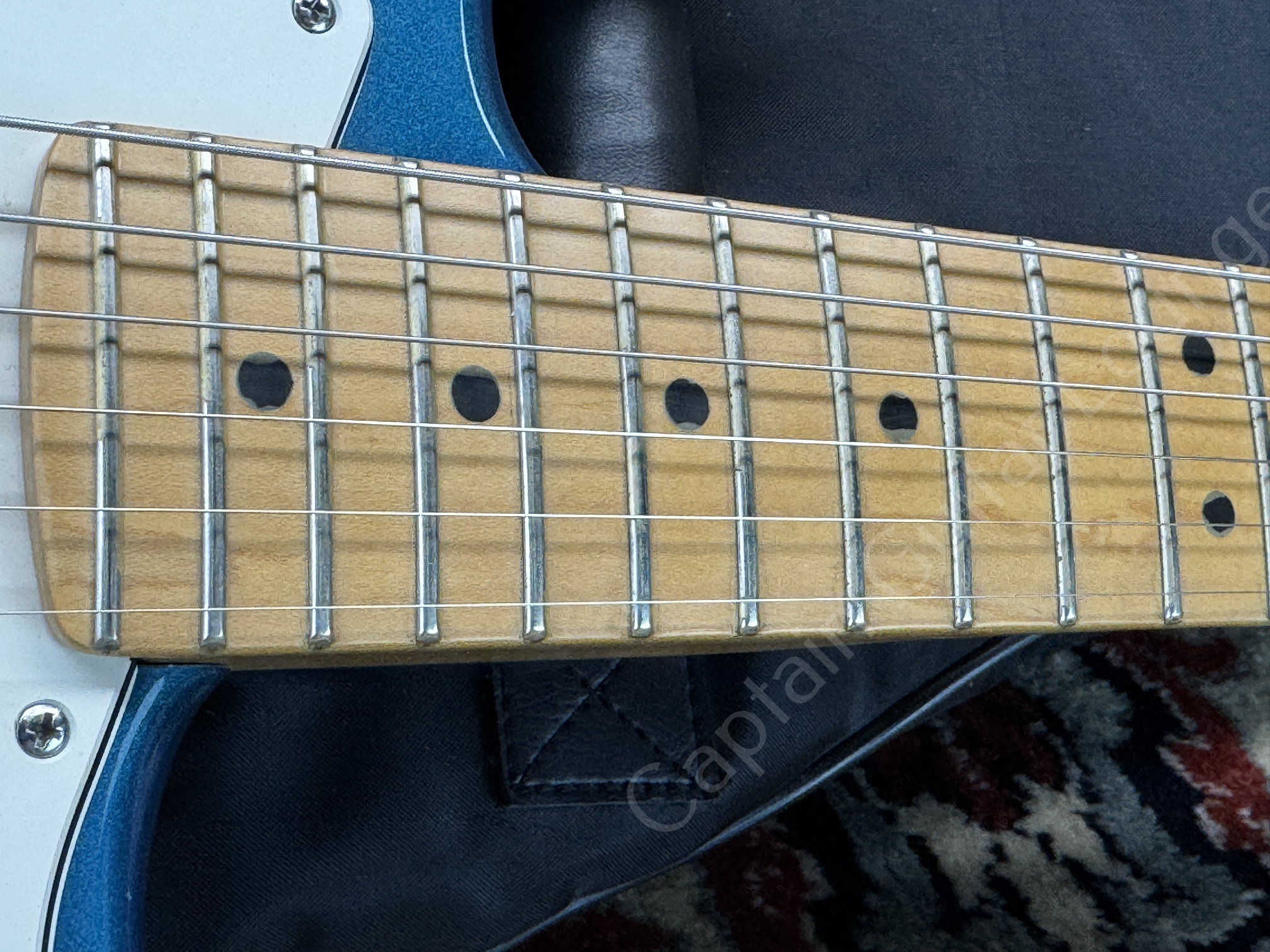 This 2000 American Standard Strat comes in the rarely seen Aqua Marine Metallic - a finish that shimmers between blue and petrol depending on the light.
