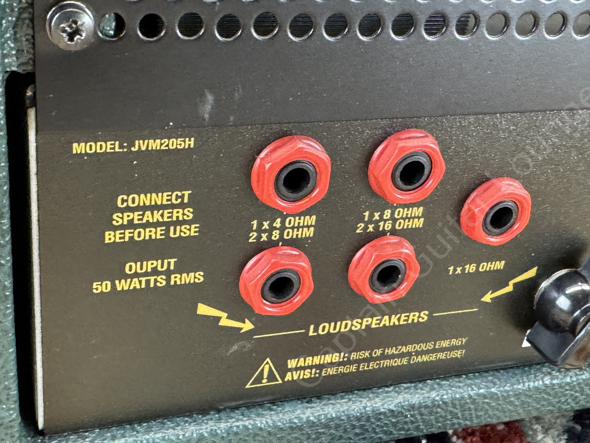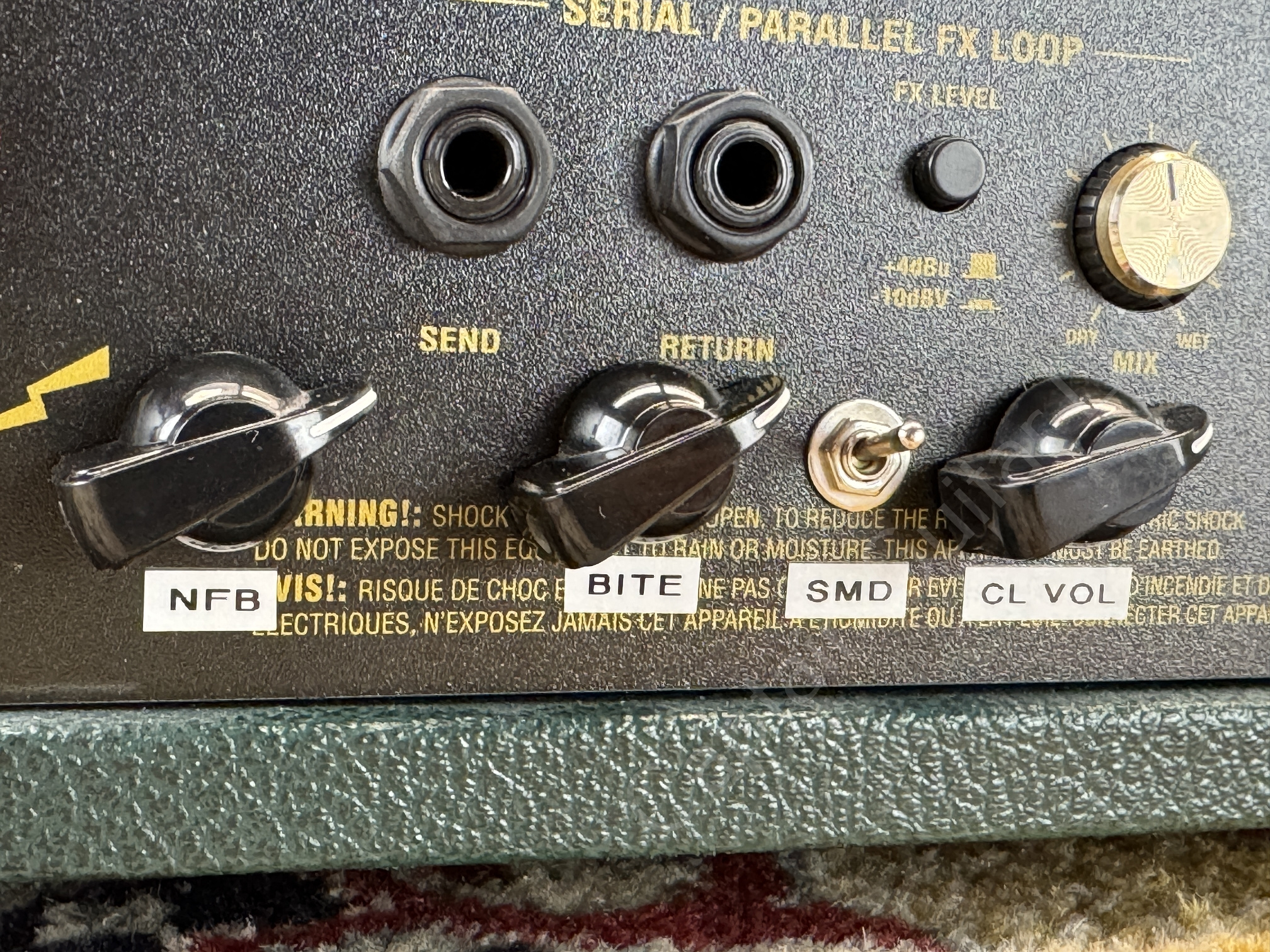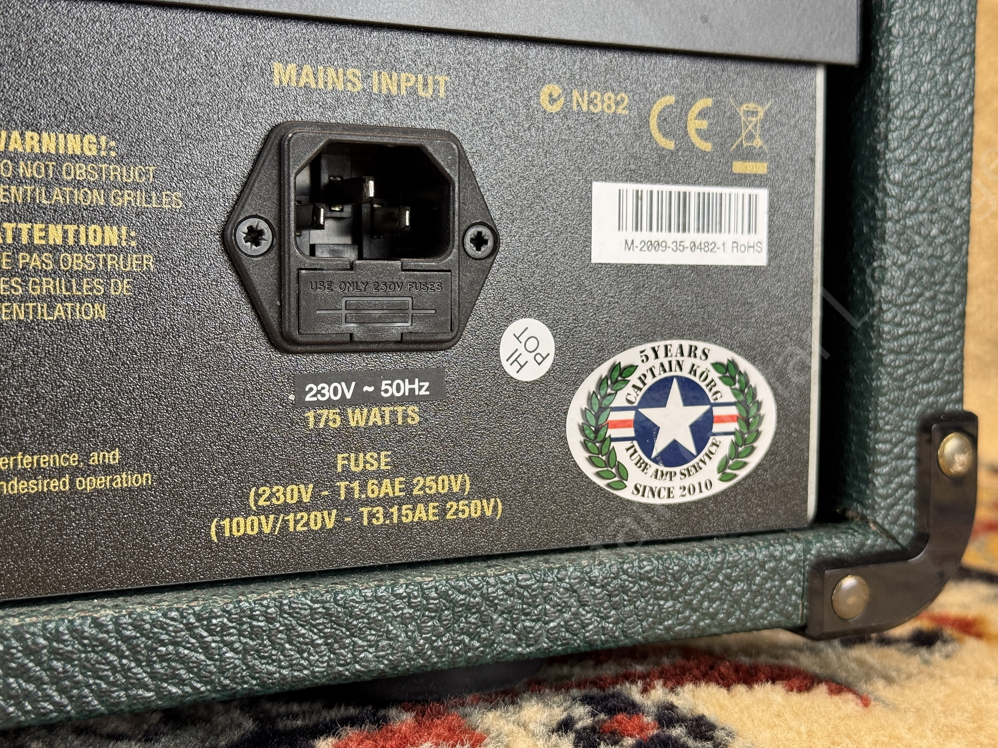 The amp has been technically overhauled: Power switch replaced, new matched TAD E34L-JJ power amp tubes, and V2 & V3 TAD ECC83-JJ (RT003) provide reliable performance and fresh tone. There is a slight mains transformer hum in the device, but of course this is not audible in the output.