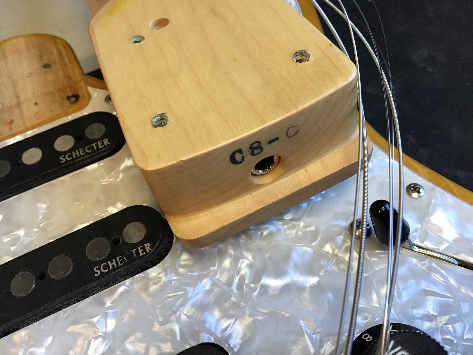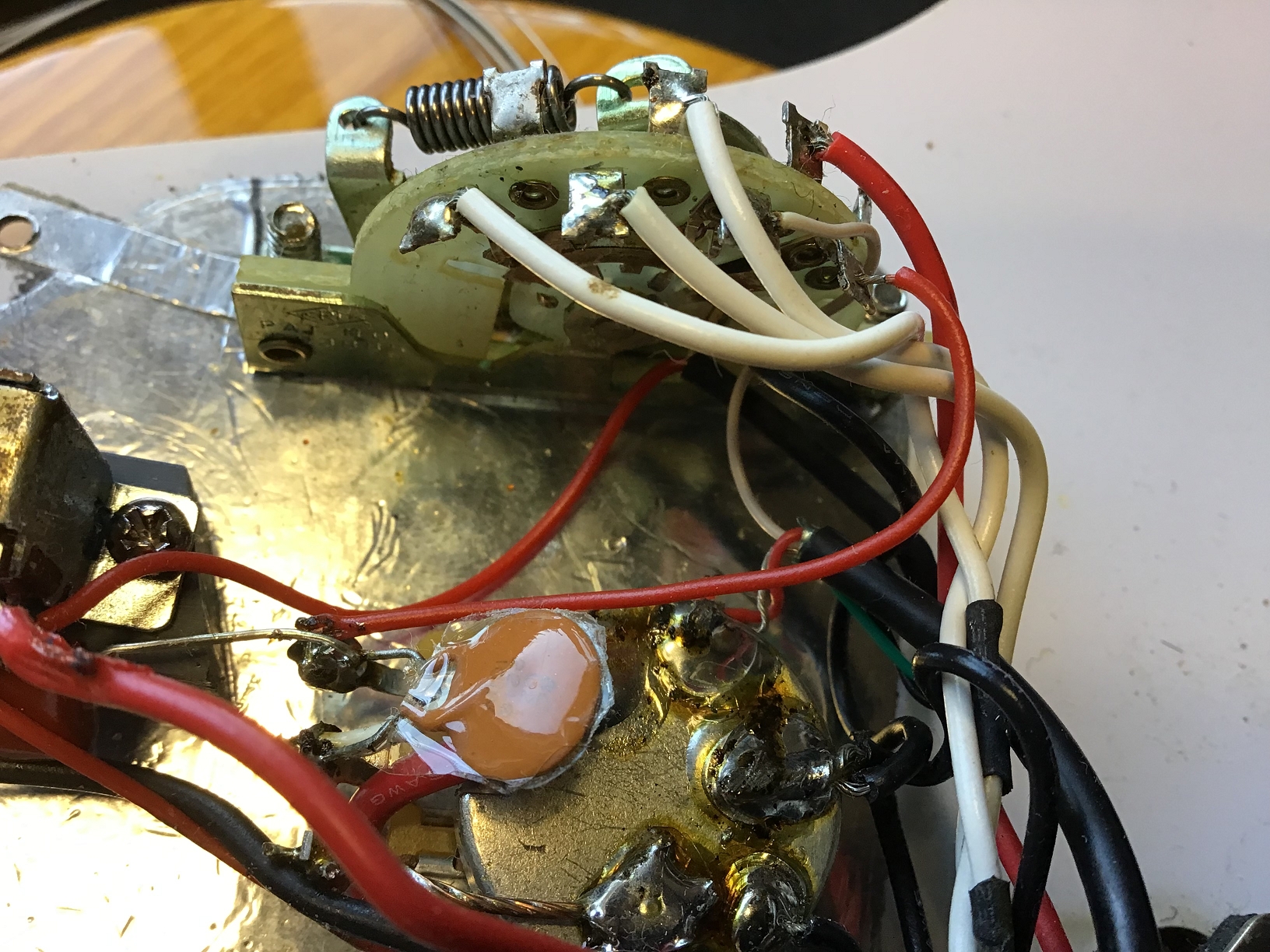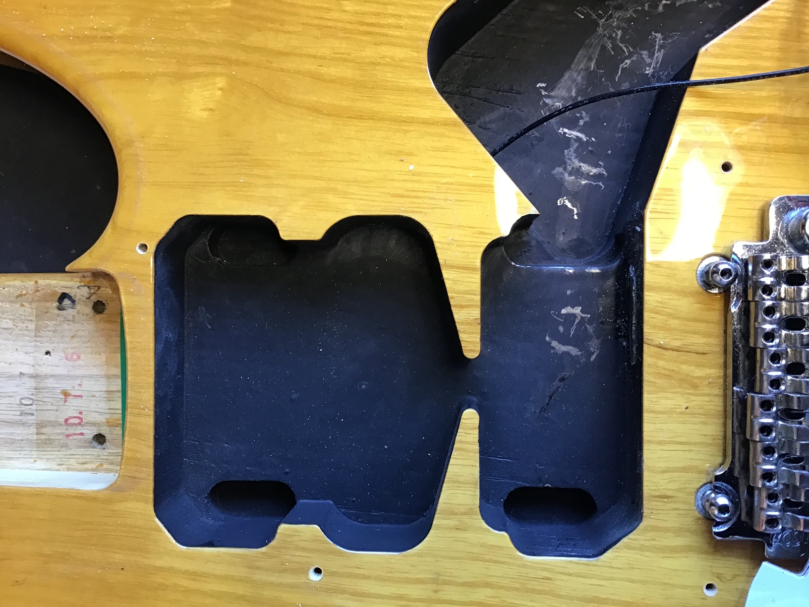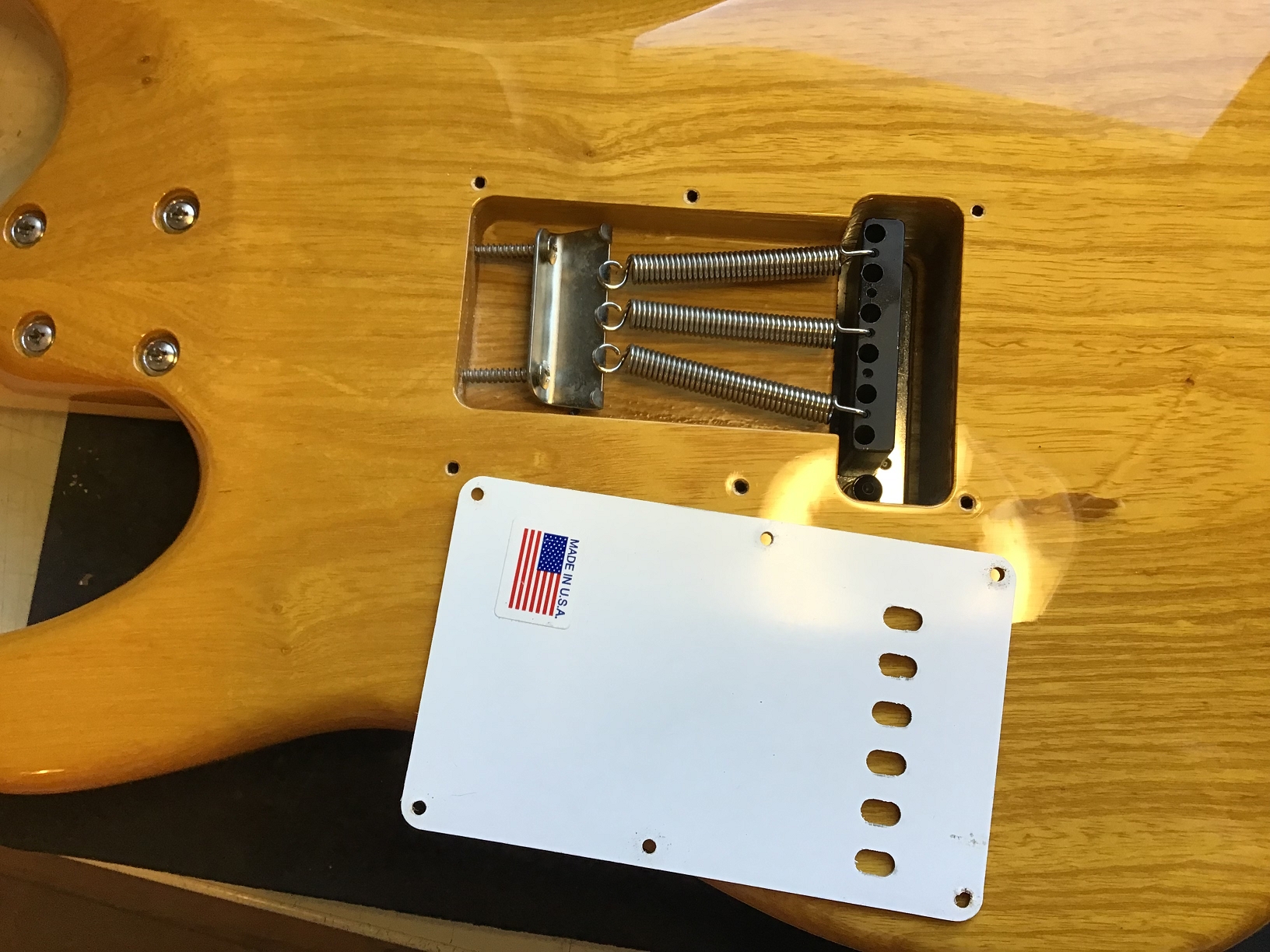 - Tremolo cover (backplate) and screws probably not original