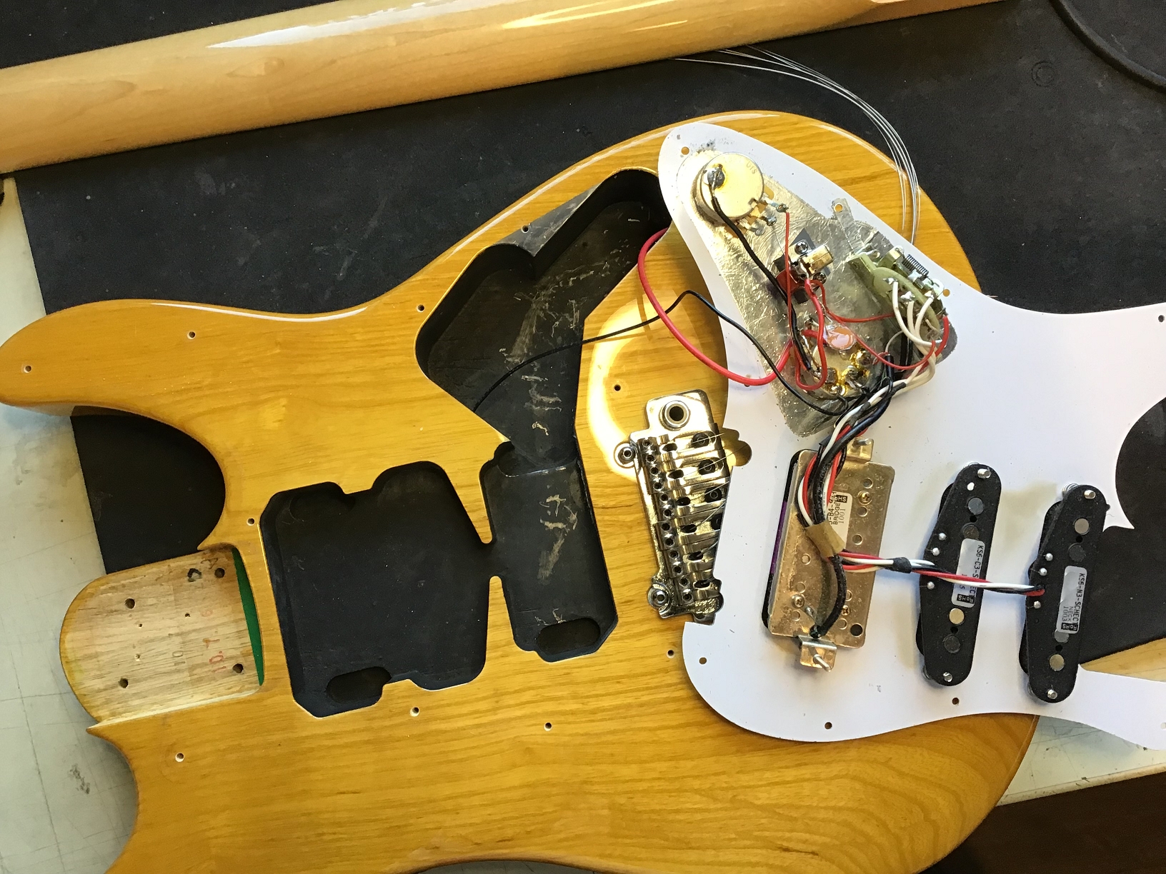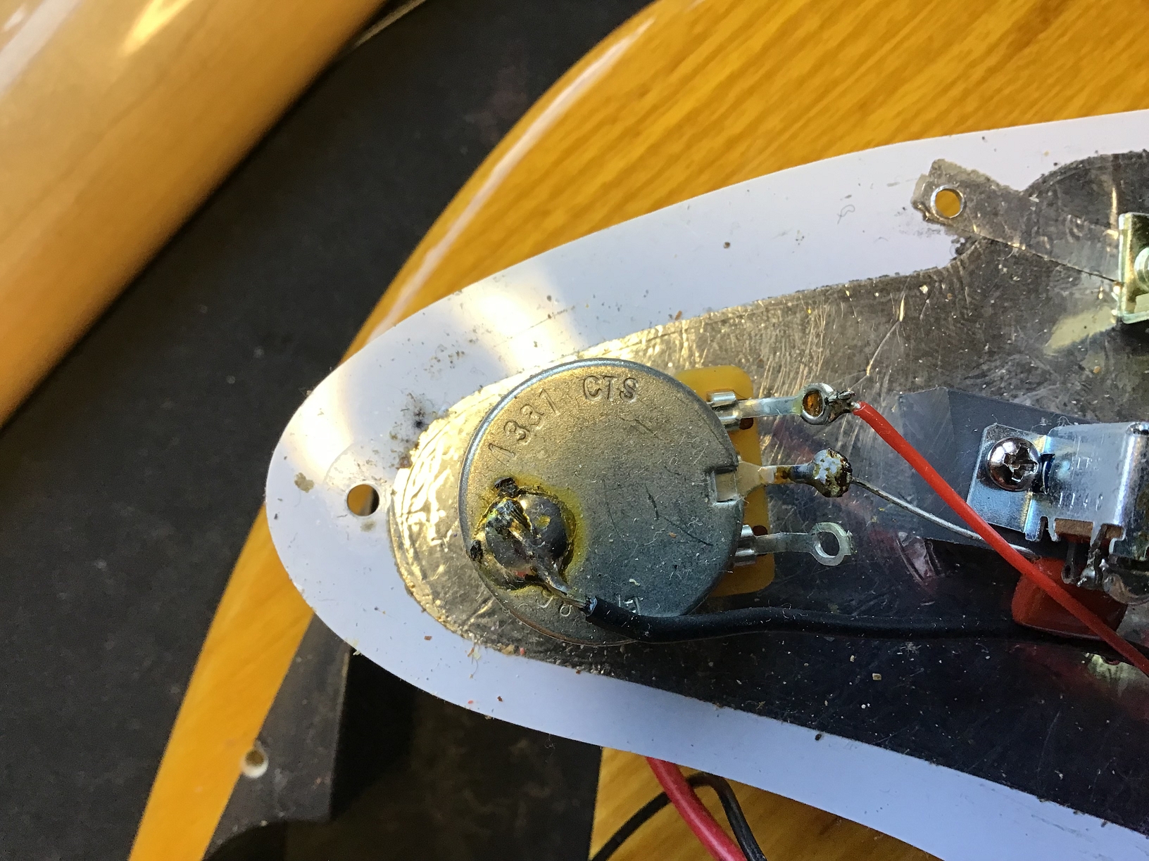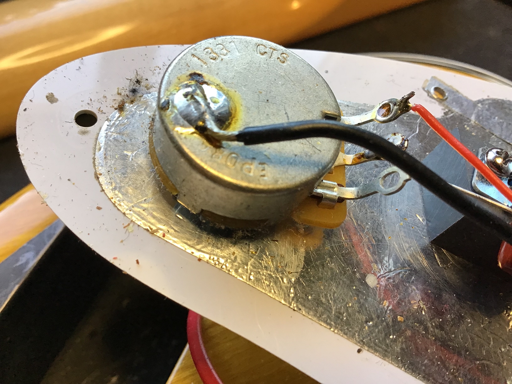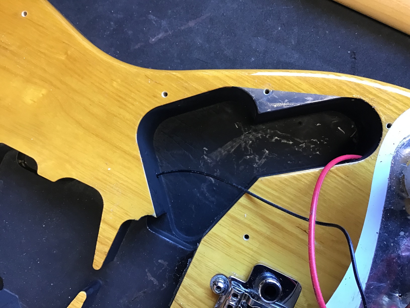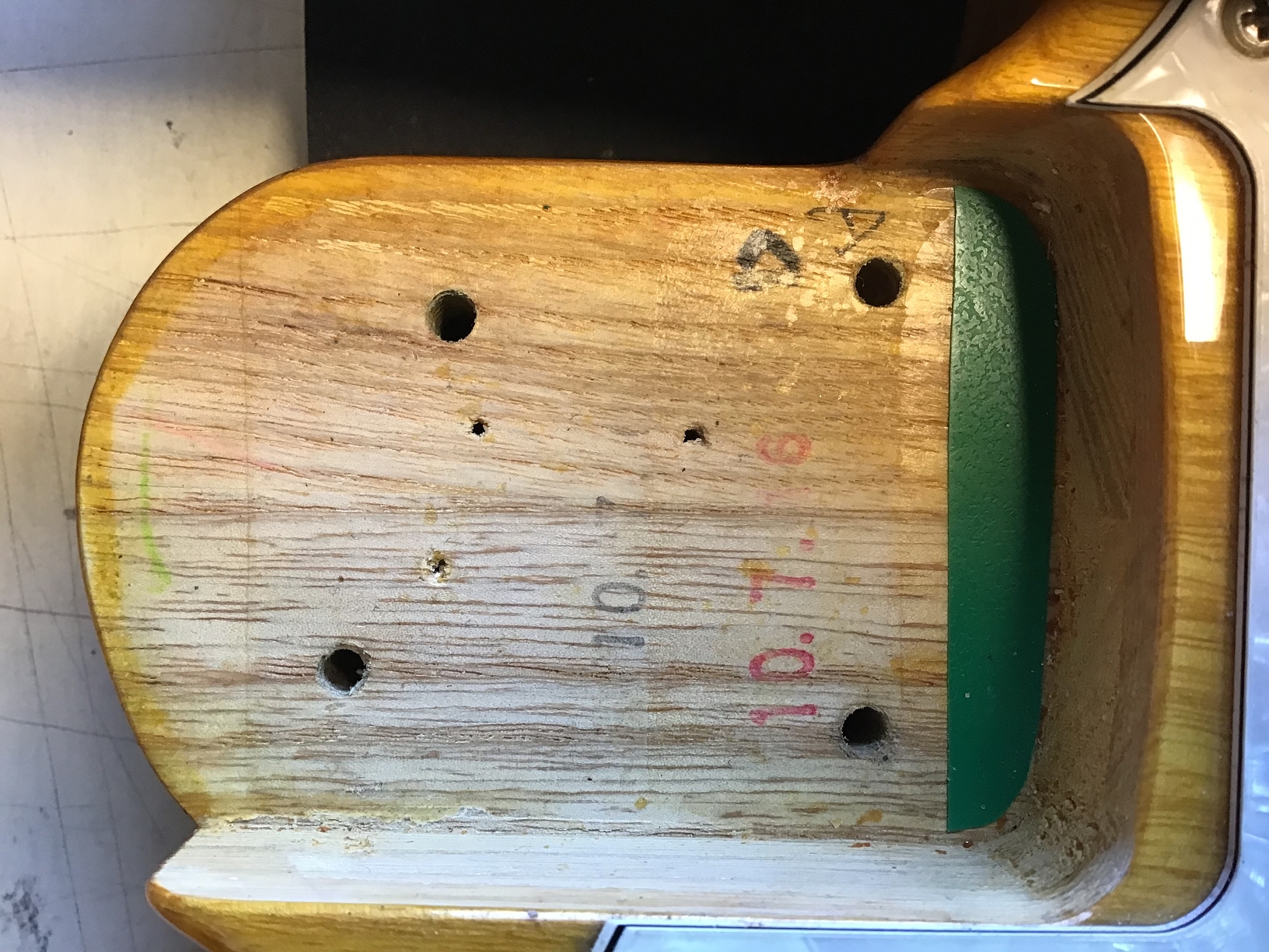 - Tremolo cover (backplate) and screws probably not original