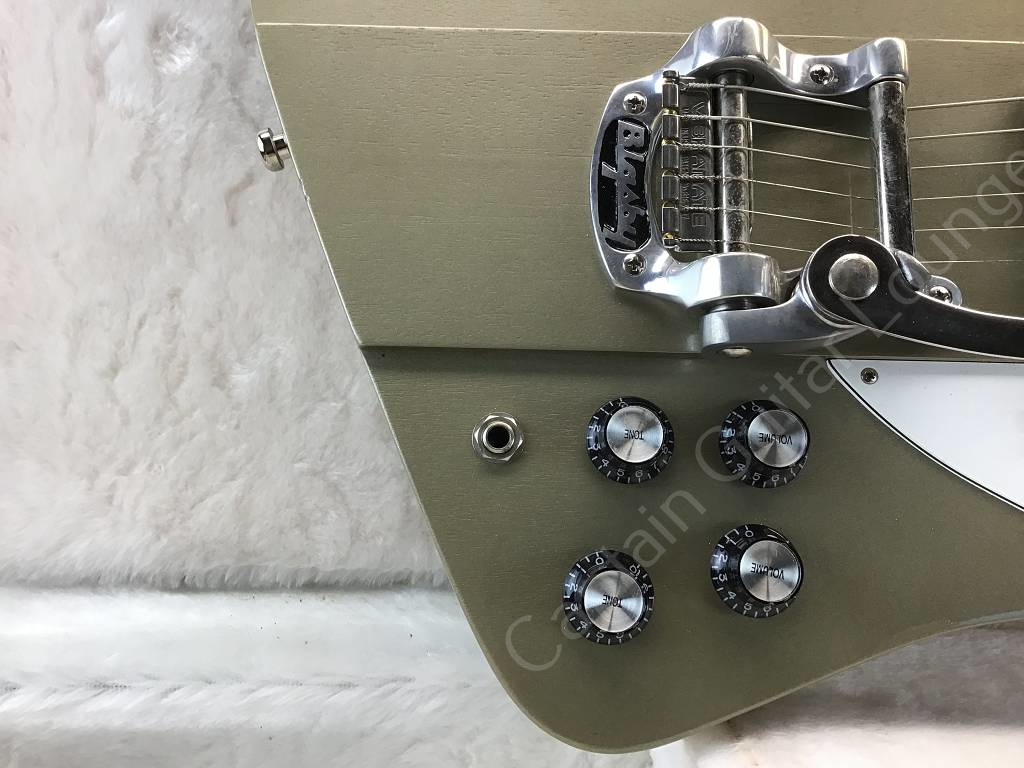 A non-reverse body with Gold Mist Poly finish, which was only available for this guitar, gives it personality. A Bigsby vibrato with Vibramate spoiler, which makes stringing easier, combined with Steinberger gearless tuners ensures tuning stability.