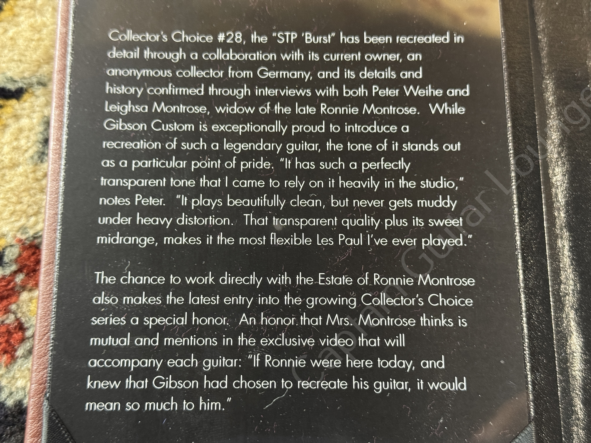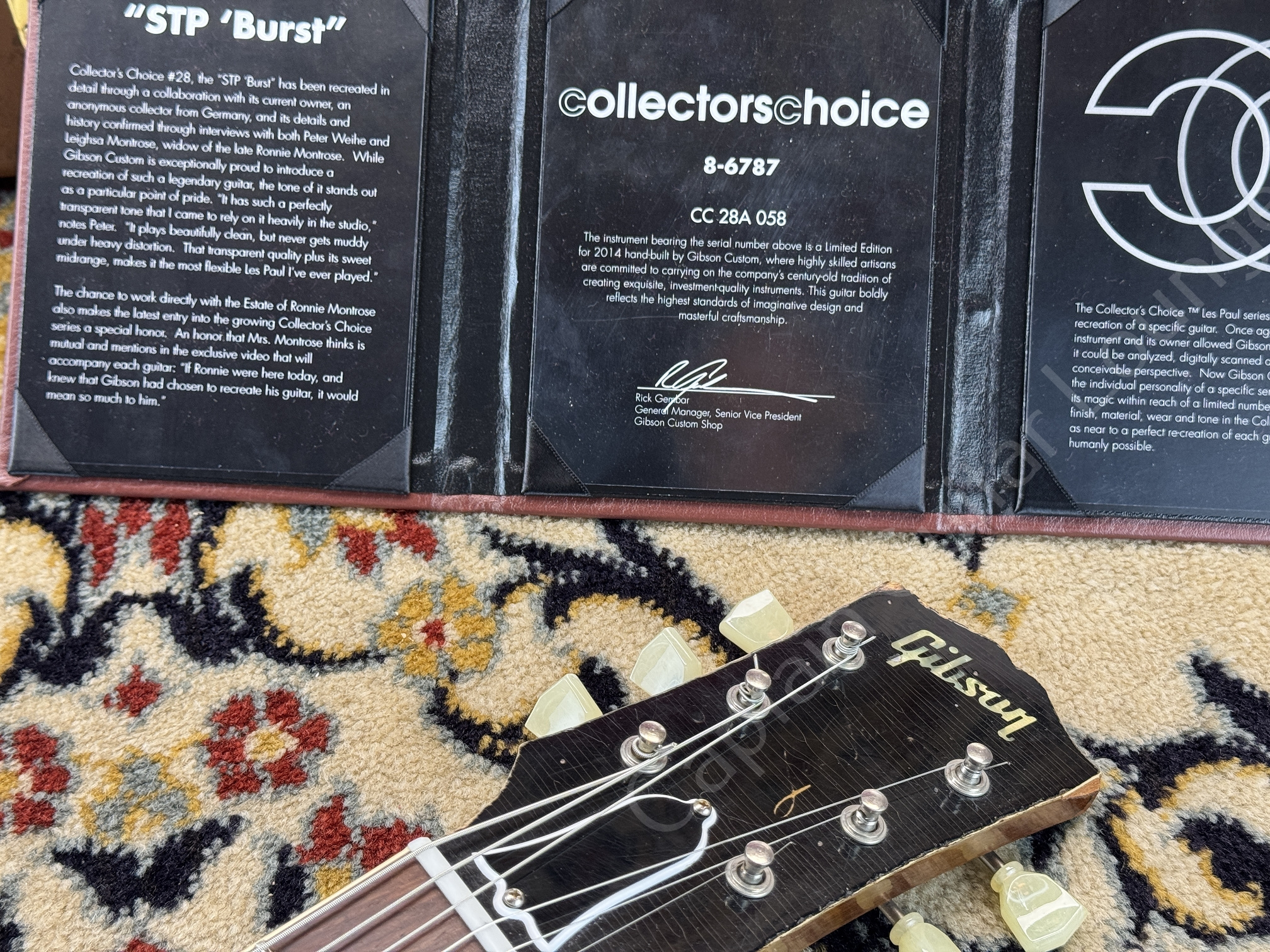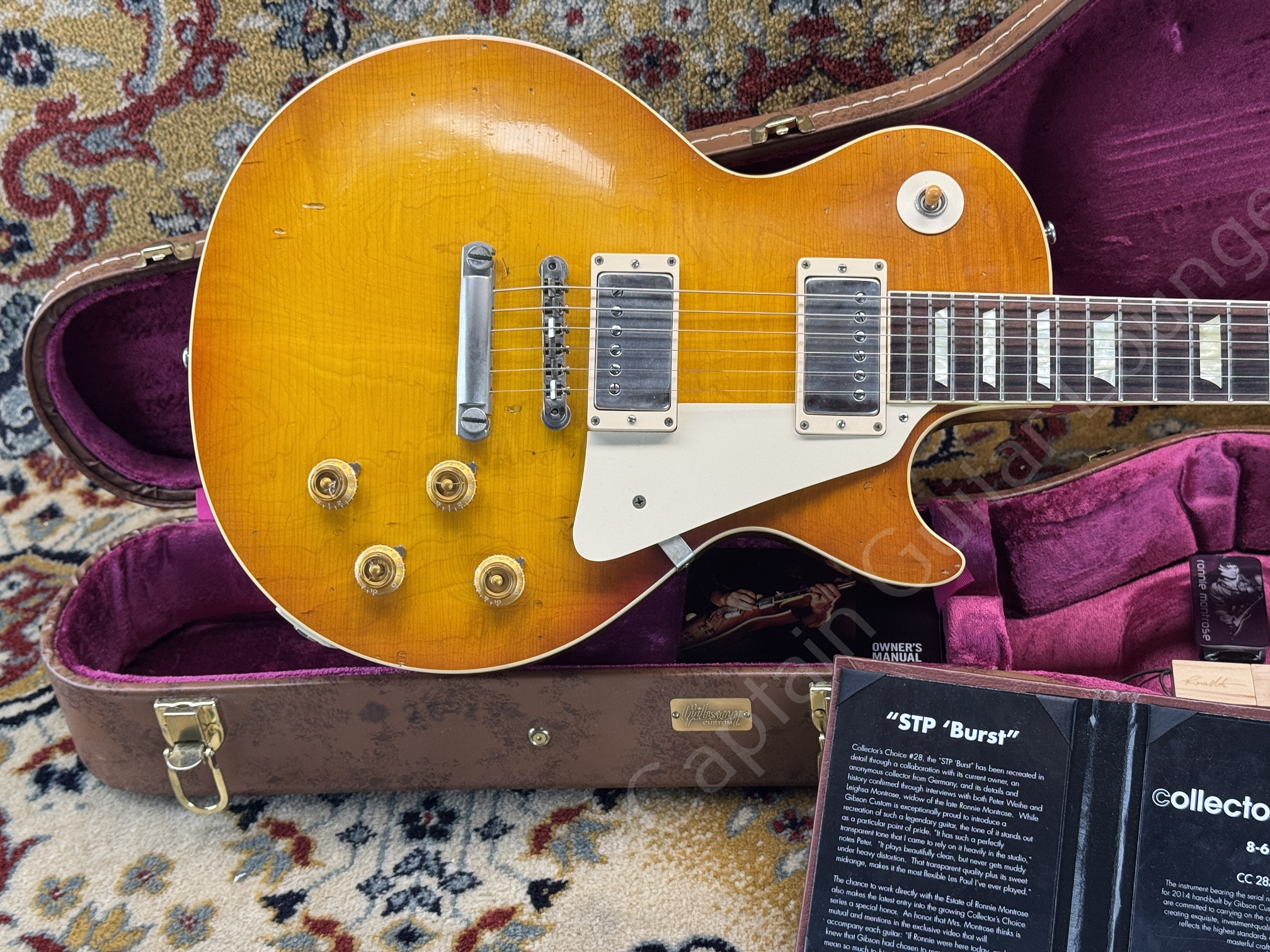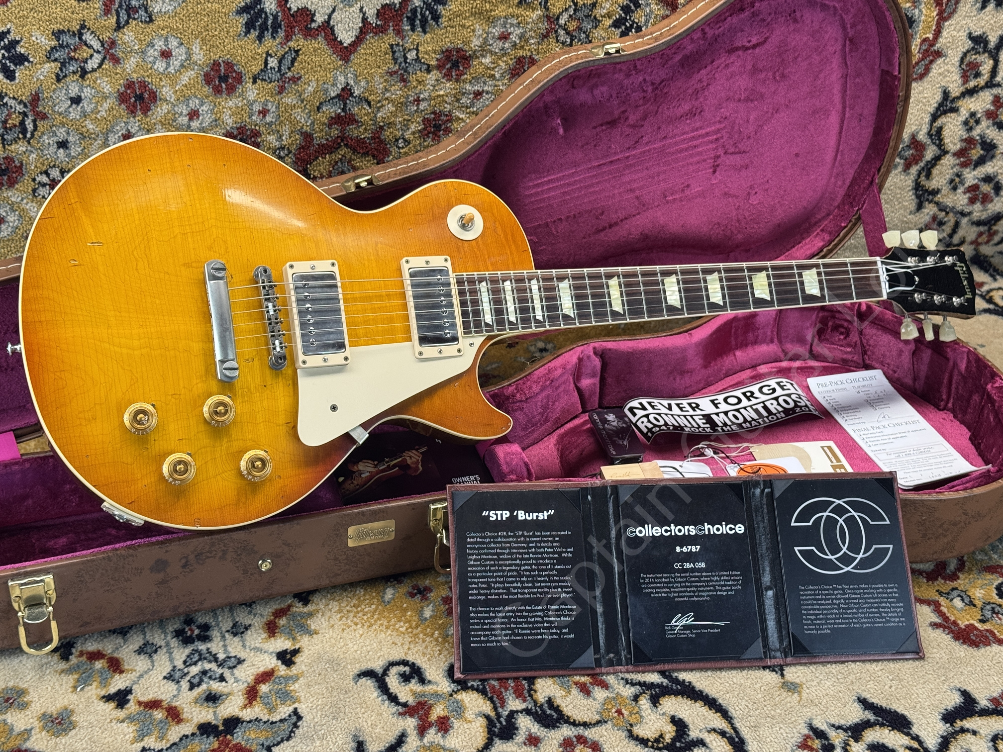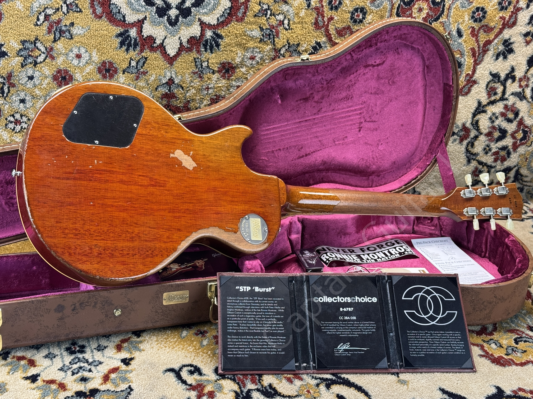 The Gibson Custom Shop Collector's Choice #28A Ronnie Montrose - STP Burst is a strictly limited replica of the legendary 1958 Les Paul Standard with the serial number 8 6787.