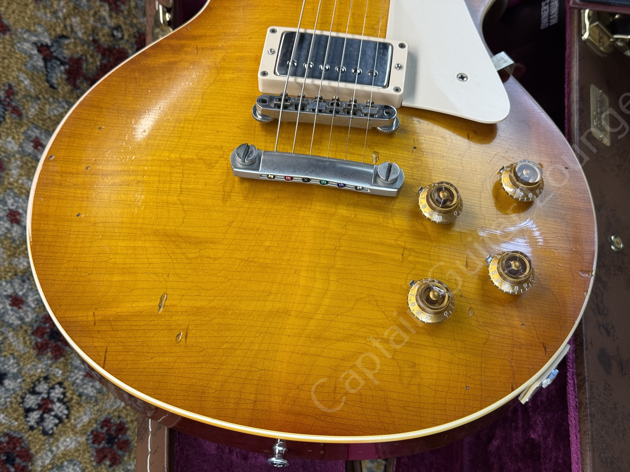 This STP 'Burst was additionally equipped with an individually tuned Peter-Weihe-Kloppmann humbucker set and NOS Bumble Bee capacitors to get even closer to the sound of the historic original. The result is an extremely assertive, powerful vintage tone with exceptional sustain - a real collector's and player's guitar.