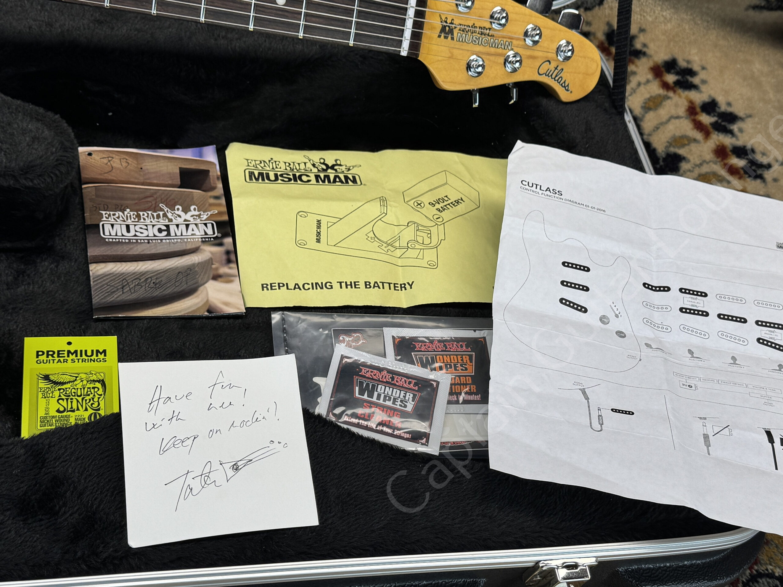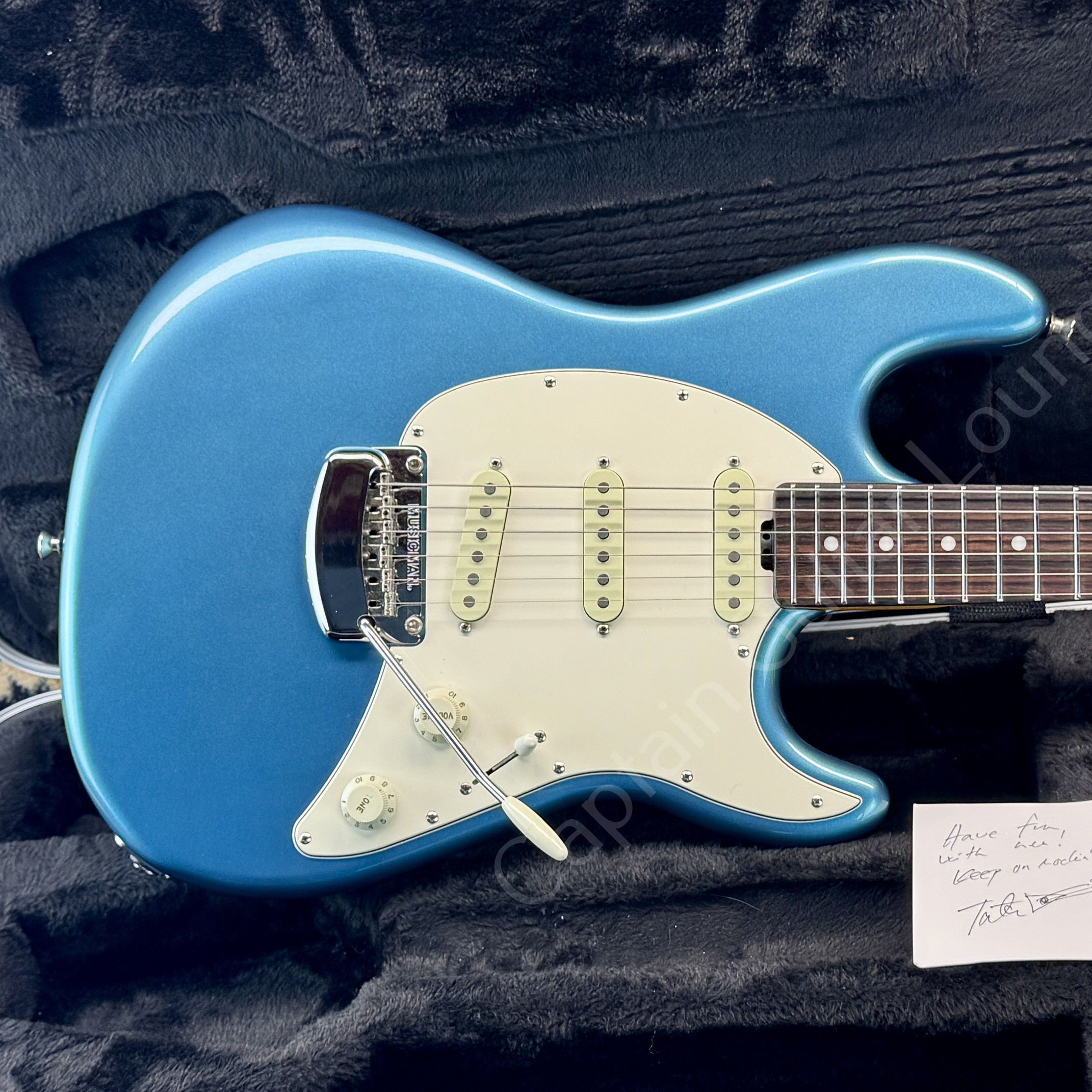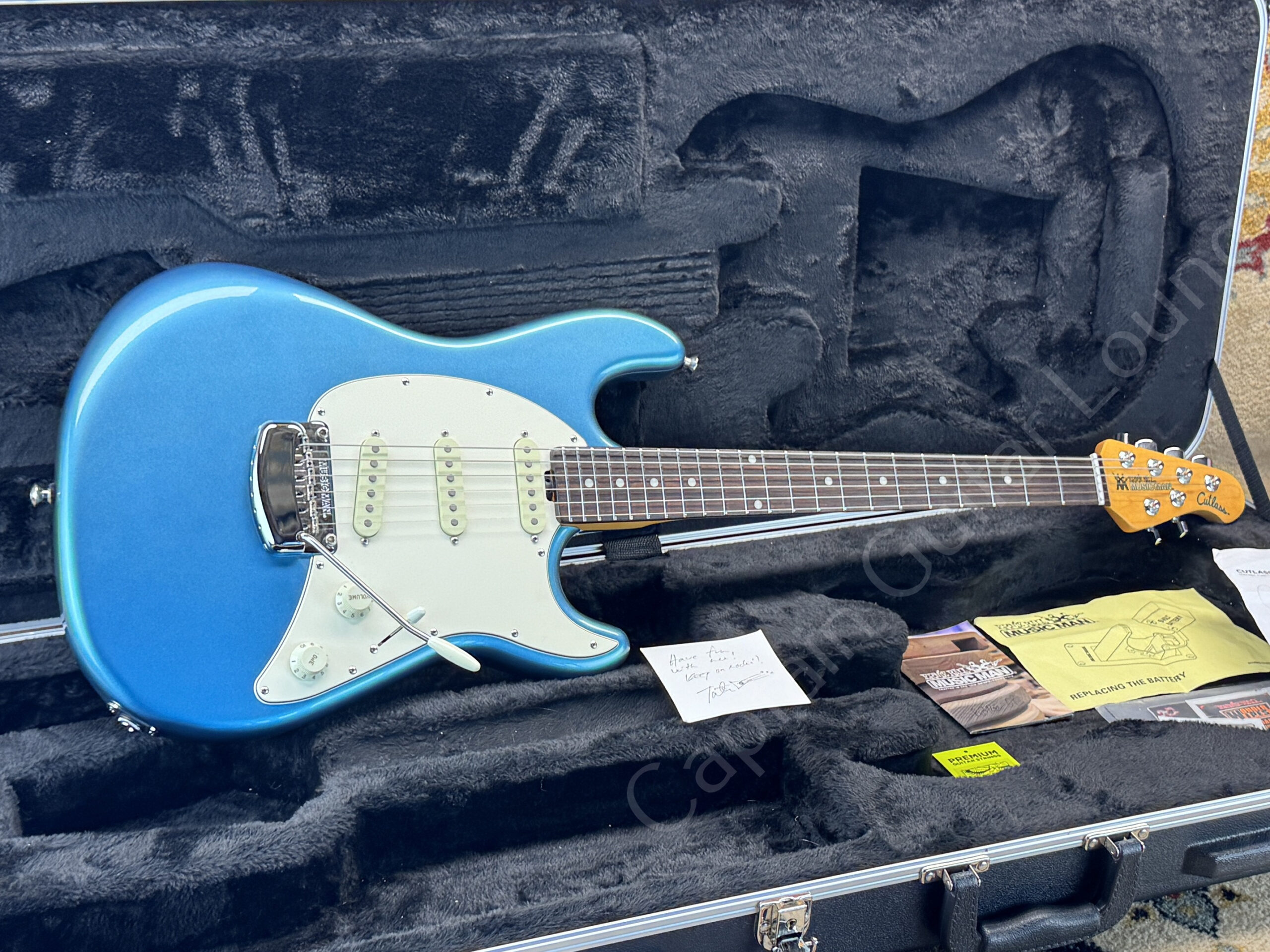 A great Music Man Cutlass in Vintage Turquoise, from a prominent previous owner: This example belonged to Tatu Kemppainen, from