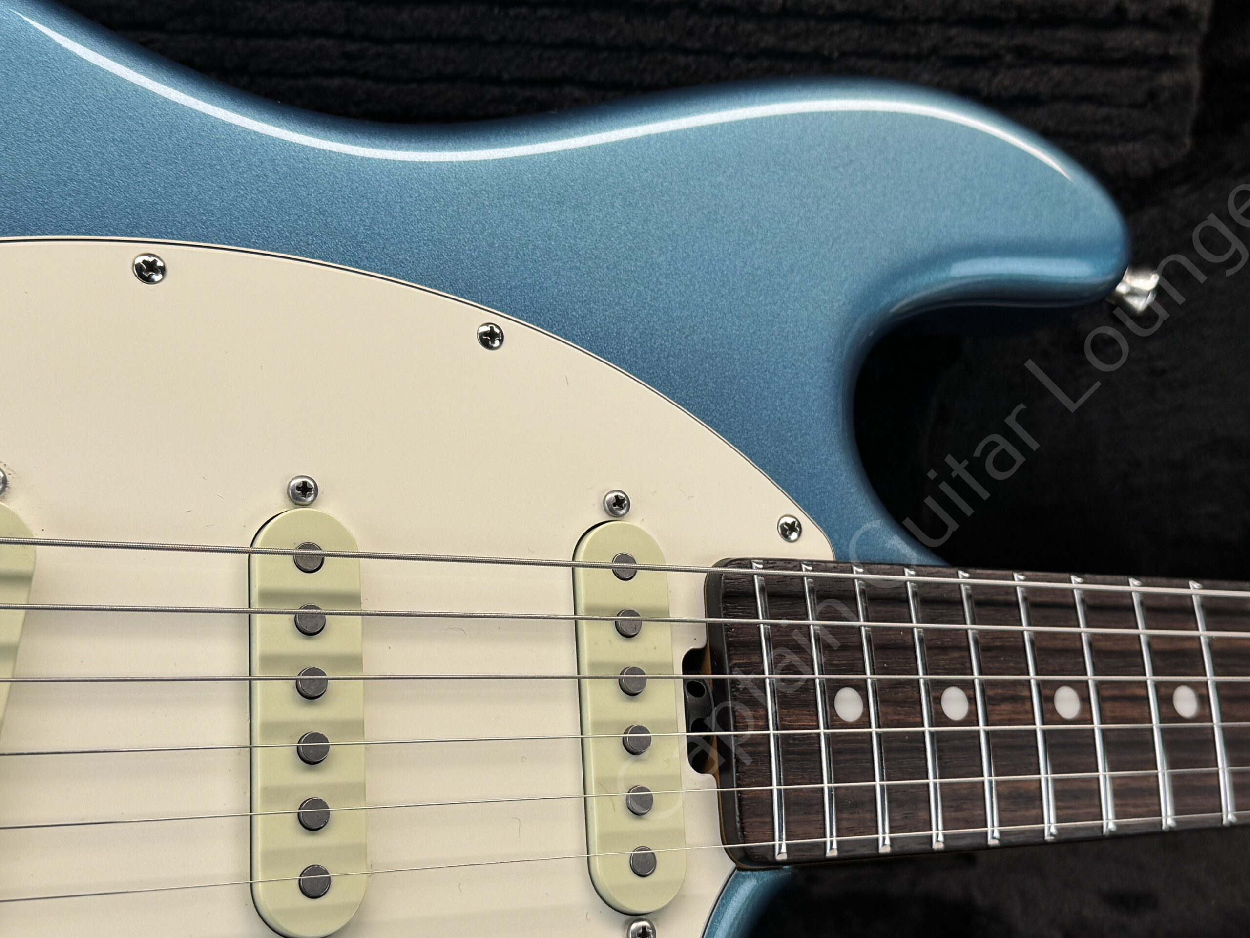 The three single coils deliver authentic, glassy S-sounds, while the modern electronics minimize hum and guarantee maximum playing pleasure.