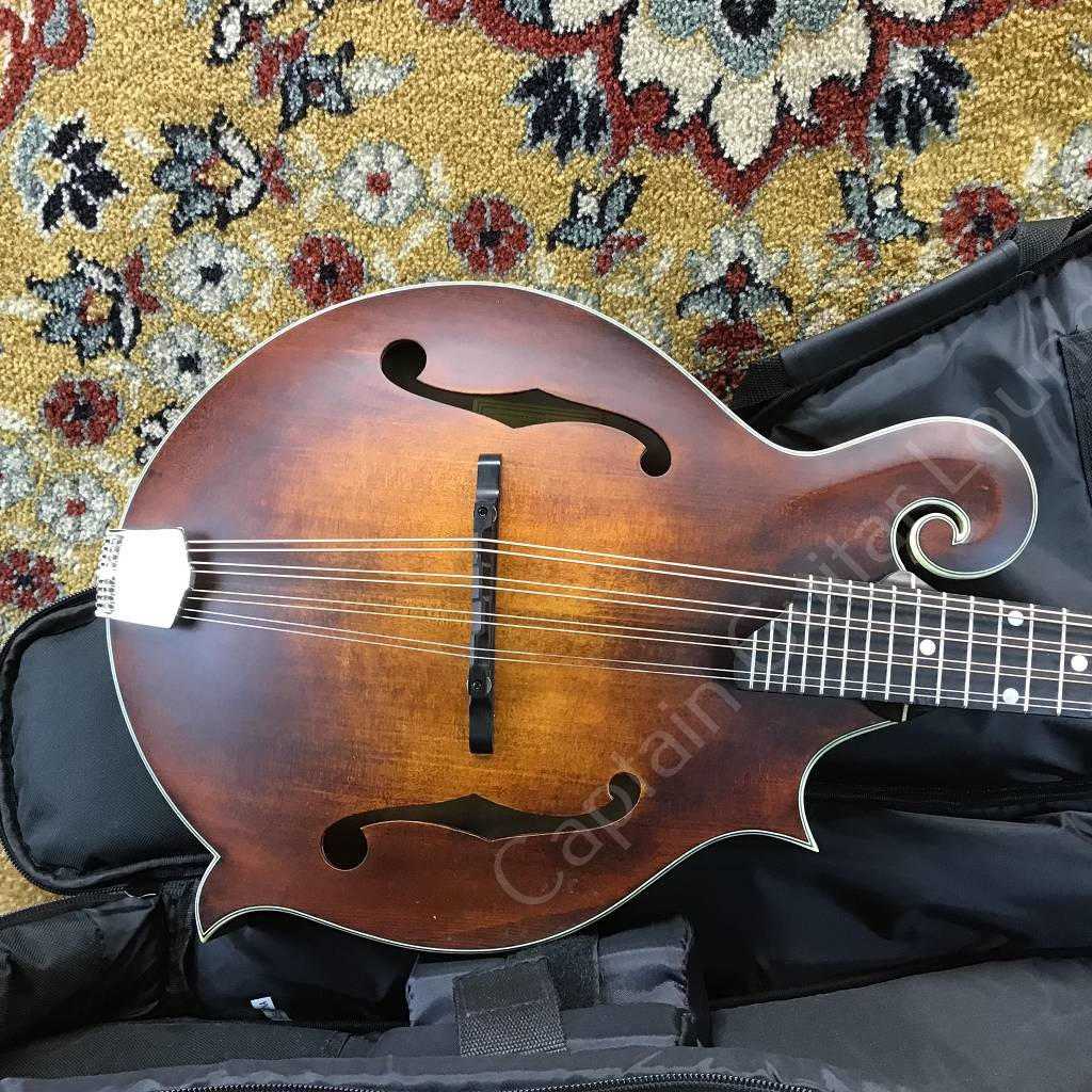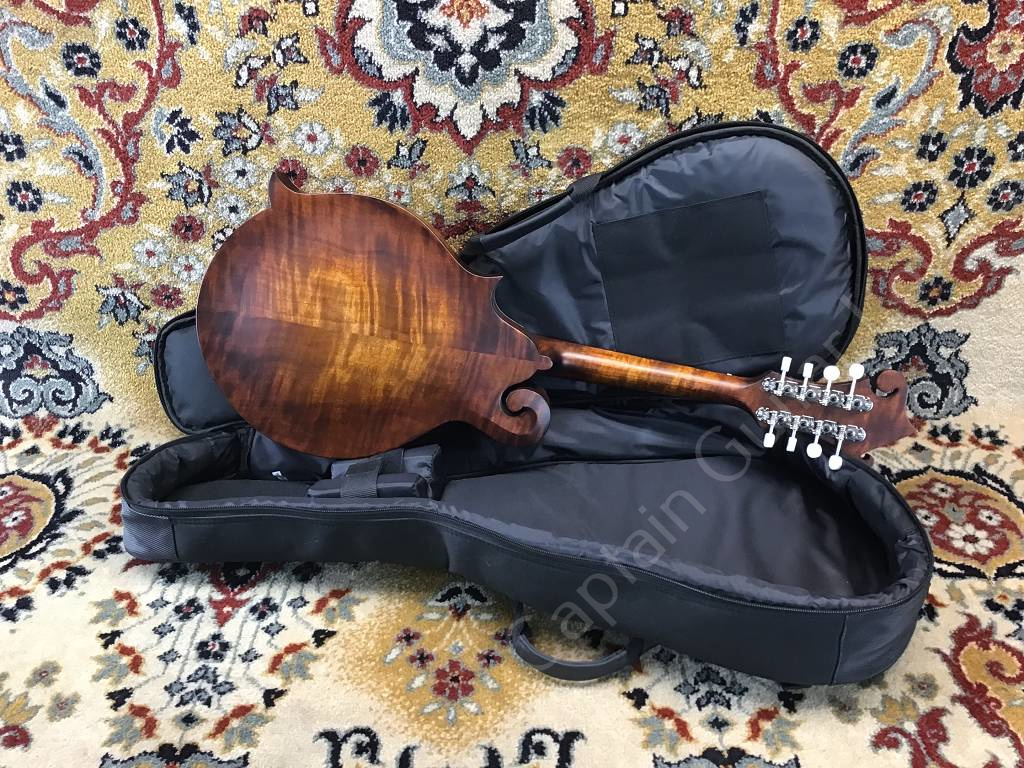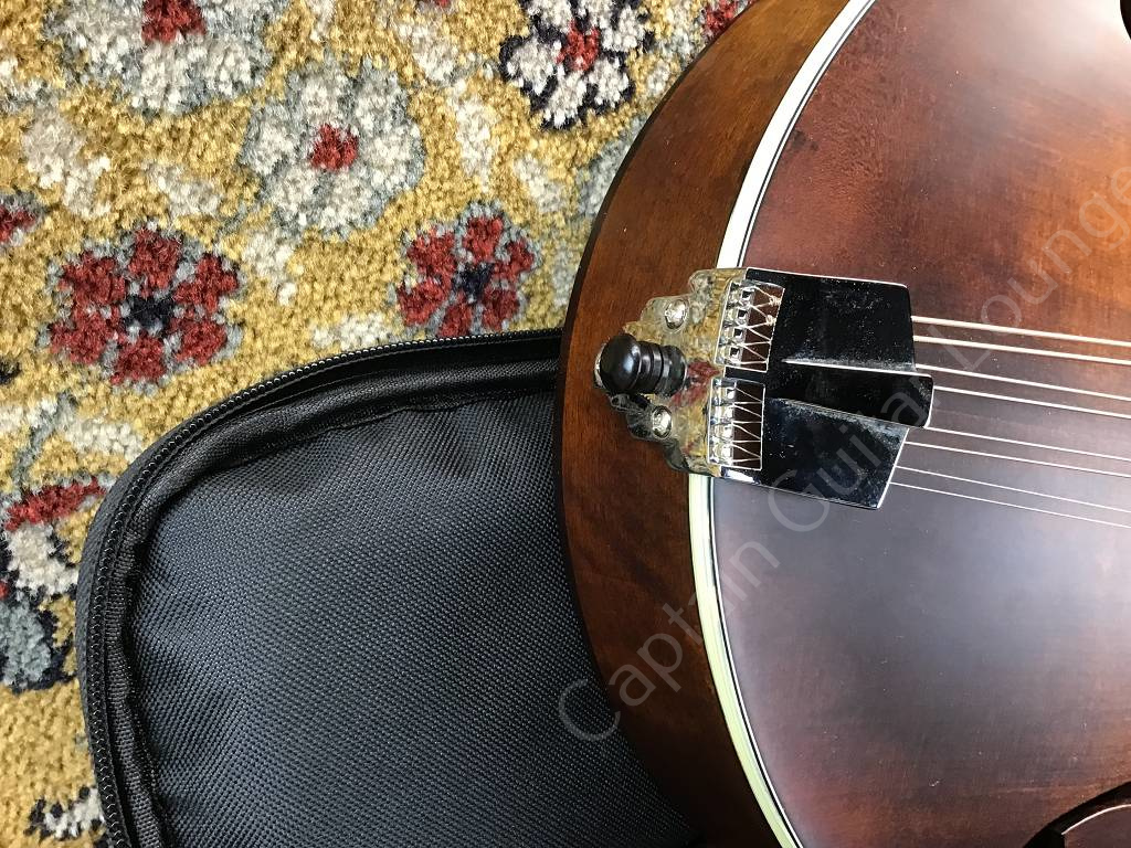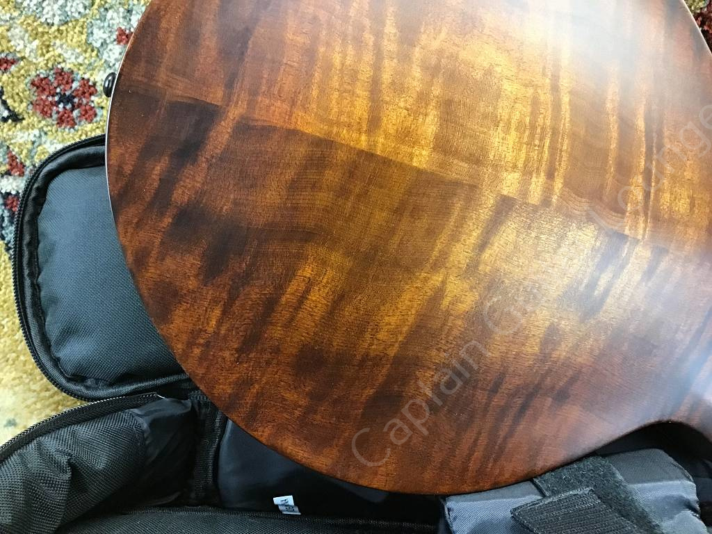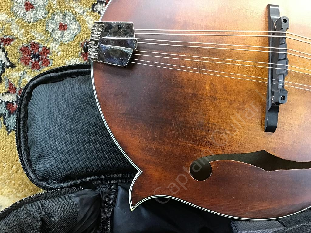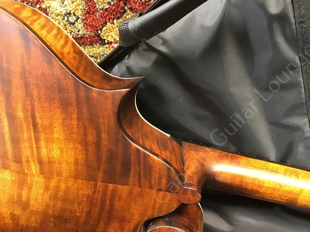 The Eastman MDA315 is a Chinese-made F-style mandola in CGDA tuning. The solid spruce top is combined with grained flamed maple back and sides. The maple neck with a soft V-profile is pleasantly slim and has an ebony fingerboard with a 12″ radius and 23 jumbo frets.