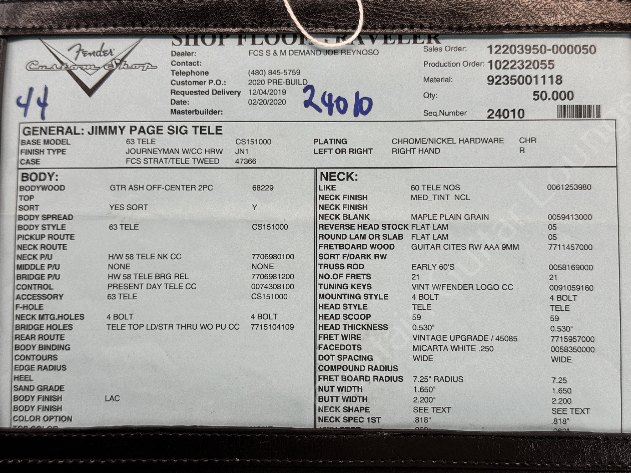 This Jimmy Page Signature Telecaster comes from the first production batch - 1 of 50 - and is therefore one of the earliest examples of this model produced.