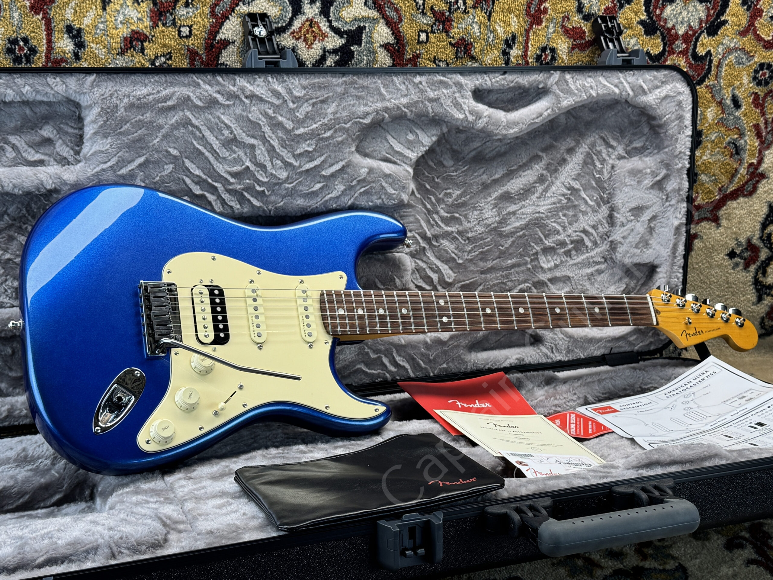 This Fender American Ultra Stratocaster HSS from 2022 comes in an eye-catching Cobra Blue finish and is first-hand.