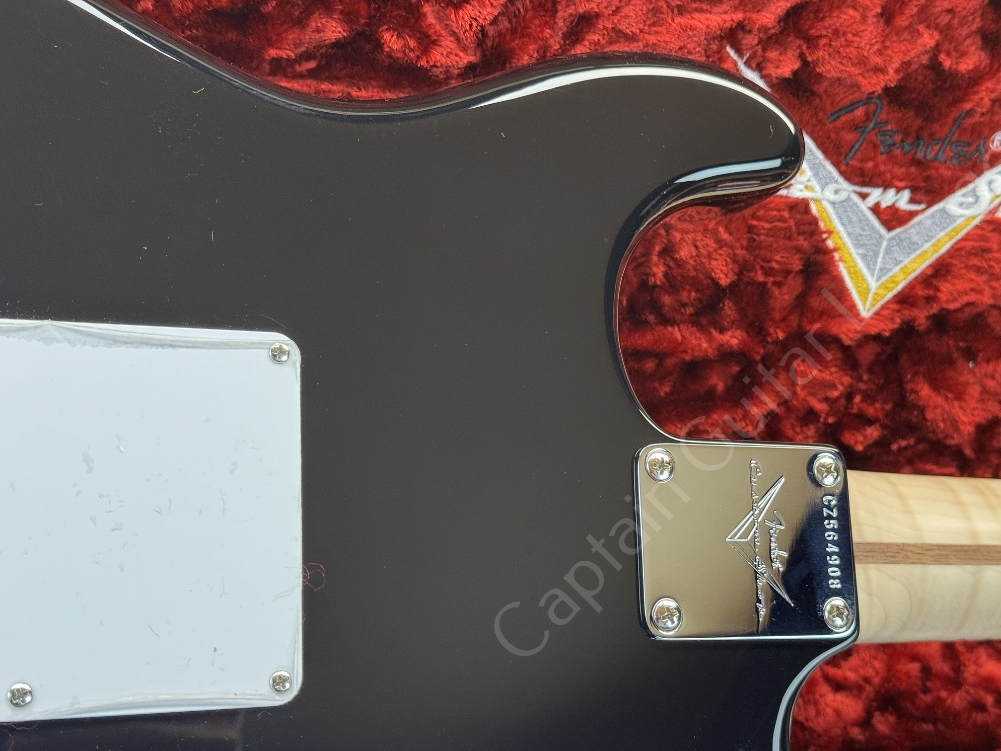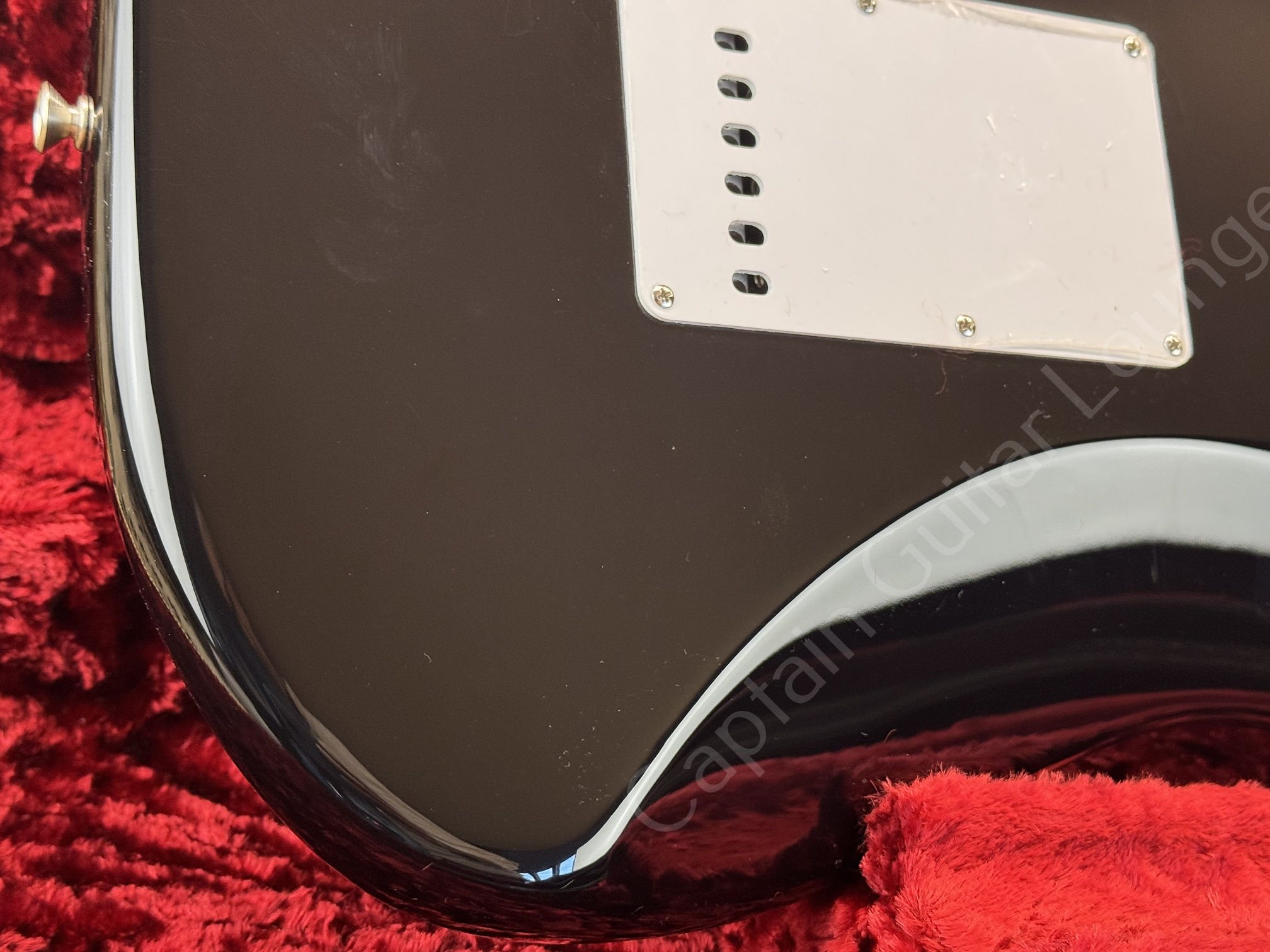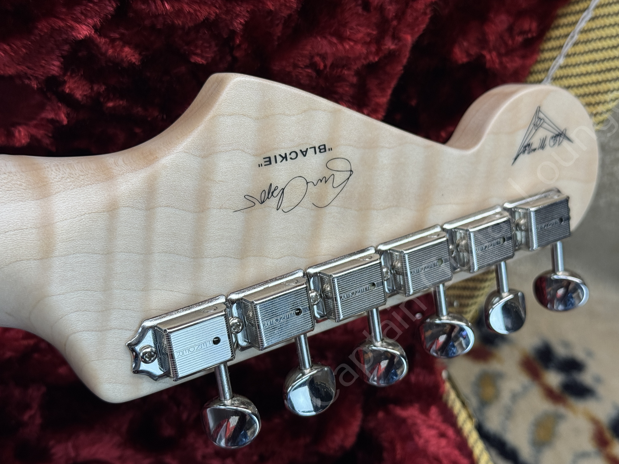 The instrument combines the classic Blackie look in black with an AAA flame maple neck in Clapton V profile, which is really comfortable in the hand.