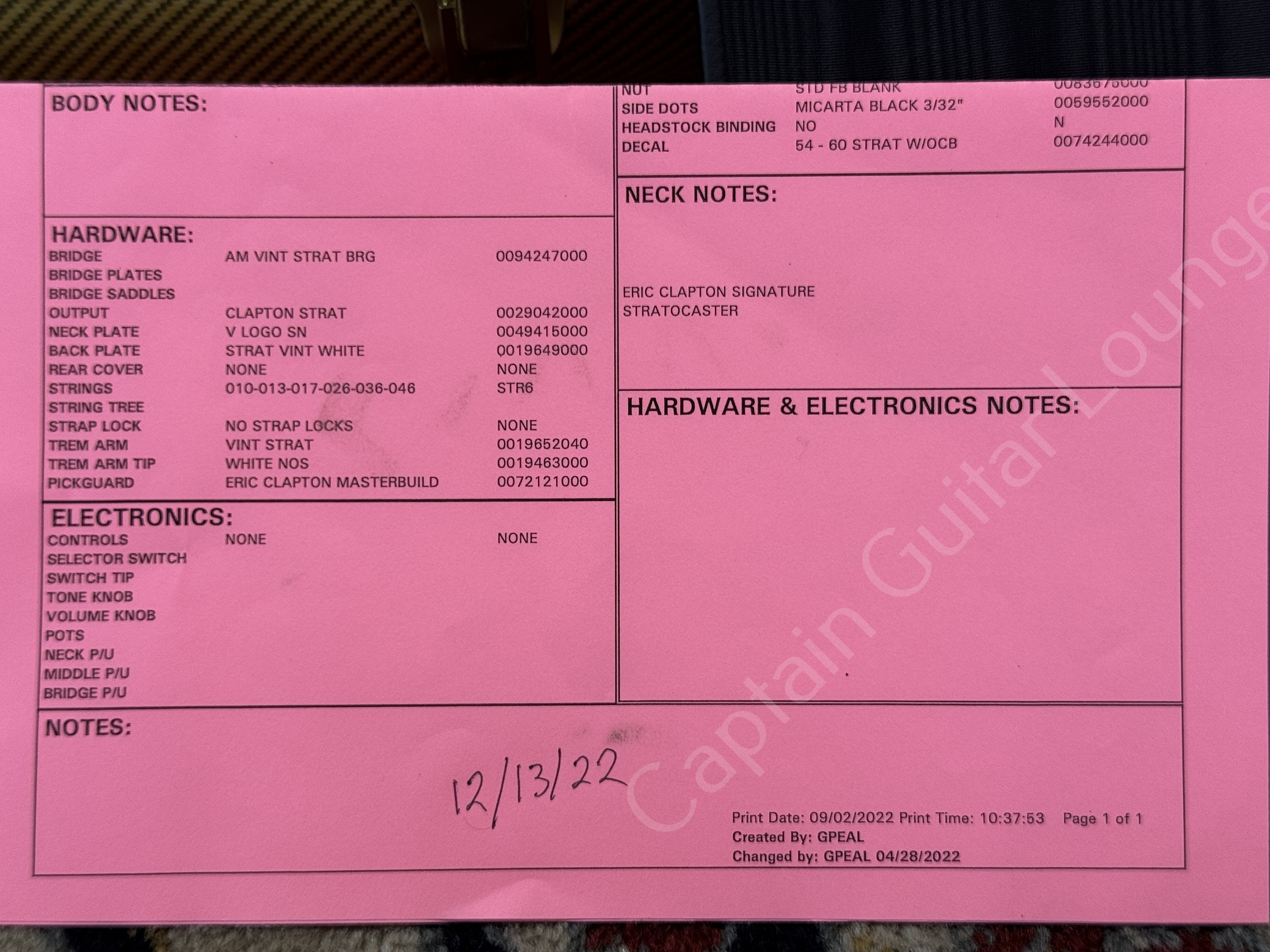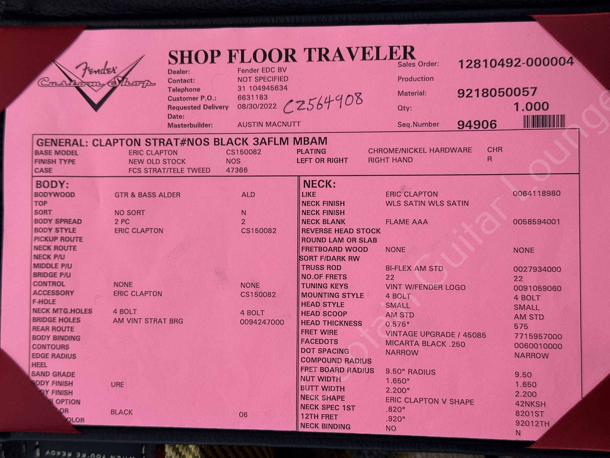 This Eric Clapton Stratocaster NOS "Blackie" was made in 2022 in the Fender Custom Shop by master builder Austin MacNutt.