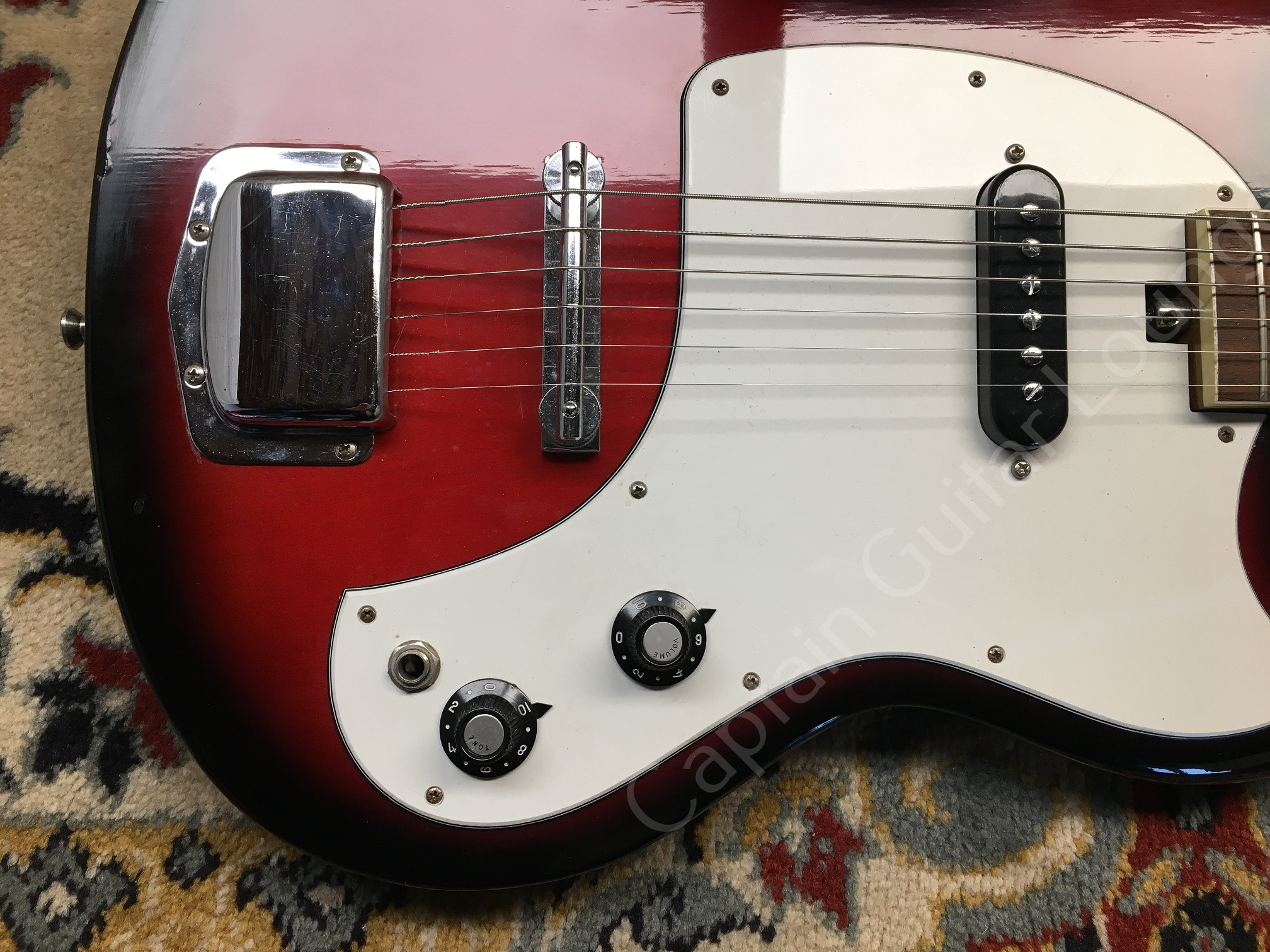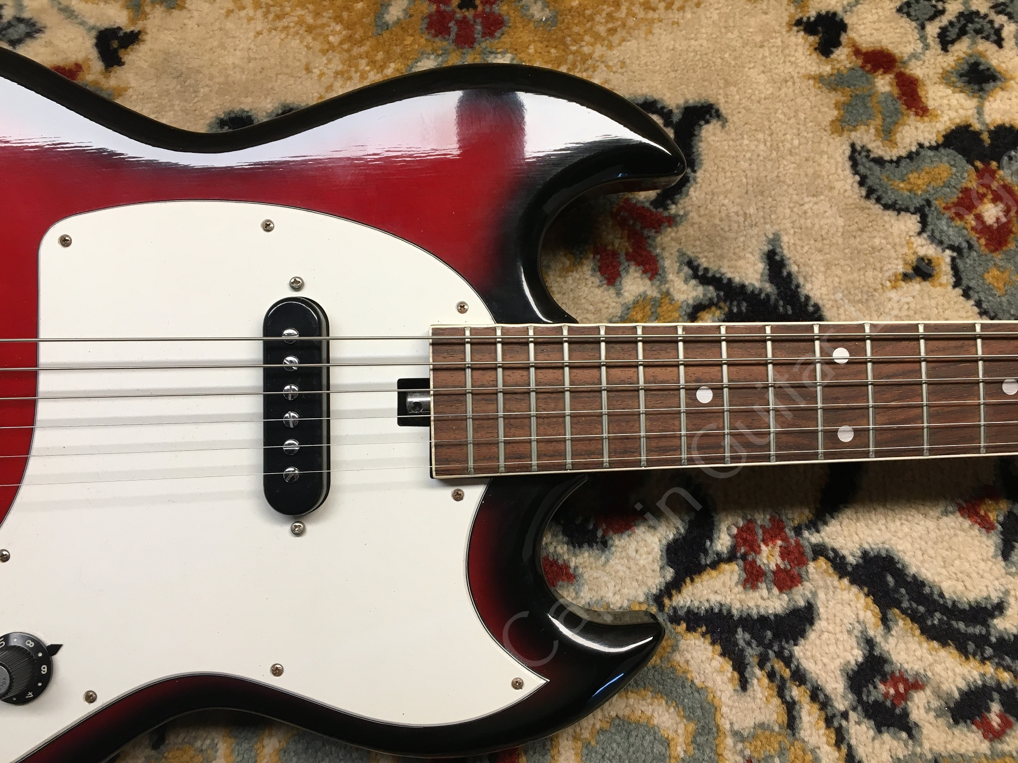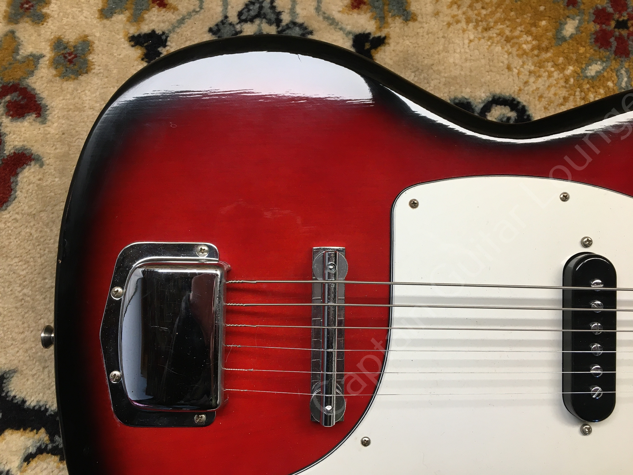 Der Zustand ist sehr gut, das Setup wurde justiert. Die Mechaniken sind vermutlich nicht original, sondern Kluson Deluxe Style, dadurch ist die Gitarre allerdings stimmstabil und lässt sich sehr gut spielen. Sie klingt überrraschend gut und schwingt wie der Teufel!