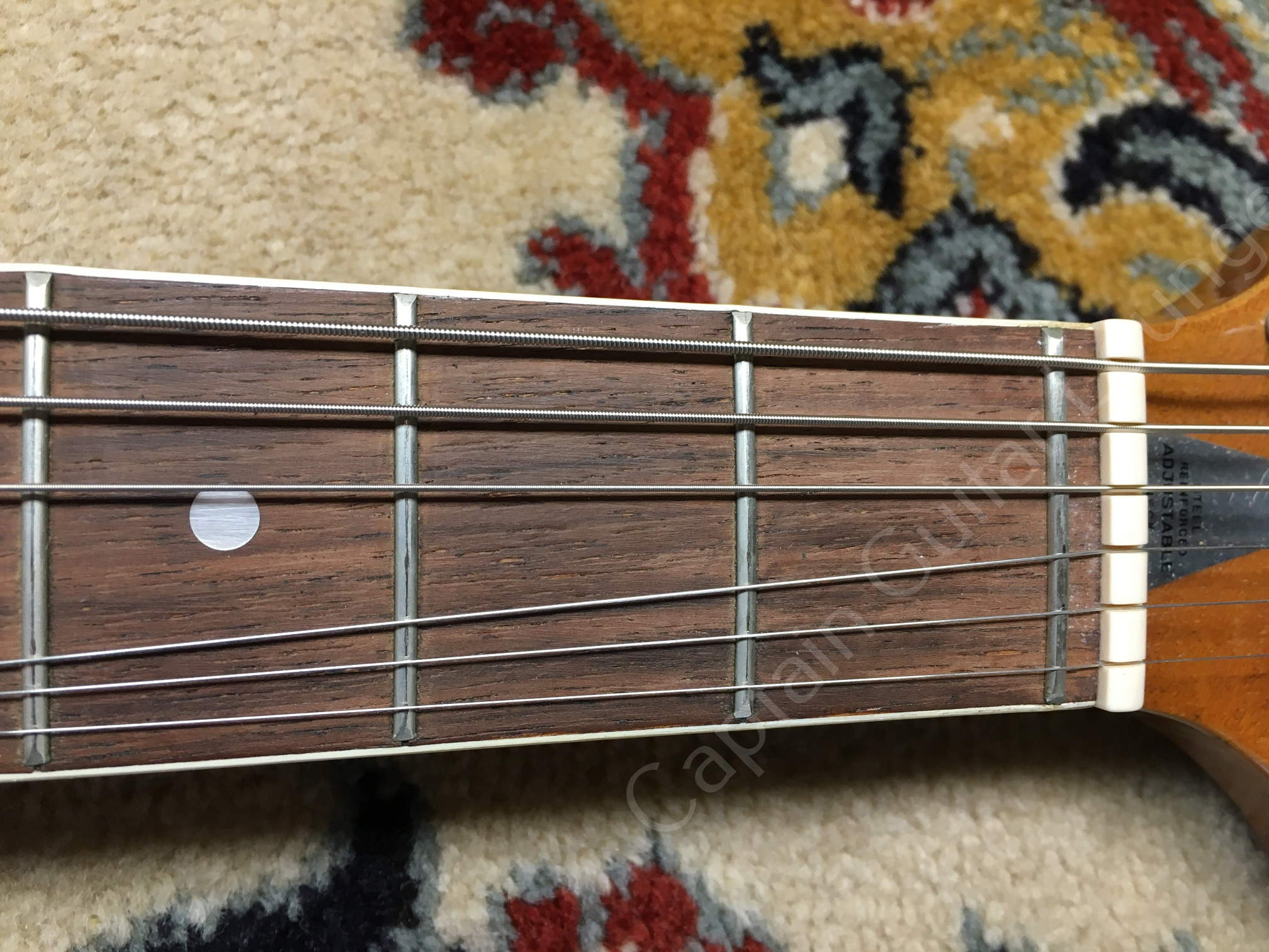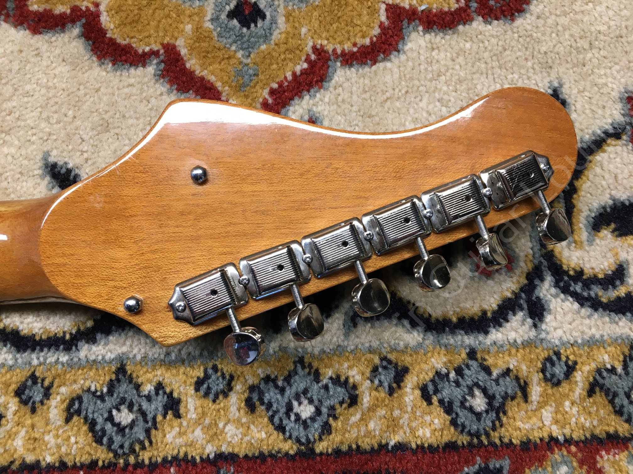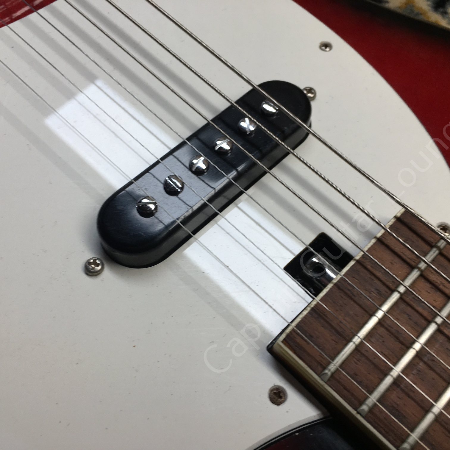 Der Zustand ist sehr gut, das Setup wurde justiert. Die Mechaniken sind vermutlich nicht original, sondern Kluson Deluxe Style, dadurch ist die Gitarre allerdings stimmstabil und lässt sich sehr gut spielen. Sie klingt überrraschend gut und schwingt wie der Teufel!