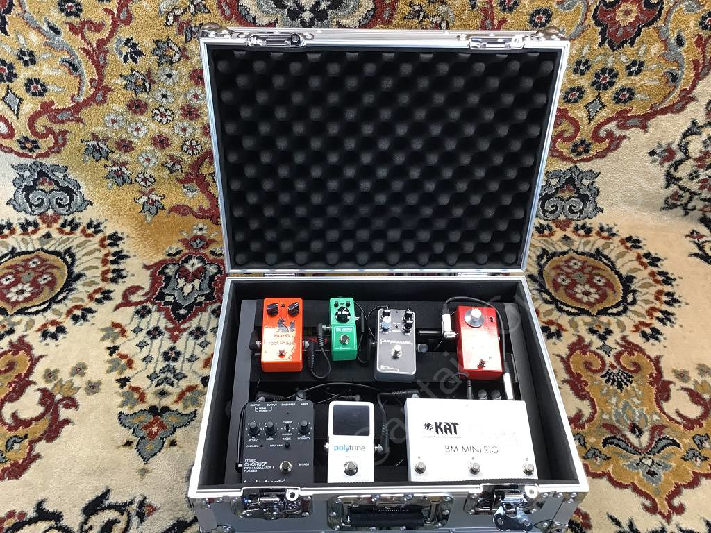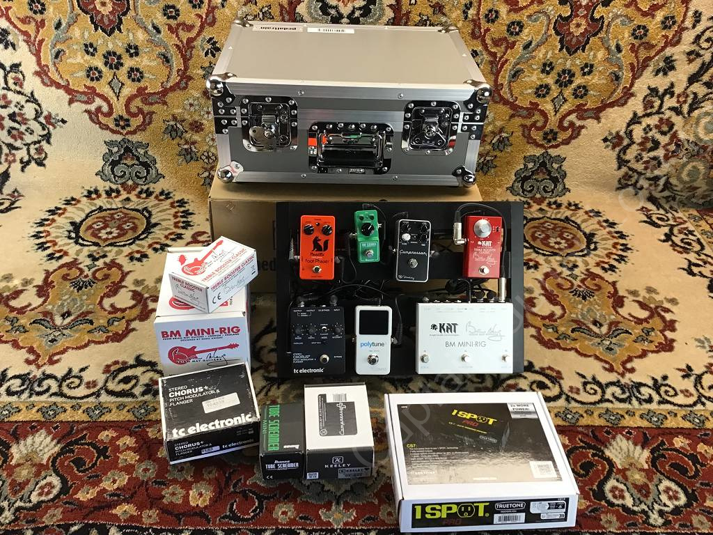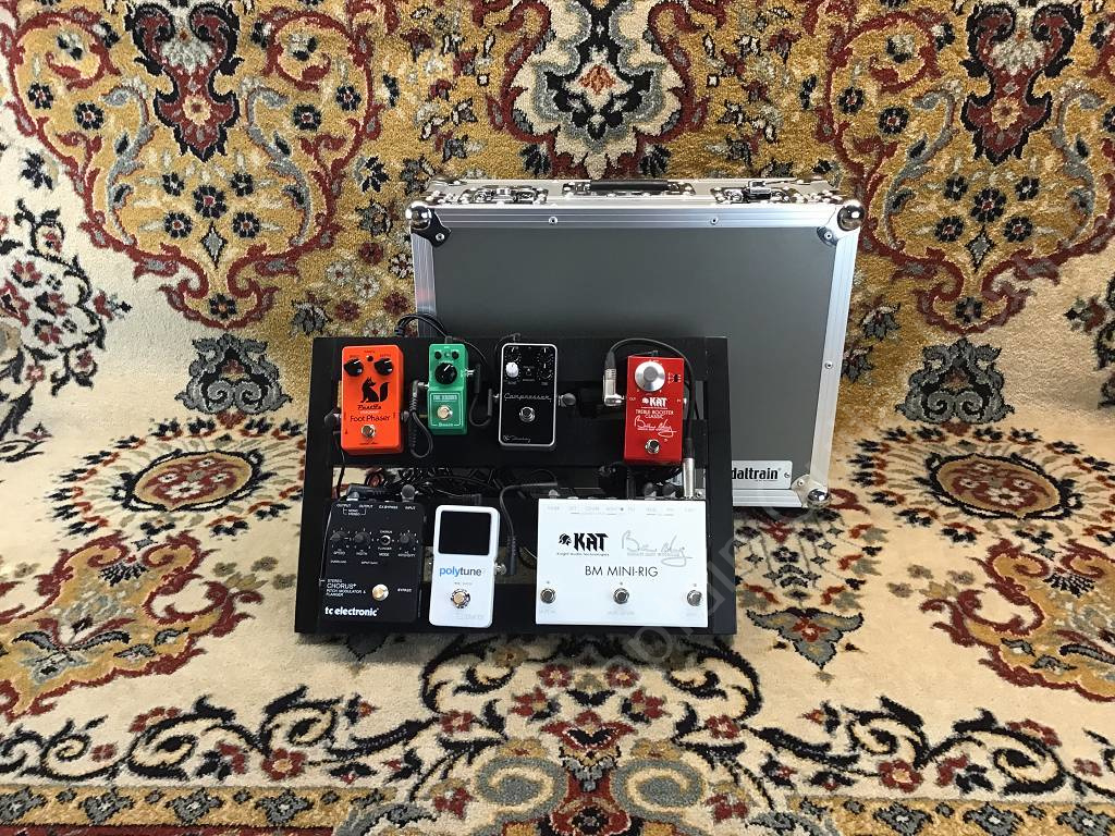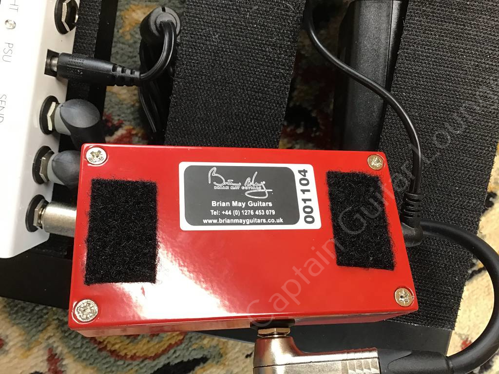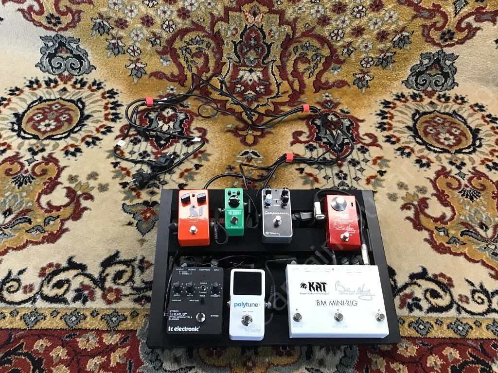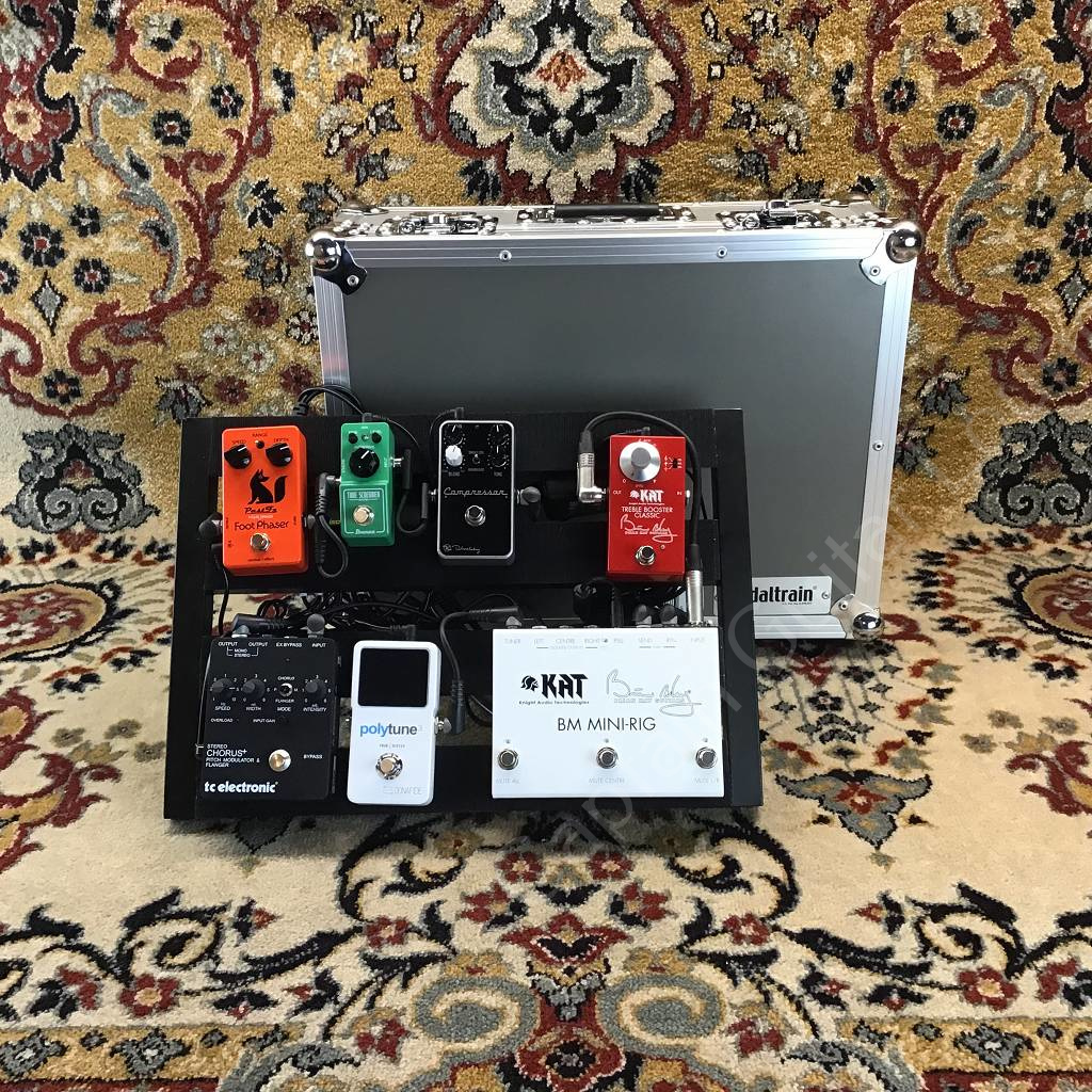 Inspired by Brian May's guitar sound, an effects board with high quality components was put together to recreate the sounds that the Queen guitarist produces with his equipment. At the heart of this pedalboard is the KAT Knight Audio Technologies BM Mini-Rig, with which you can control up to 3 amplifiers simultaneously thanks to its 3 isolated outputs. The other effect pedals are then located in the effect path of the mini-rig. There is a separate output for the tuner.