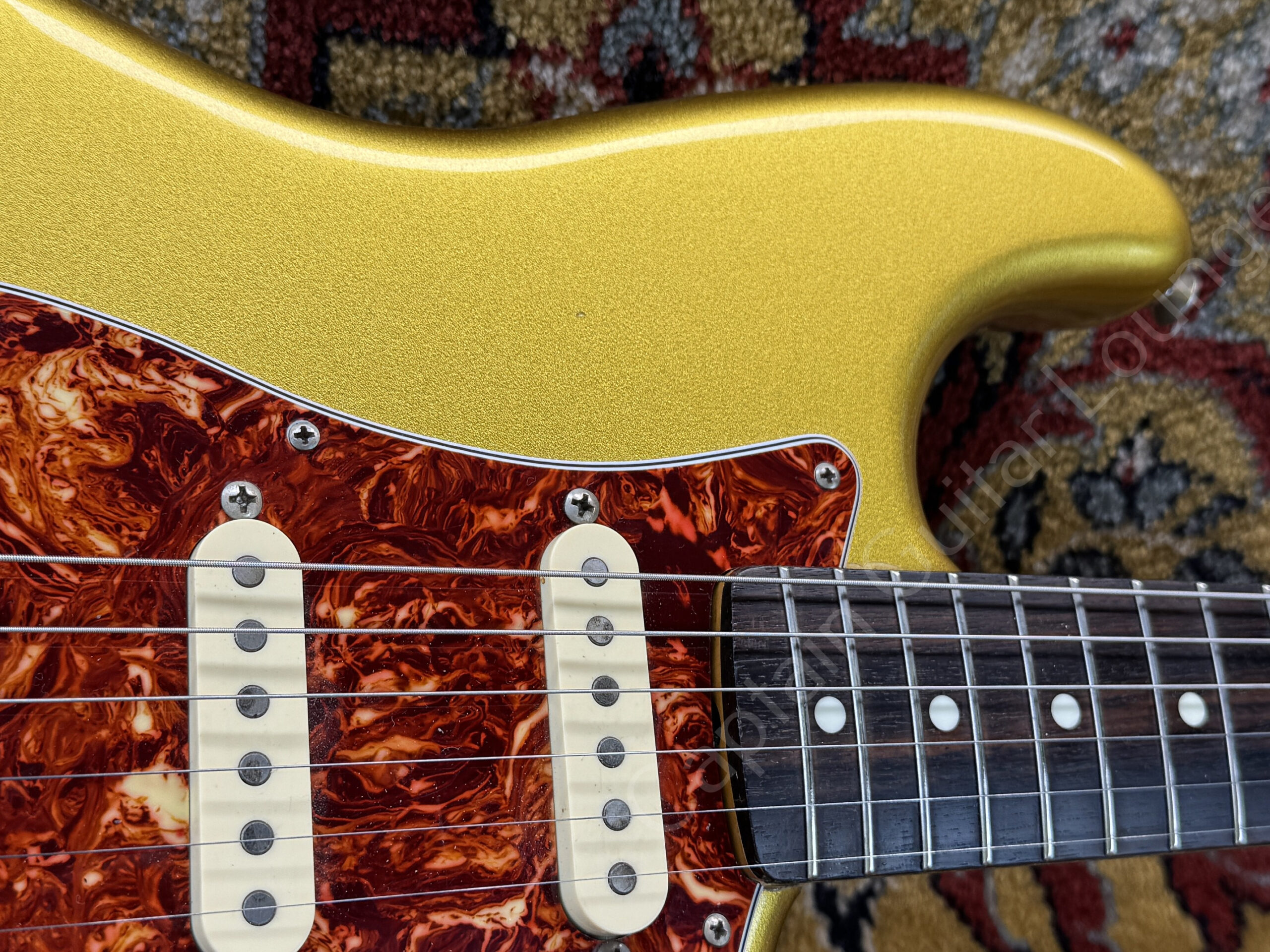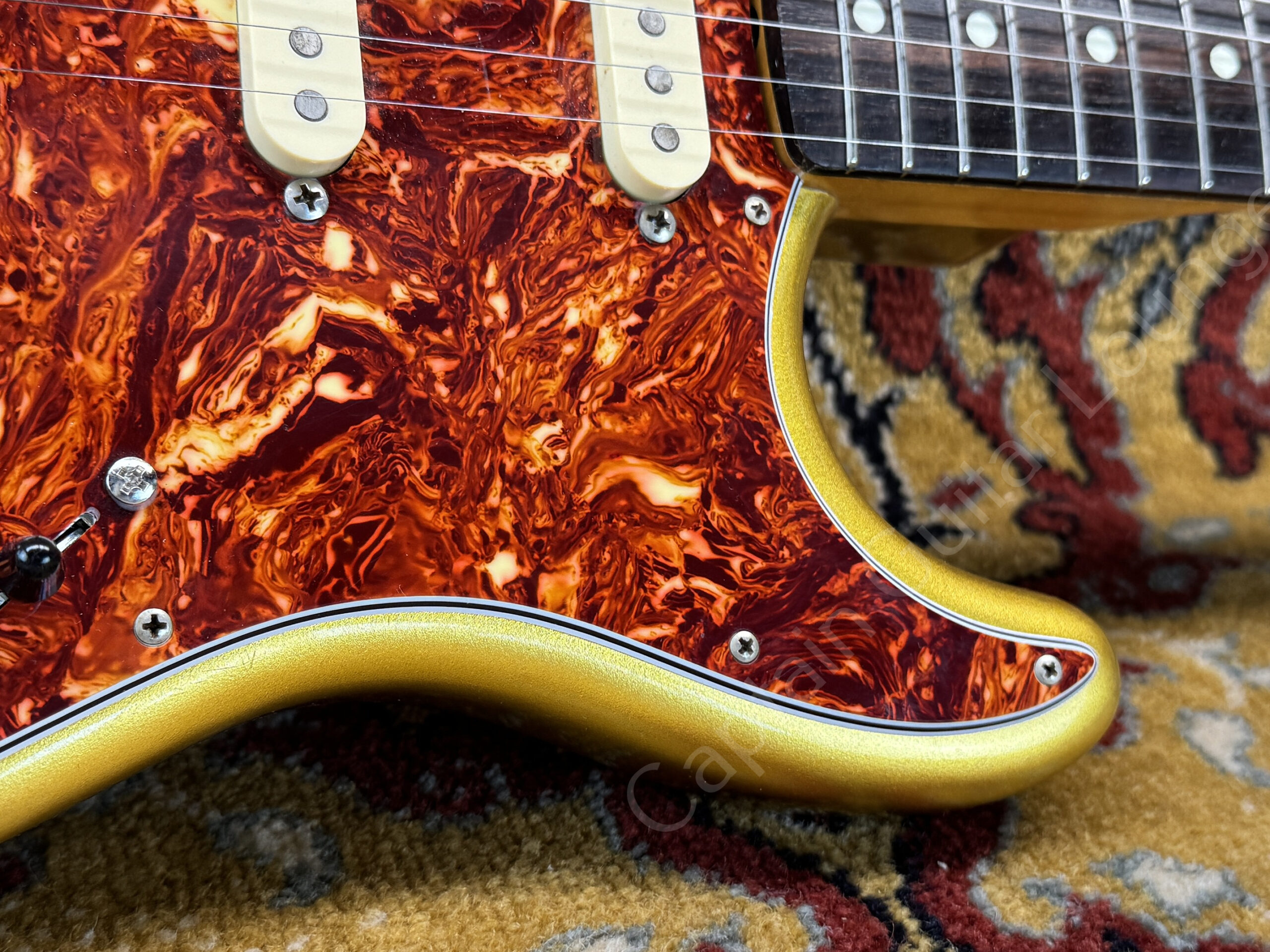 Der goldene Body in Kombination mit Tortoise-Pickguard und 60ties Style Parts sorgt für einen charmanten Vintage-Look.