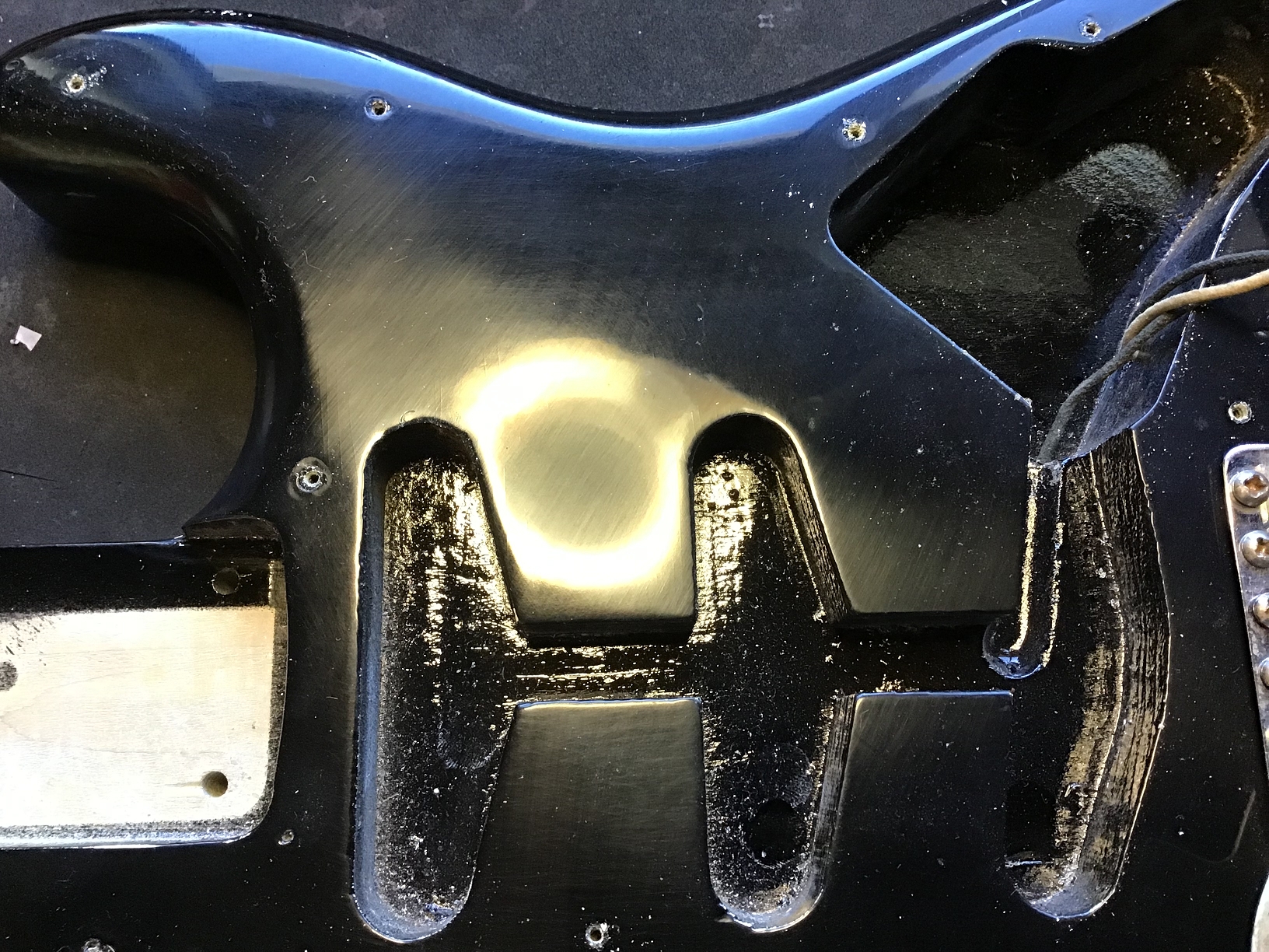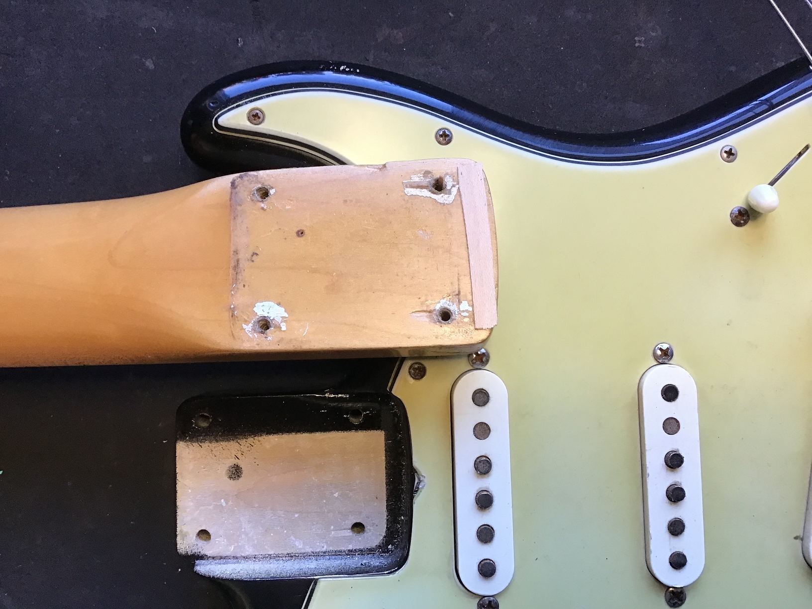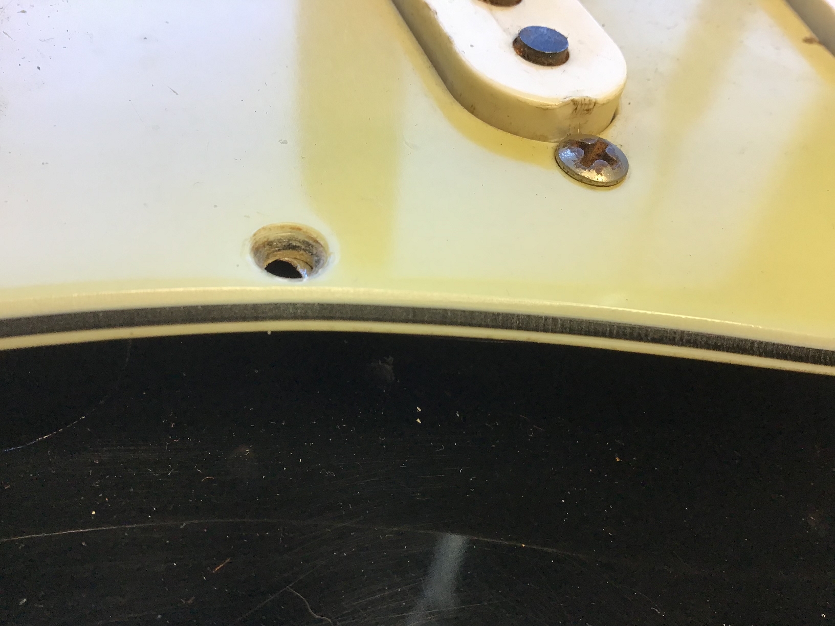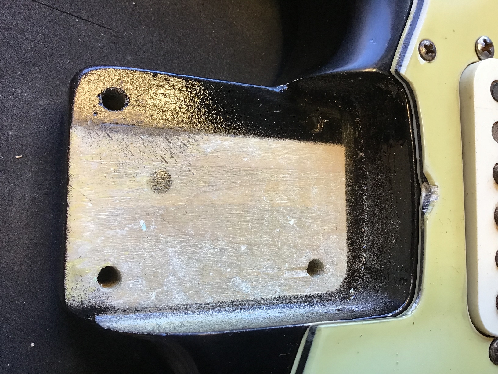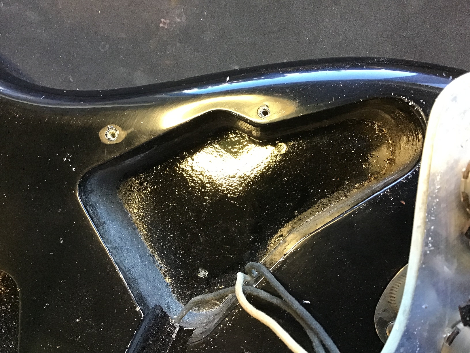 Ausserdem sind zusätzliche Löcher eines anderen Pickguards zu erkennen.