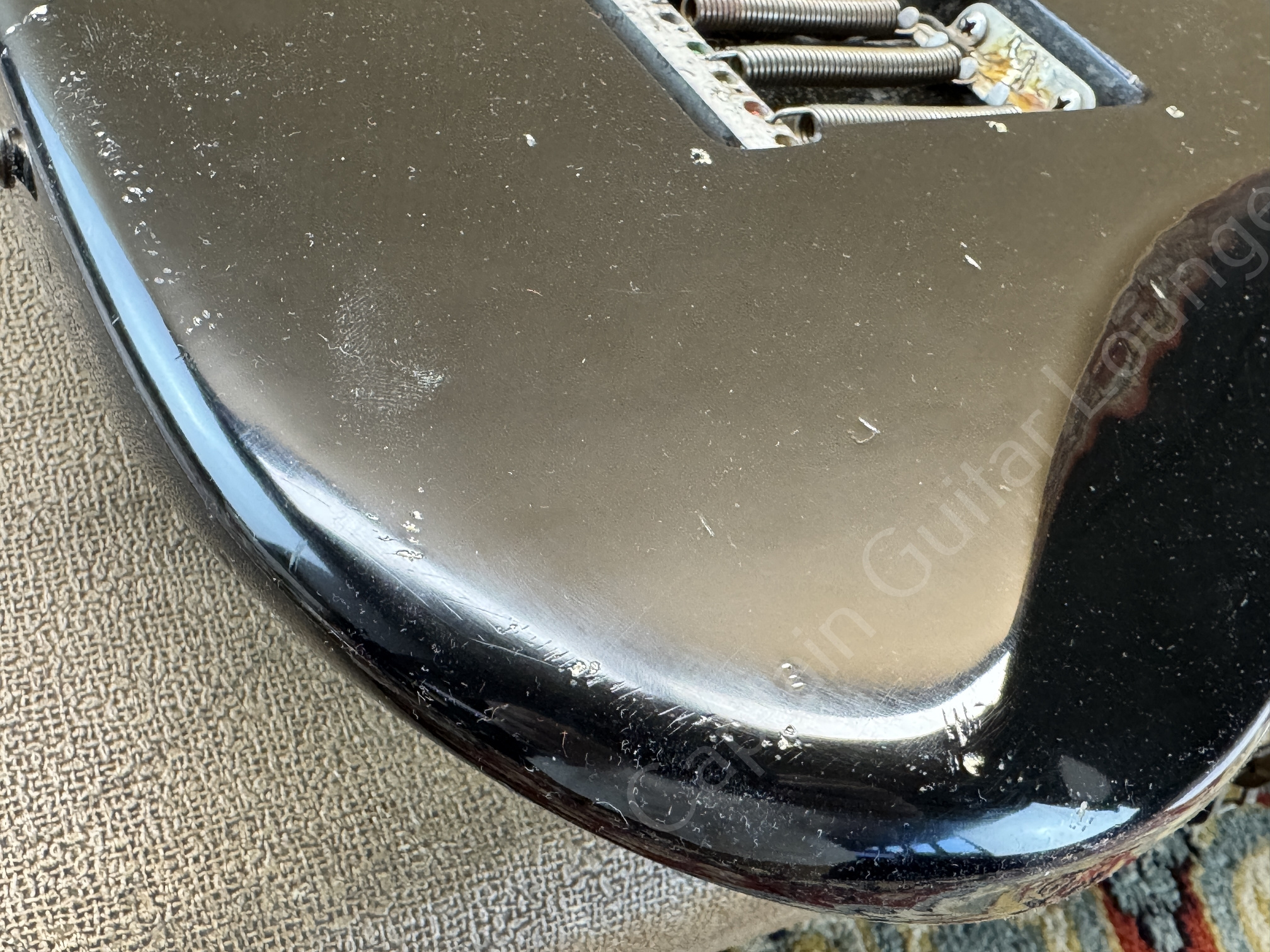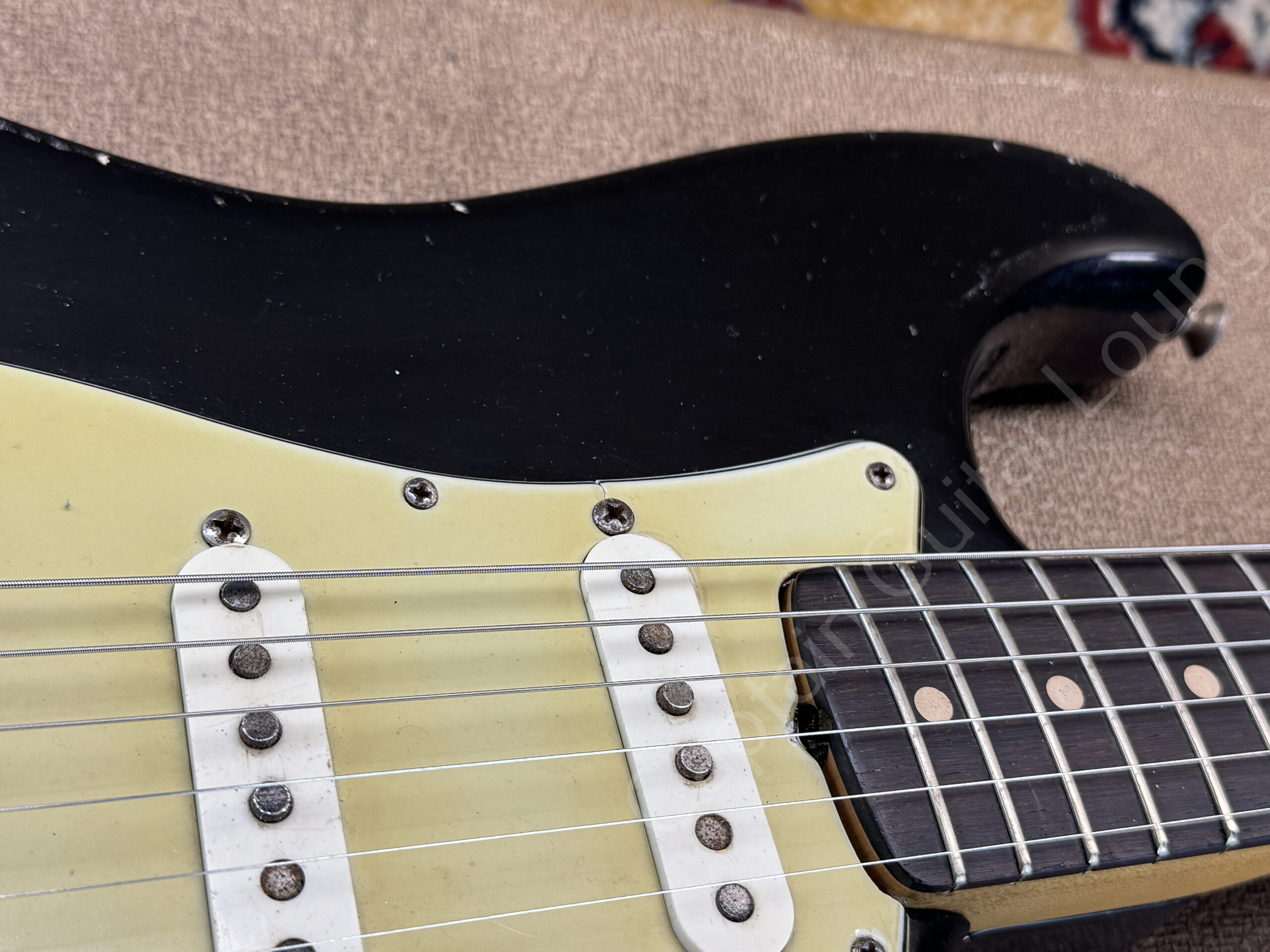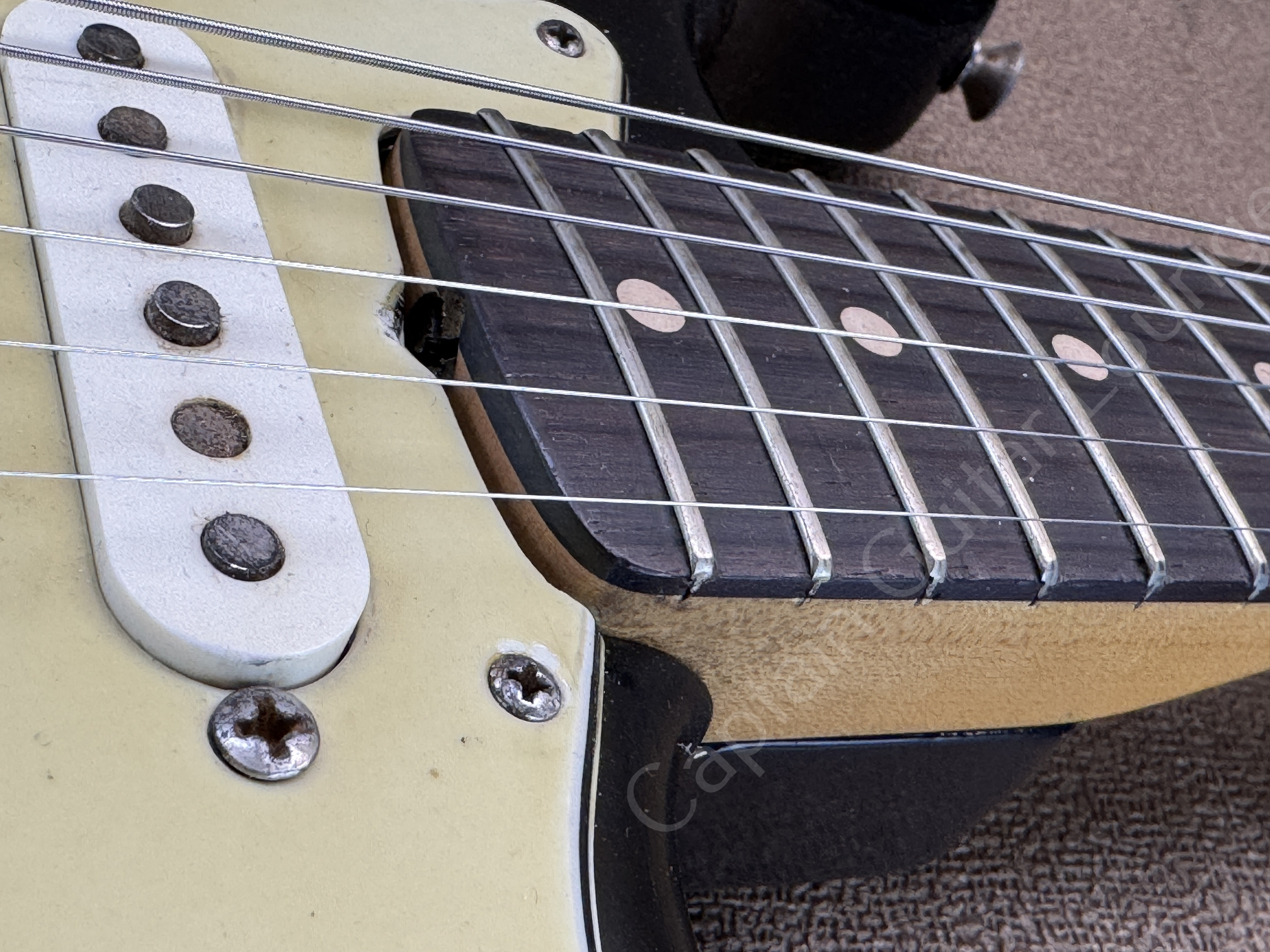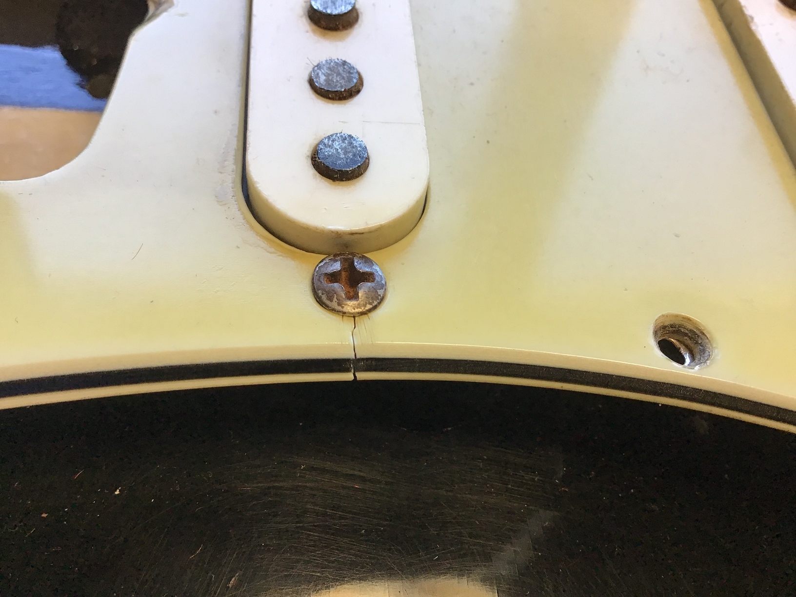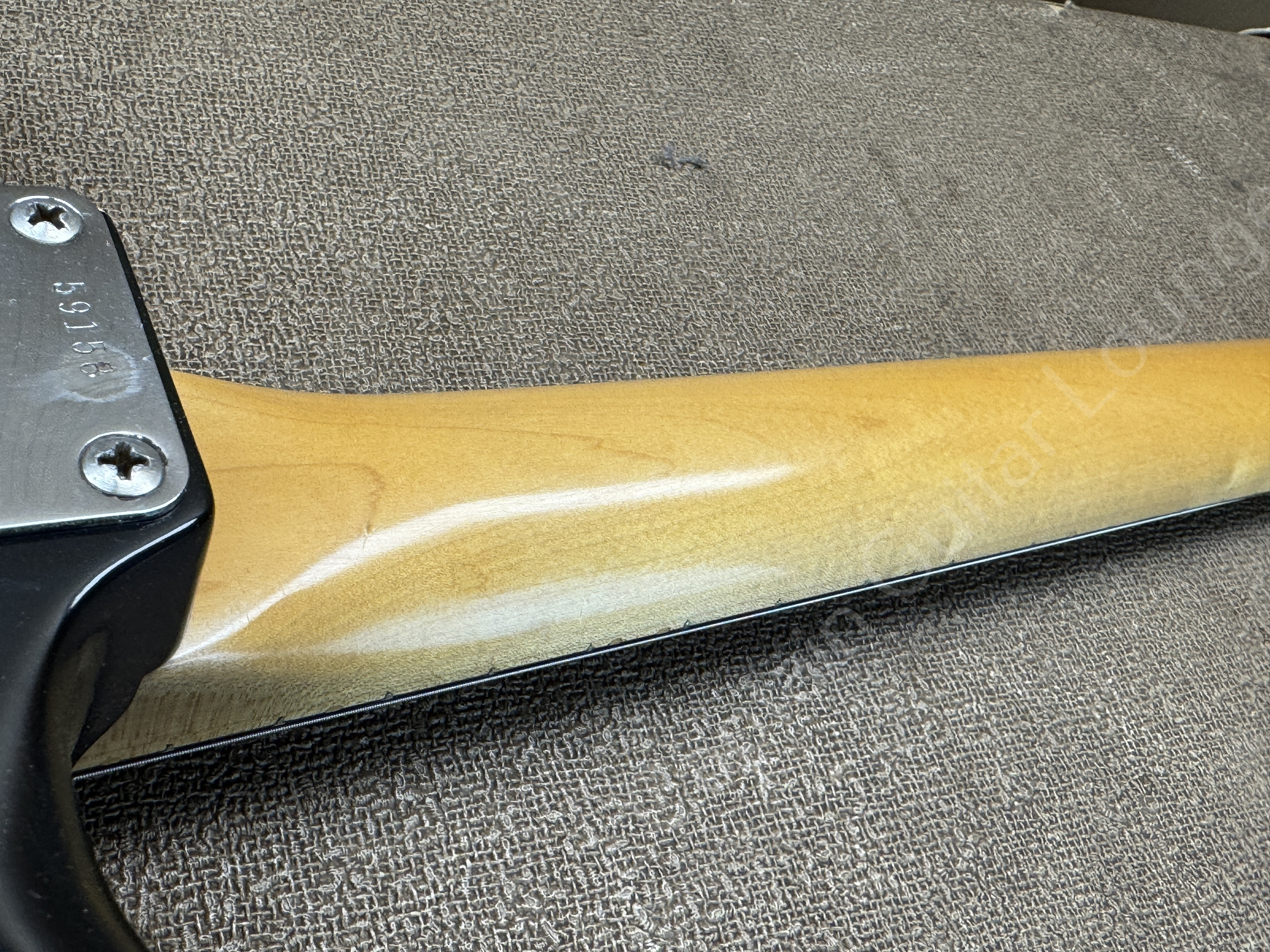 Ausserdem sind zusätzliche Löcher eines anderen Pickguards zu erkennen.
