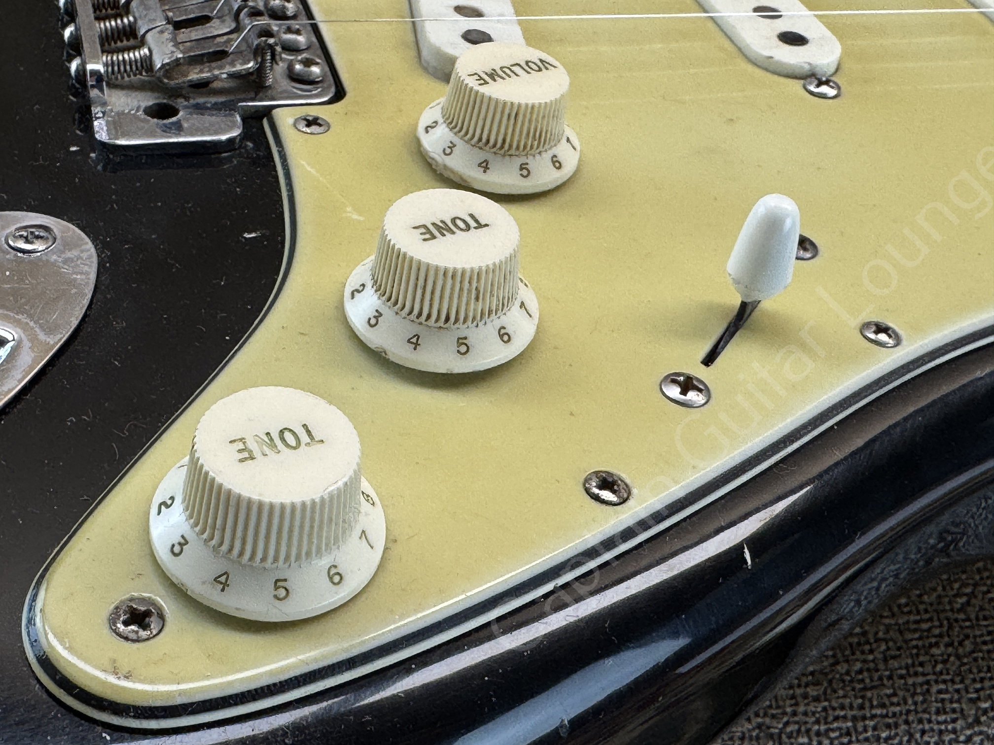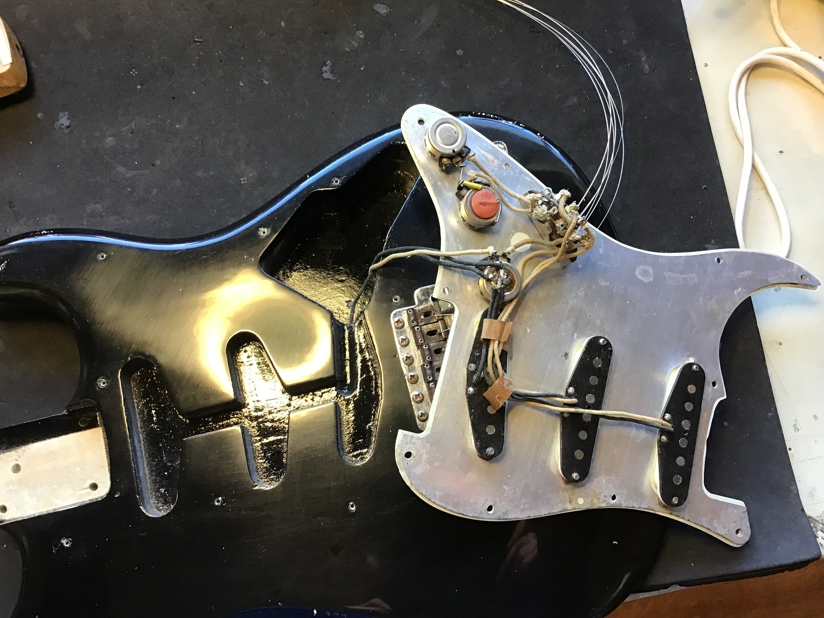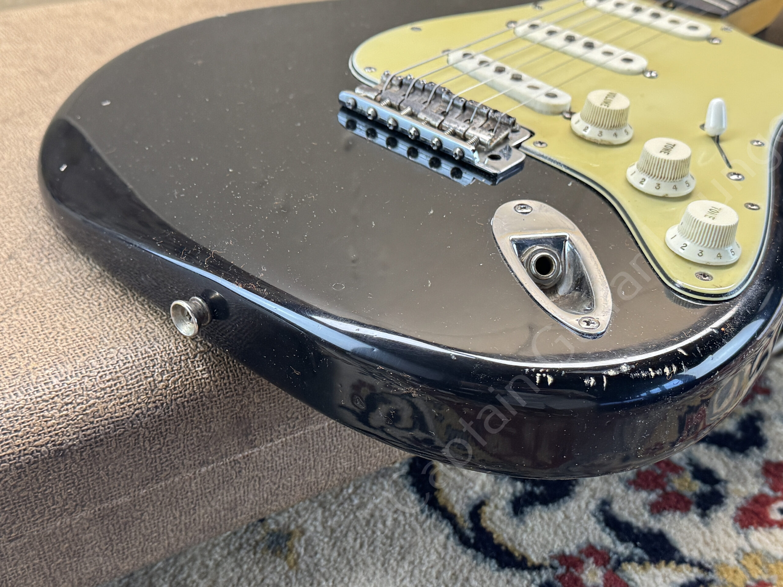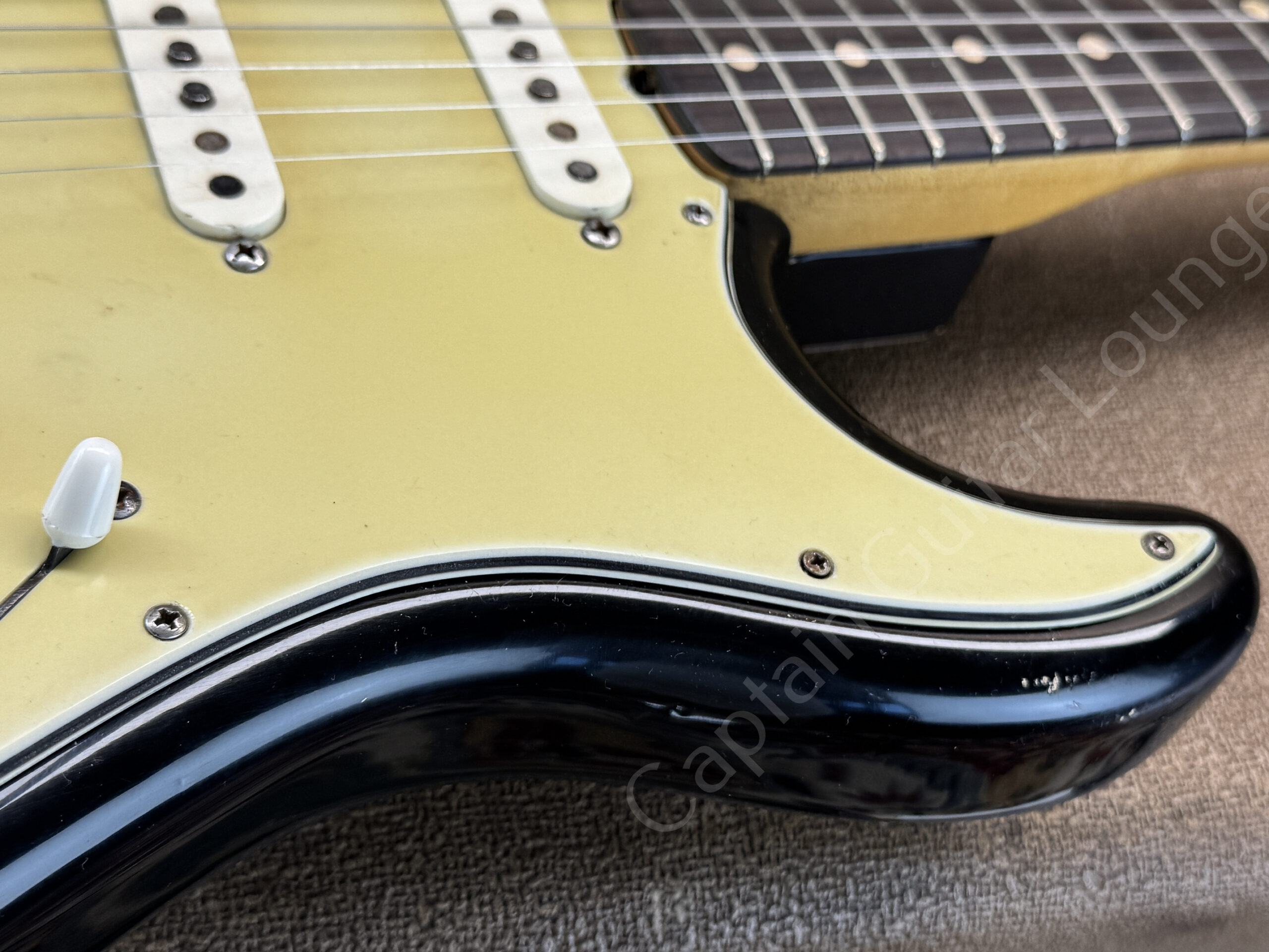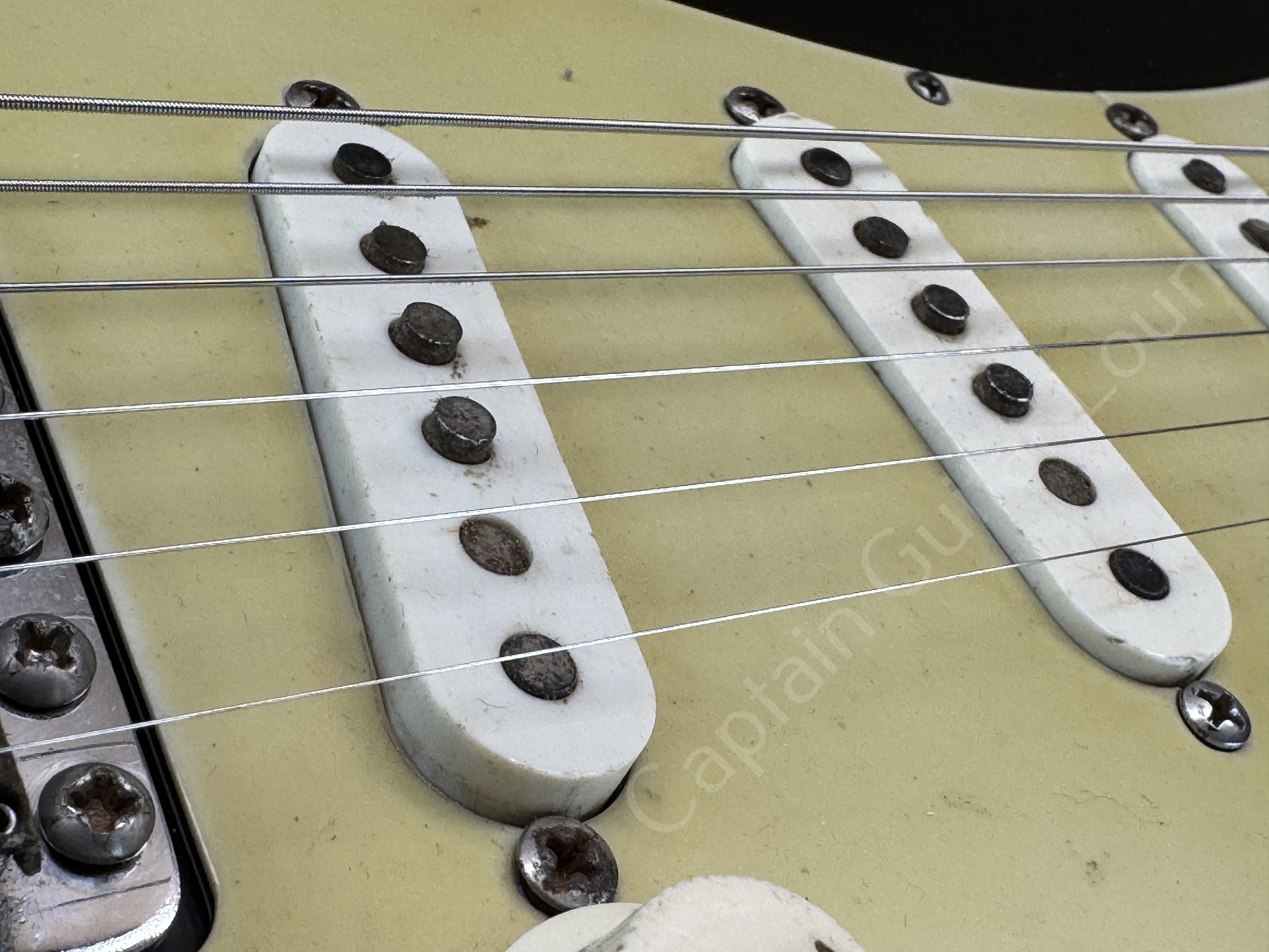 Ausserdem sind zusätzliche Löcher eines anderen Pickguards zu erkennen.