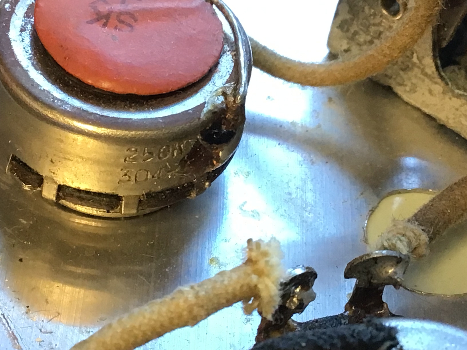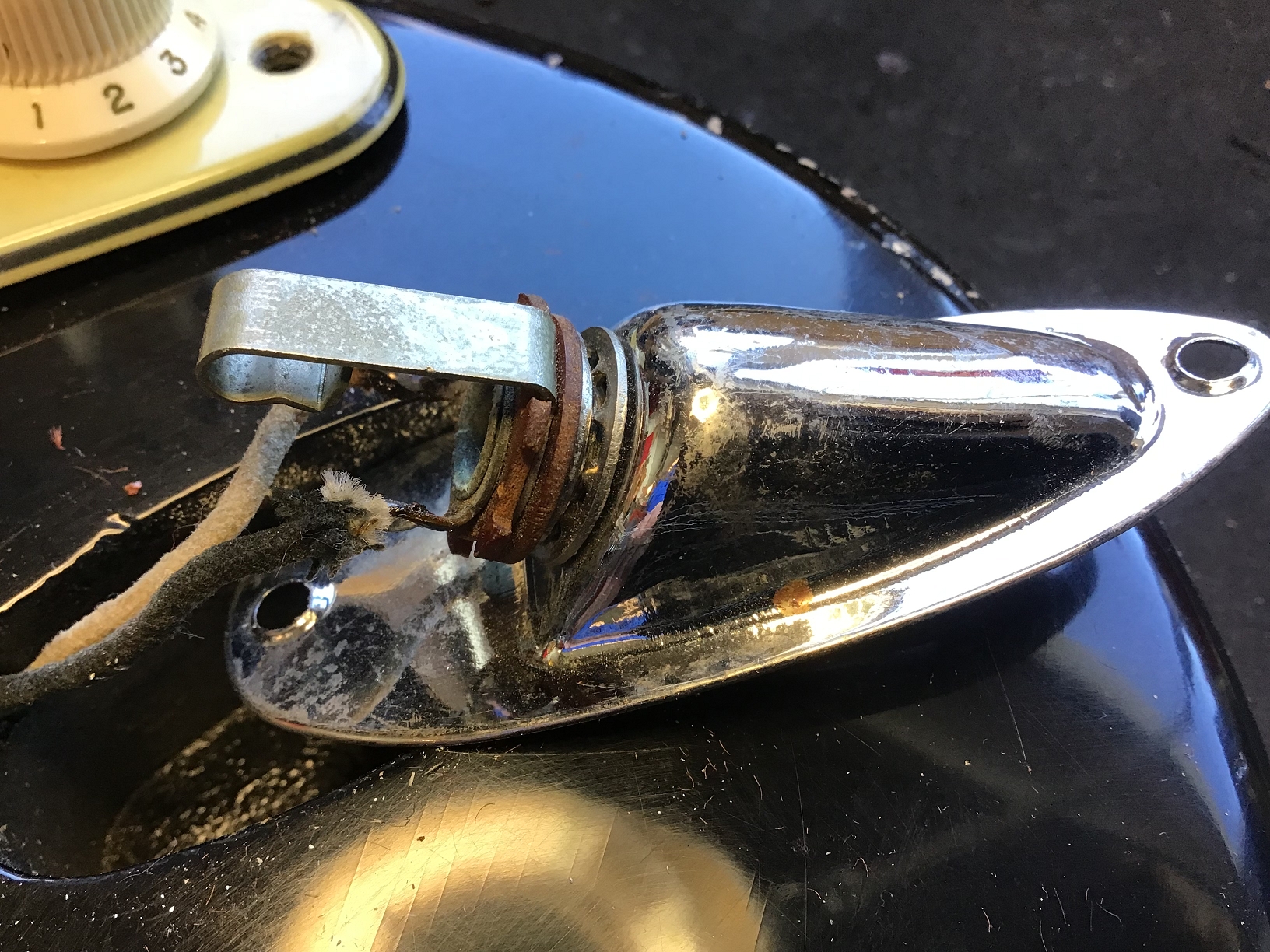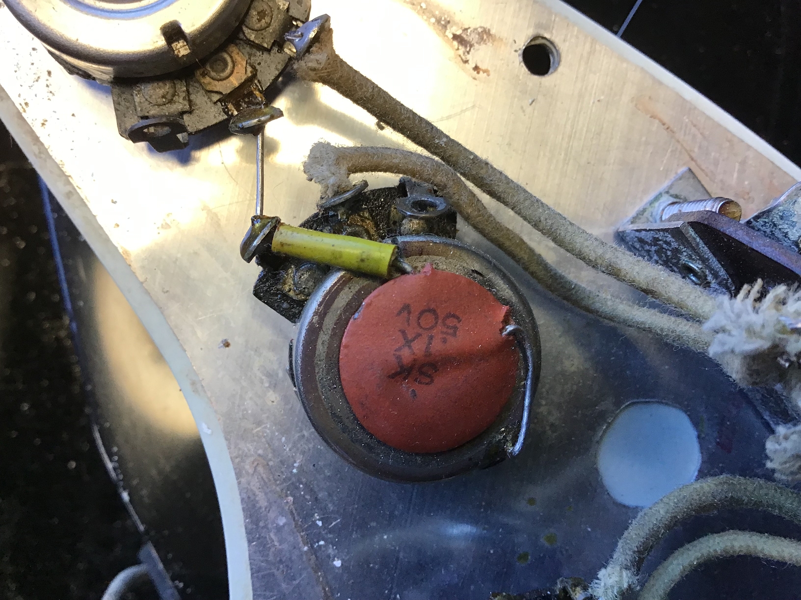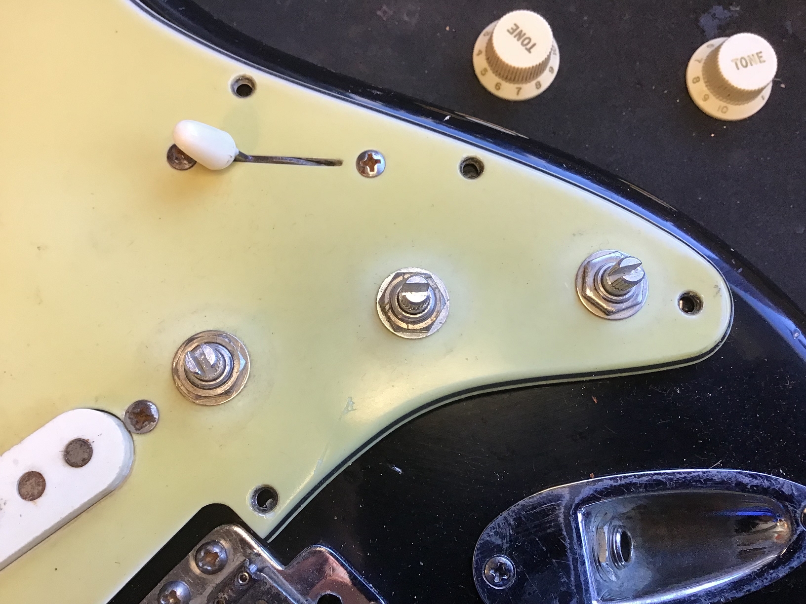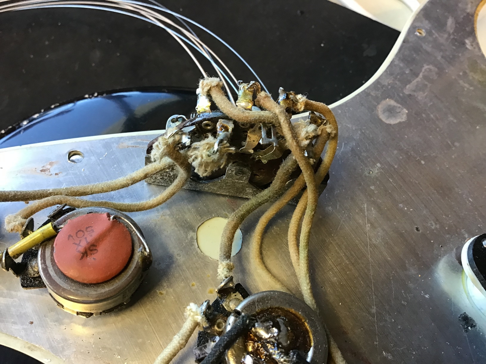 Ausserdem sind zusätzliche Löcher eines anderen Pickguards zu erkennen.