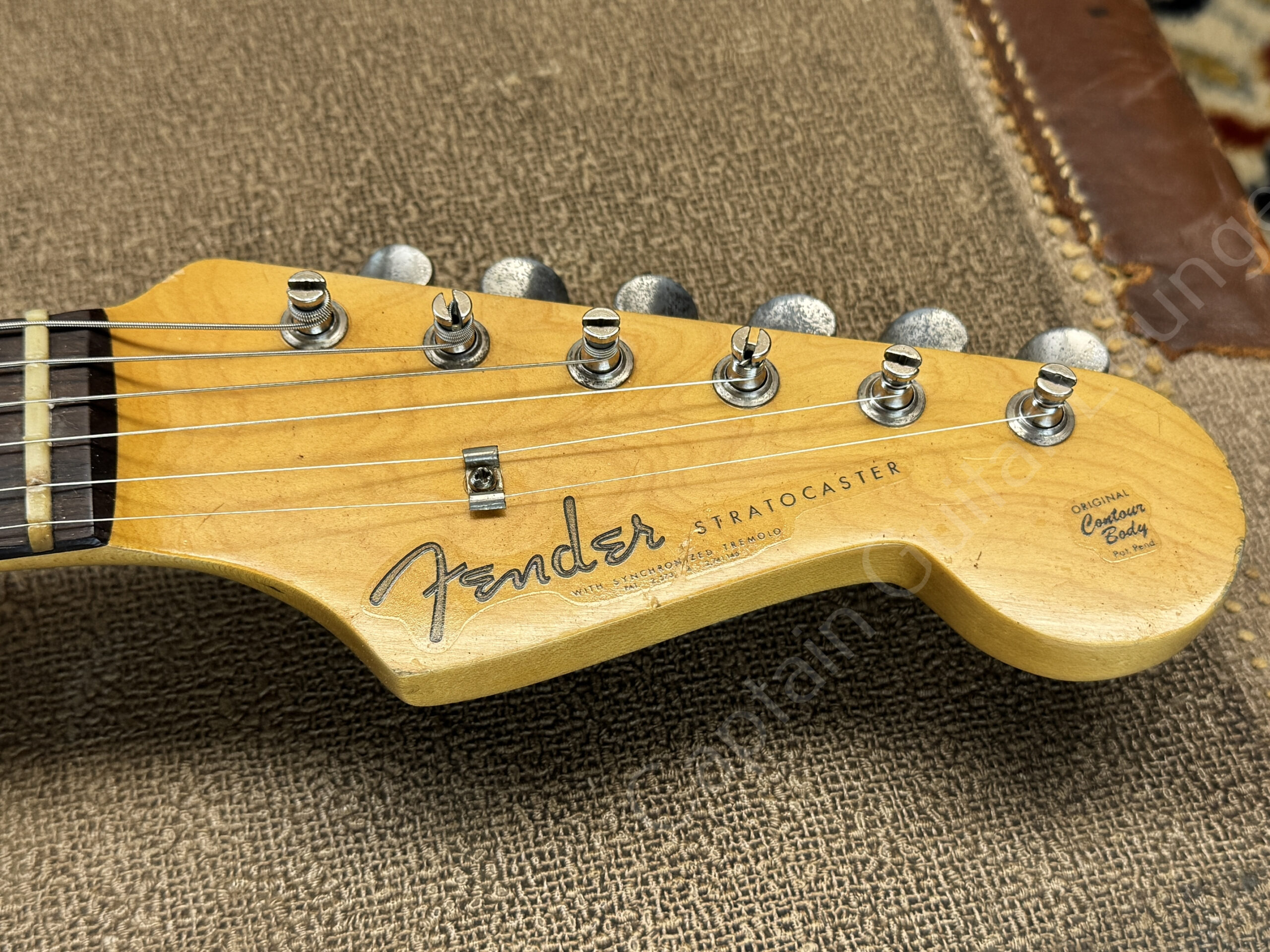 Laut mitgeliefertem Letter von Guitar Point weist der Body die Konturen einer 50er Jahre Strat auf, hat aber bereits die vorhandene "Ecke" im E-Cavity von ab Mitte 1959.