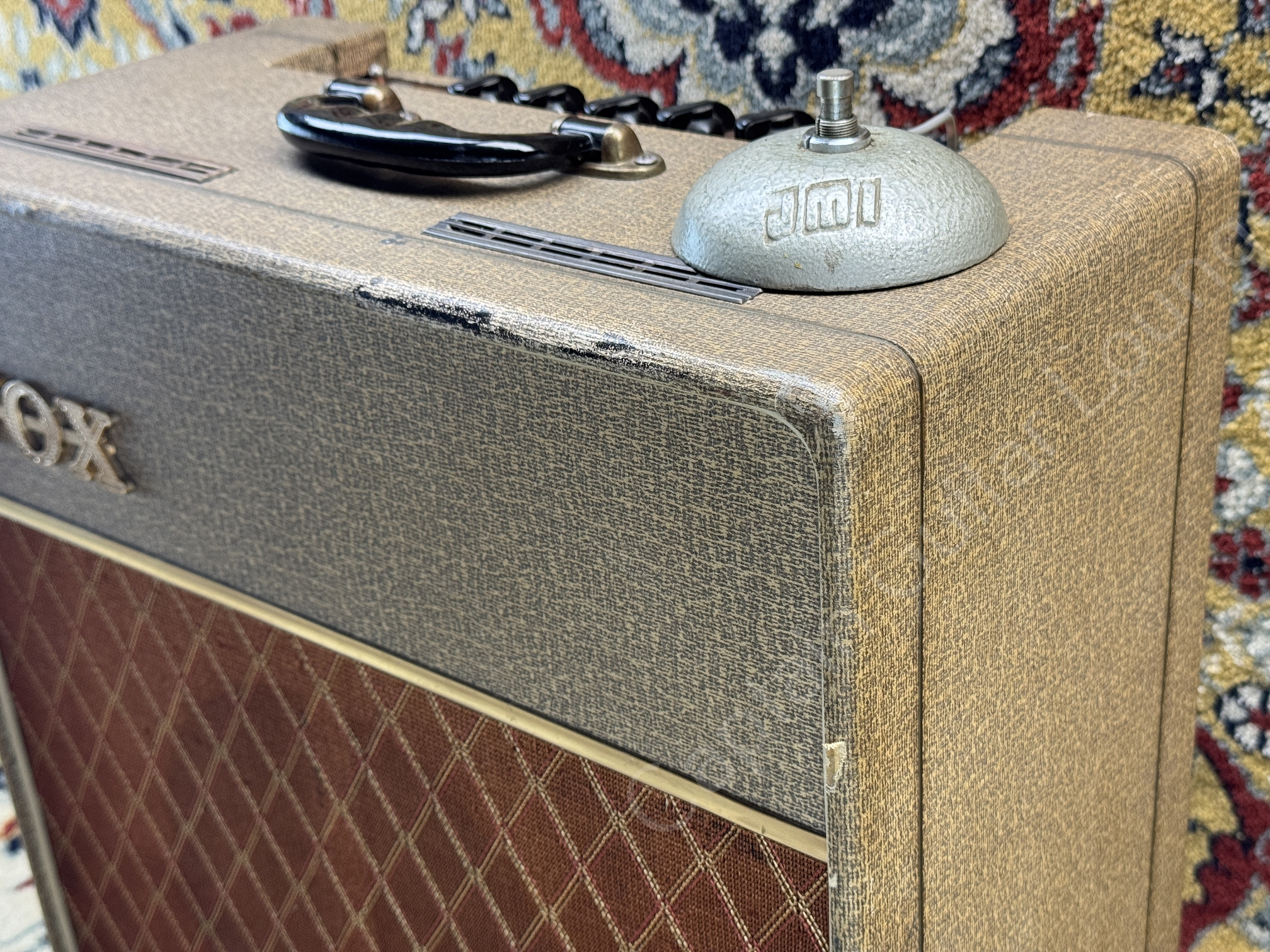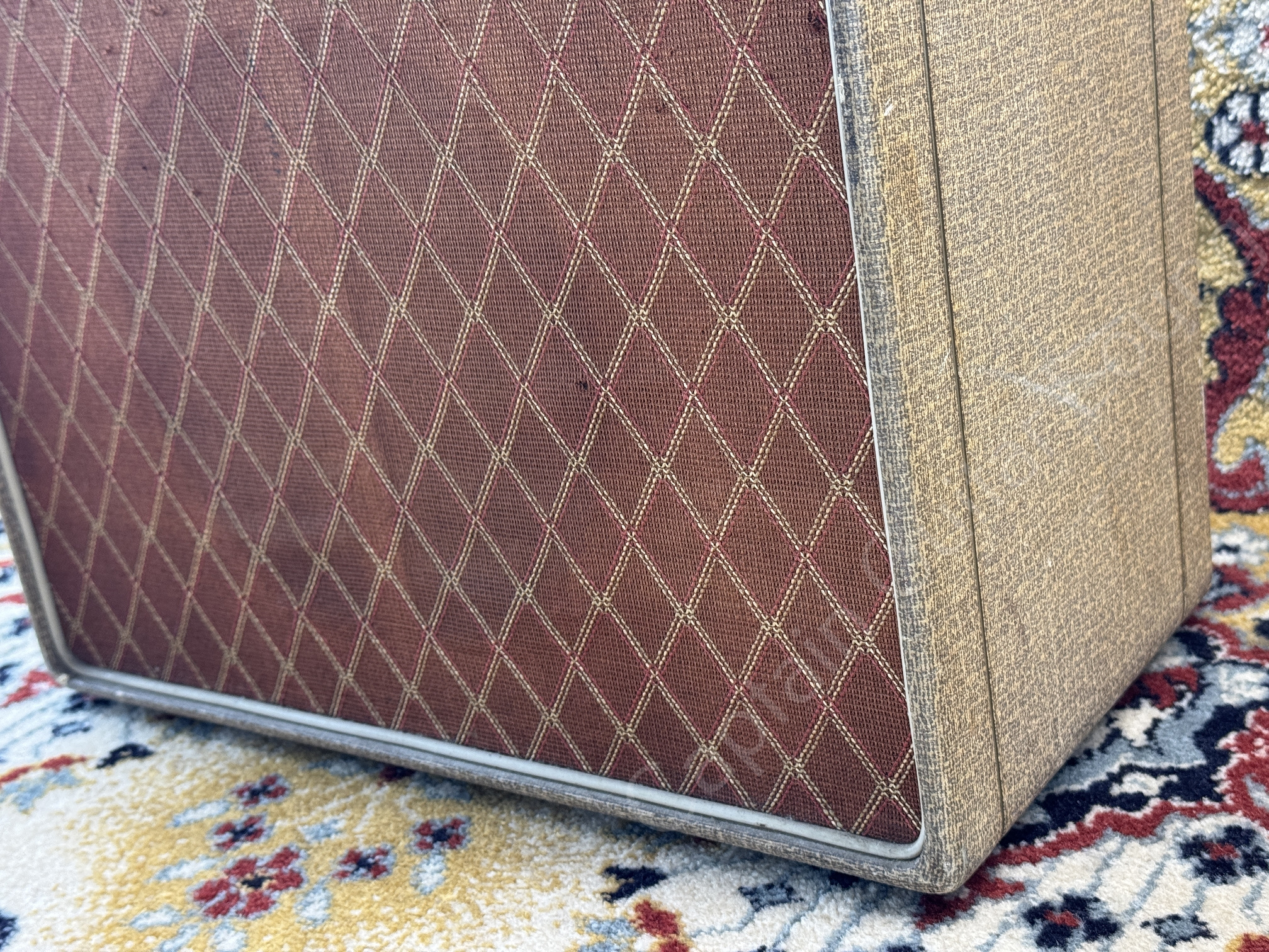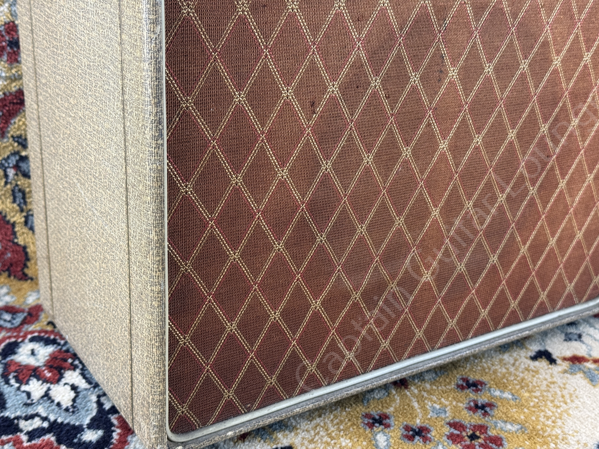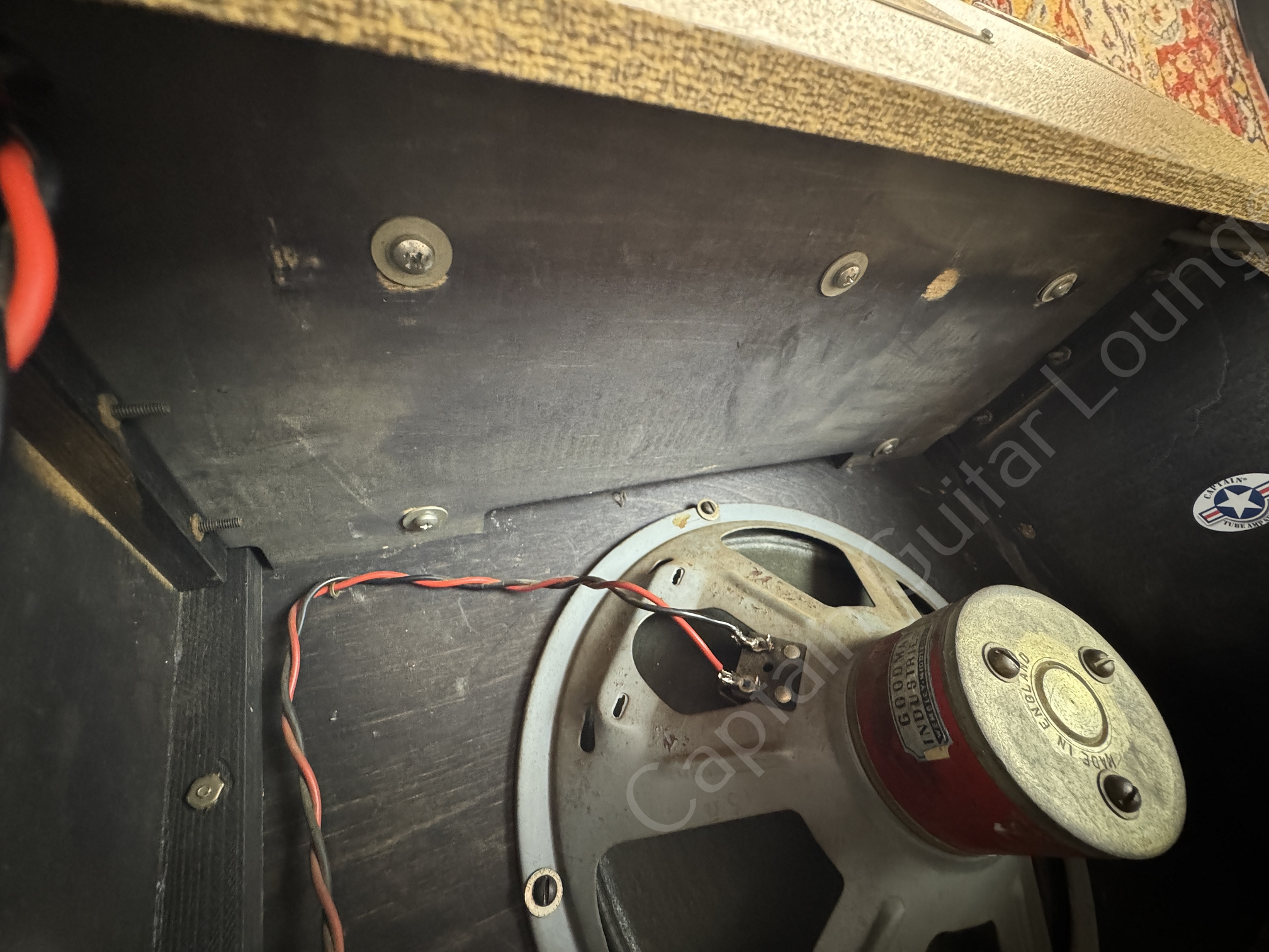 Der Verstärker ist außergewöhnlich original erhalten: Originale Trafos, Kondensatoren, JMI Footswitch, Fawn Tolex, Backpanels, Grillcloth, Tragegriff, Copper Panel sowie der originale Goodmans 10" Speaker sind vorhanden. Veränderungen beschränken sich lediglich auf vereinzelte Muttern und Schrauben - technisch wie historisch absolut vertretbar.
