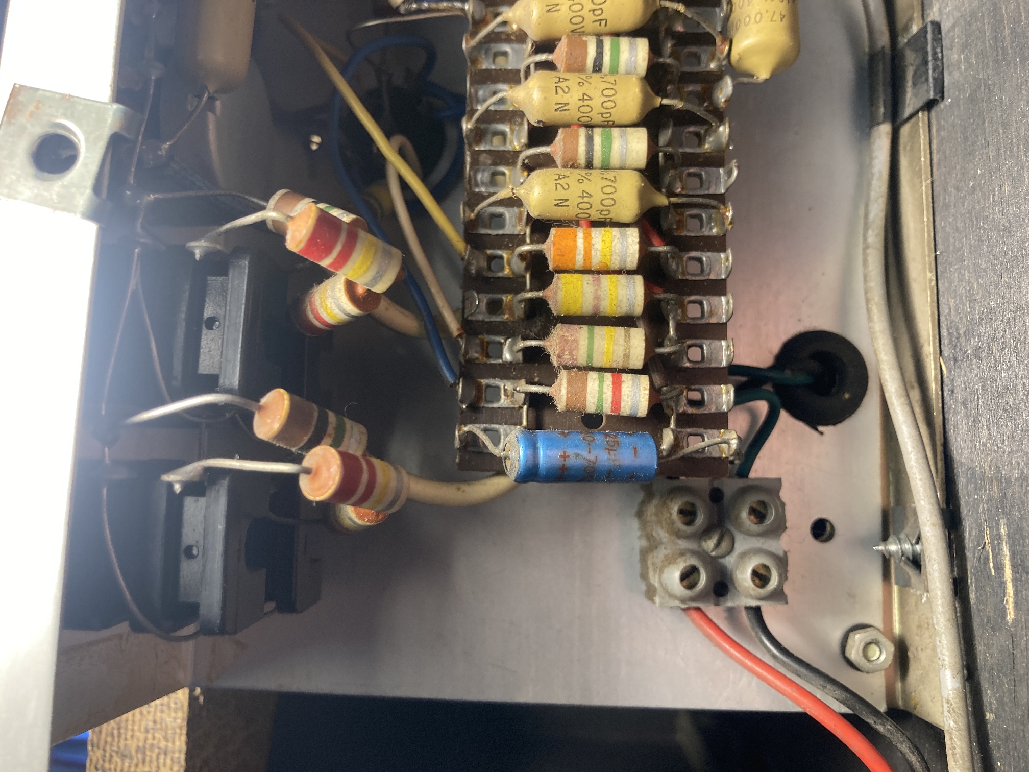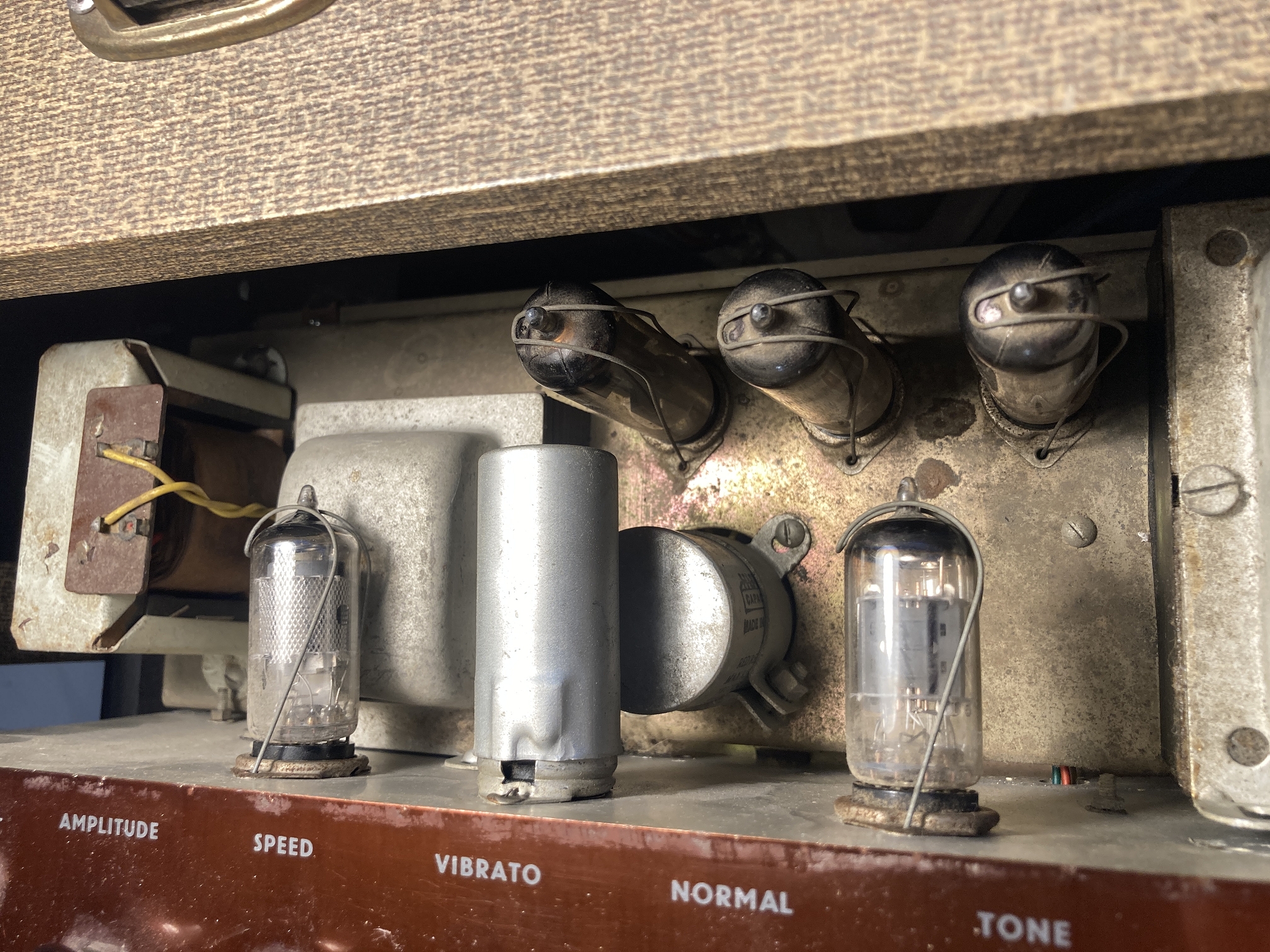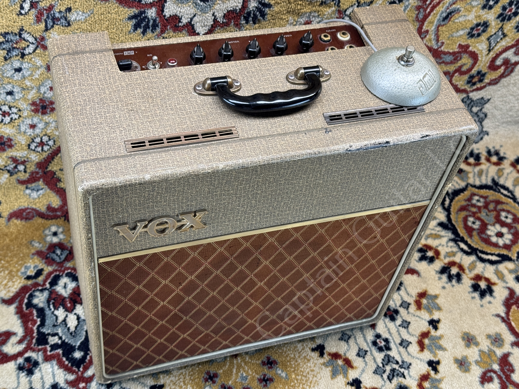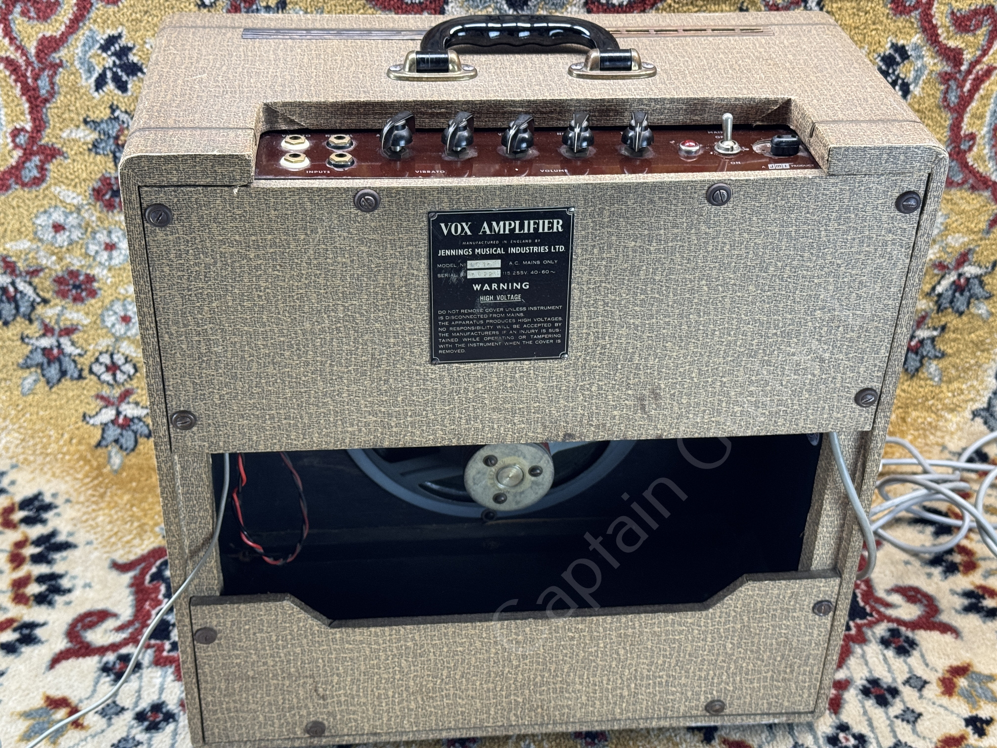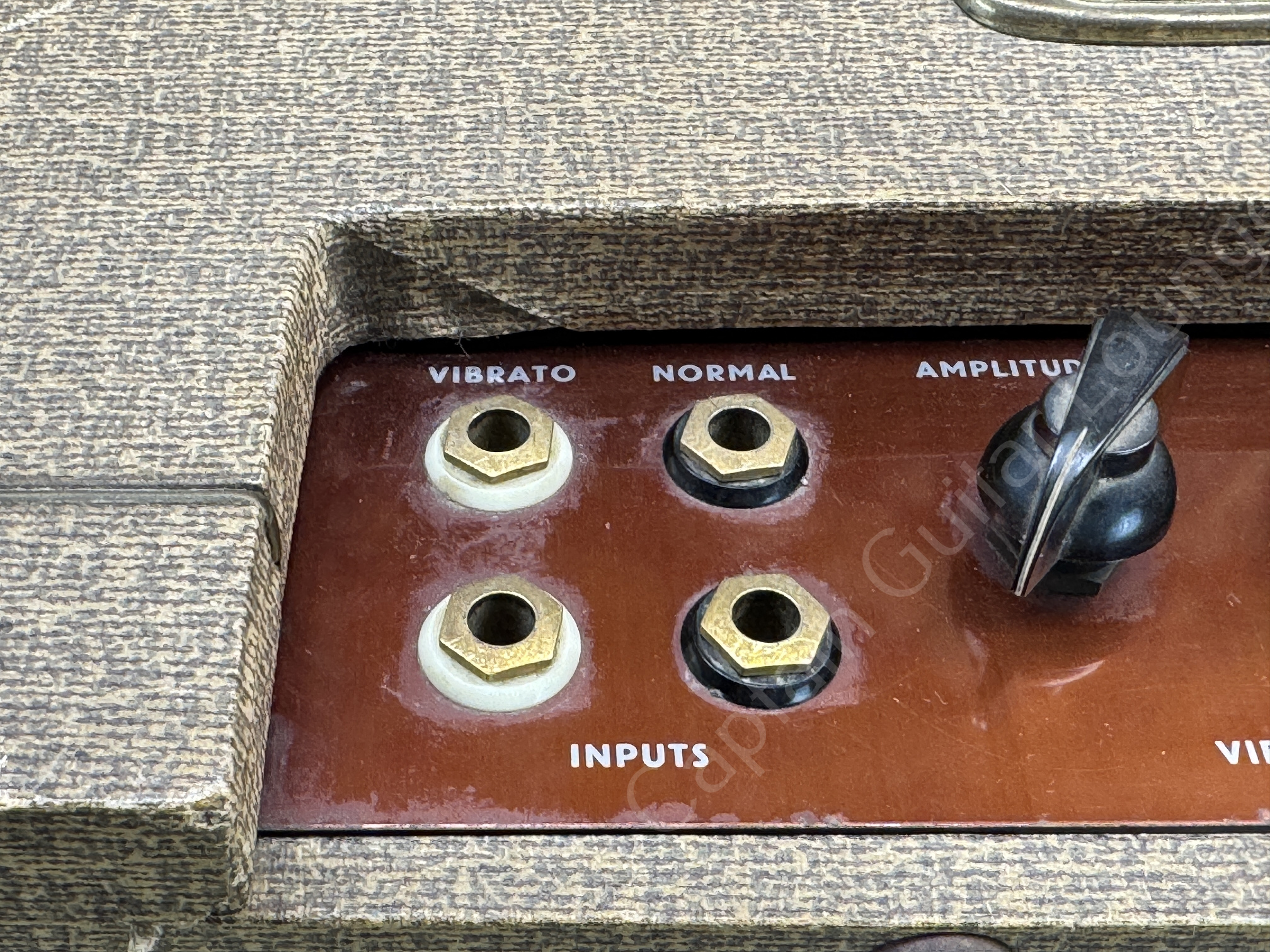 Der Verstärker ist außergewöhnlich original erhalten: Originale Trafos, Kondensatoren, JMI Footswitch, Fawn Tolex, Backpanels, Grillcloth, Tragegriff, Copper Panel sowie der originale Goodmans 10" Speaker sind vorhanden. Veränderungen beschränken sich lediglich auf vereinzelte Muttern und Schrauben - technisch wie historisch absolut vertretbar.